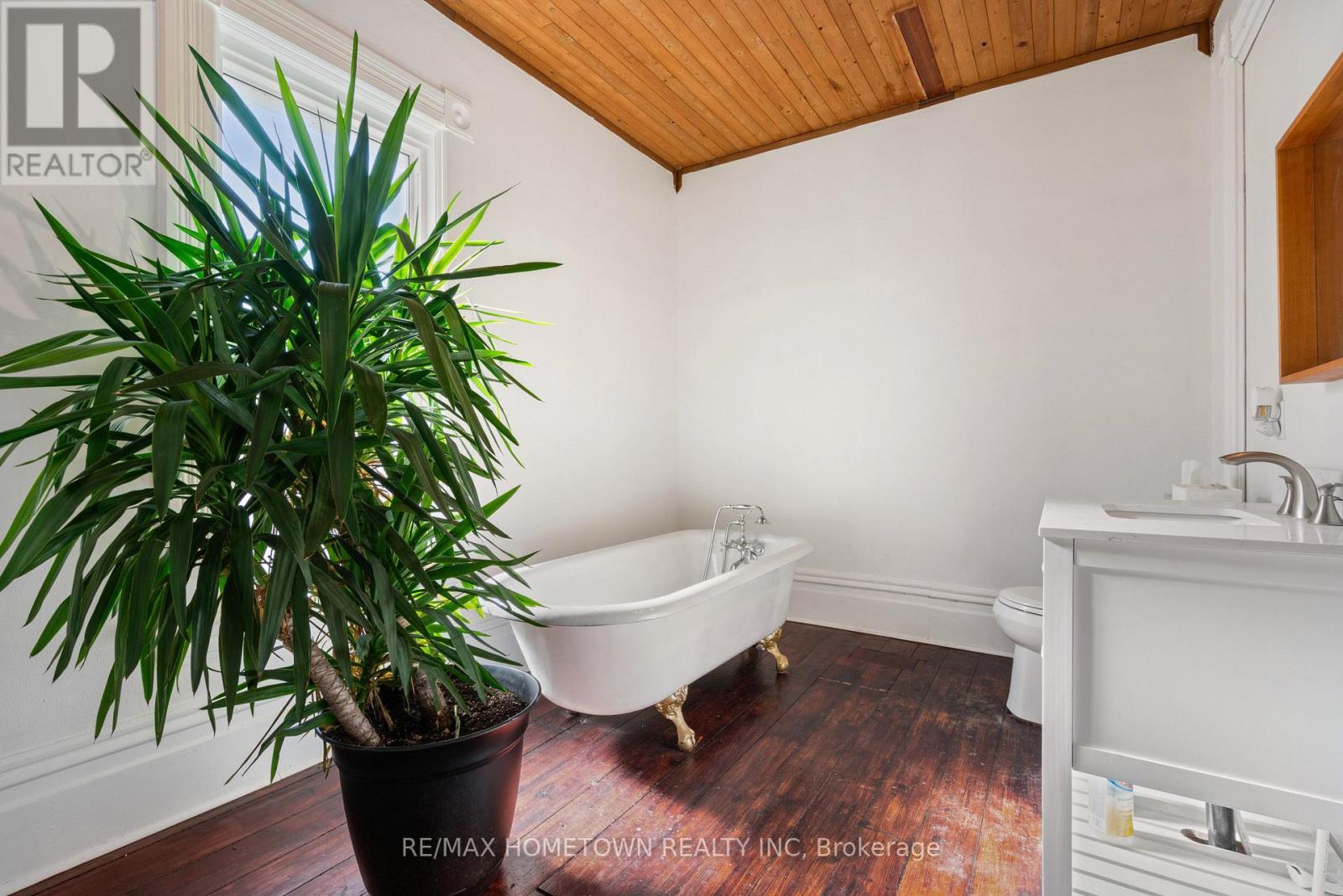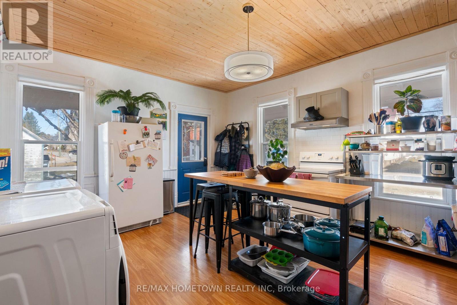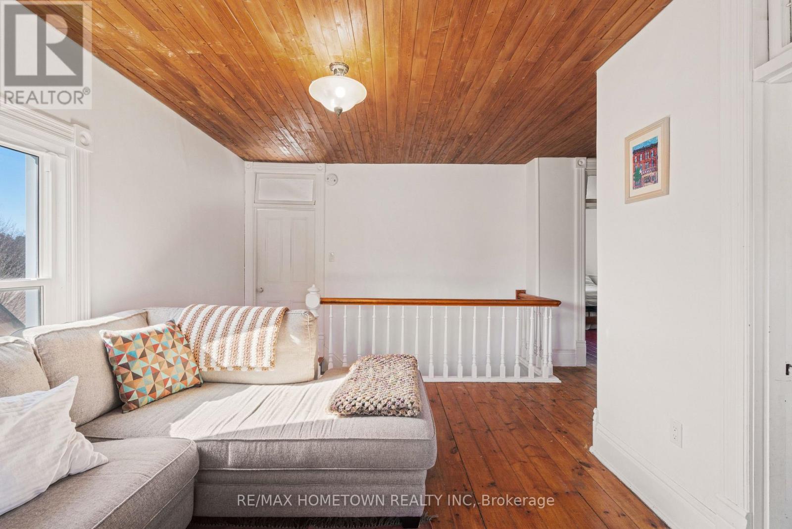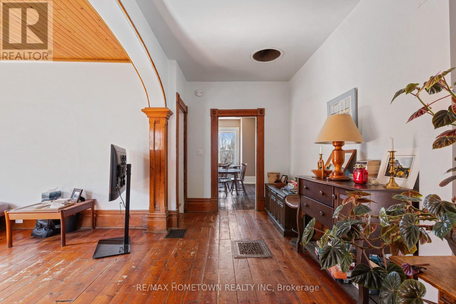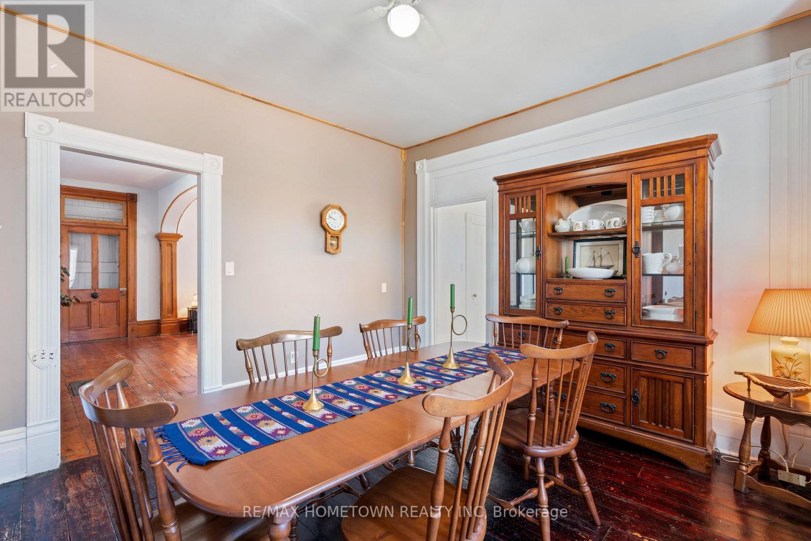 Welcome to the historic village of Elgin, established in 1802, just a short drive to the Rideau Canal and locks. This historic 2-storey, 4-bedroom, 2-bathroom home in the heart of Elgin is within walking distance to local amenities. The open-concept kitchen features ample working space and laundry facilities. The house blends history and elegance with beautiful original trim and wood floors. The updated main floor bathroom boasts a claw-foot tub. The second floor includes a primary bedroom with a 3-piece ensuite, three additional bedrooms, and a family room. Enjoy your morning coffee on the wrap-around porch in summer or in the cozy sunroom on cooler days. The house is flooded with natural sunlight thanks to its many windows. A large, fenced backyard provides a great space for children or pets. A large workshop/storage building offers additional space. (id:64974)