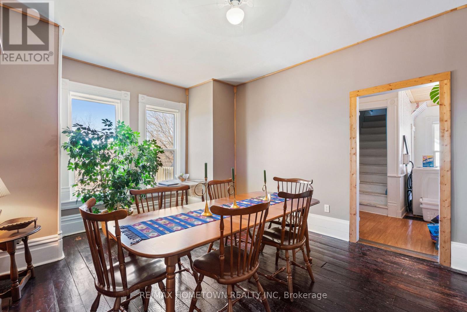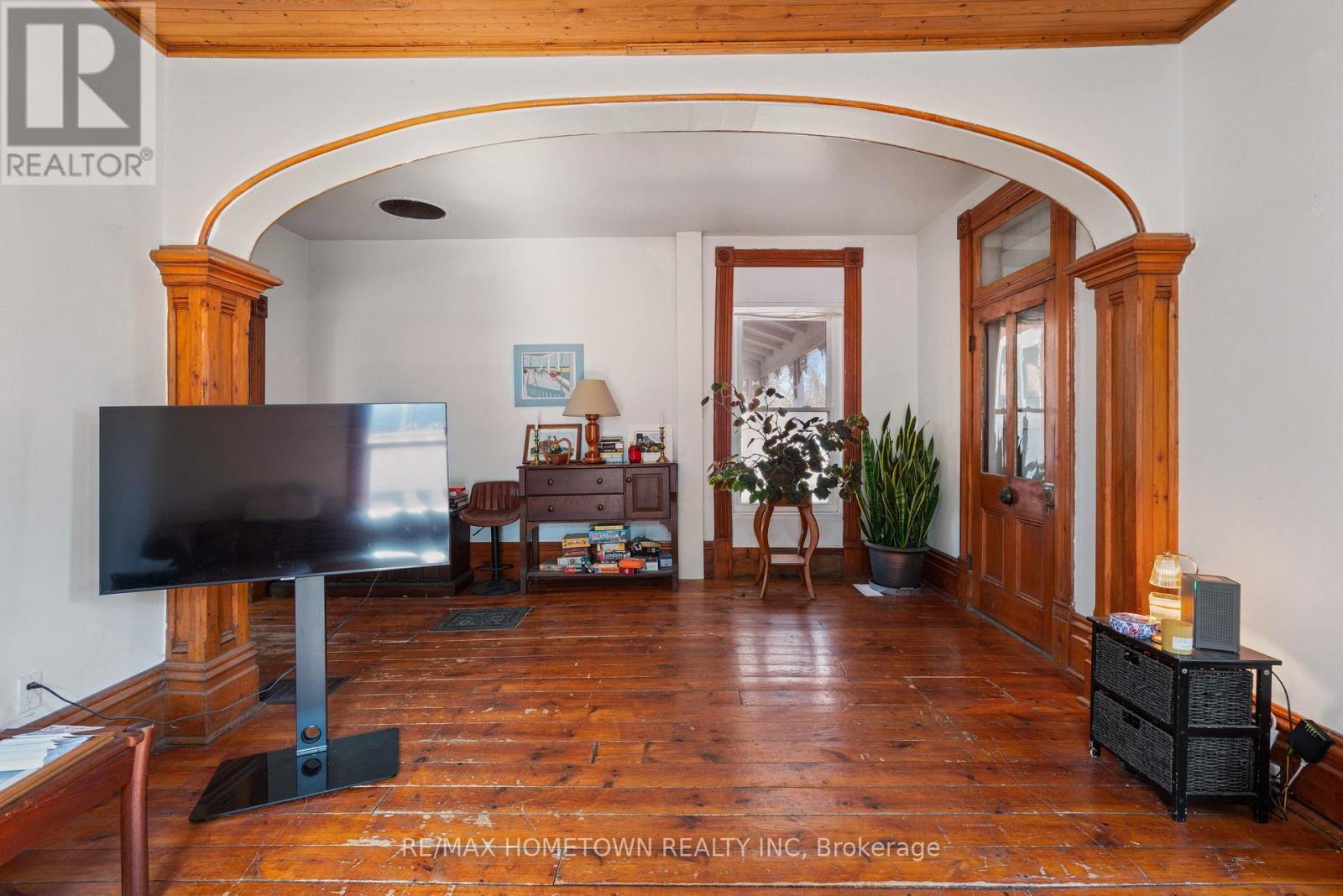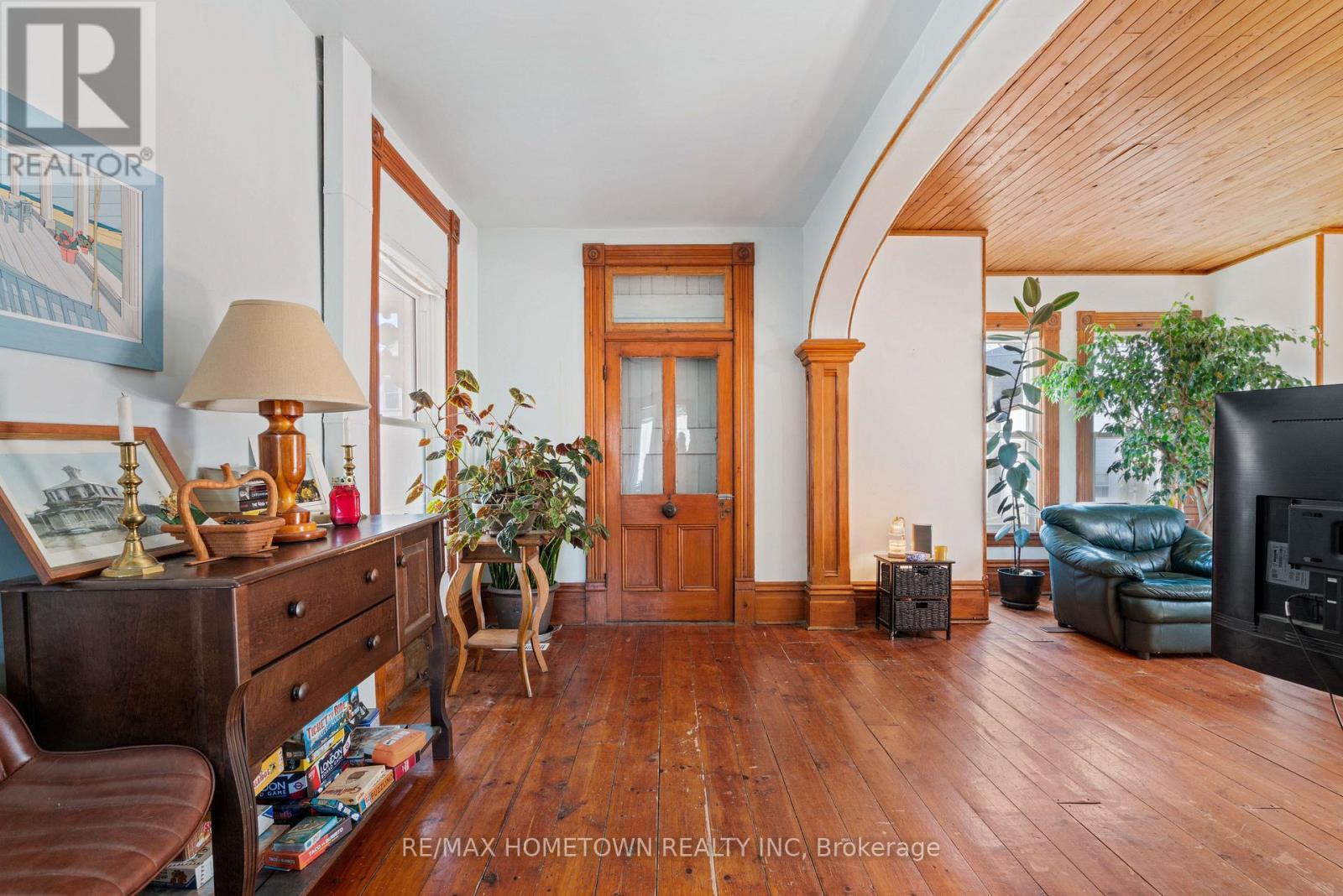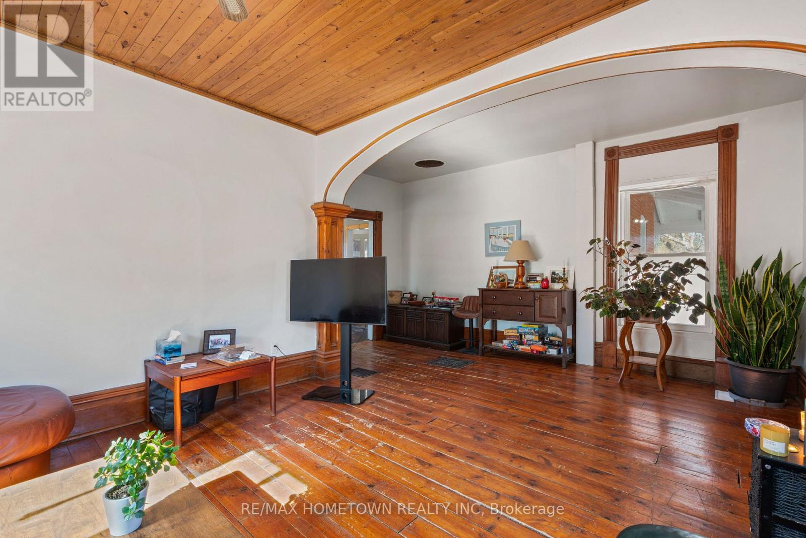 Welcome to the historic village of Elgin, established in 1802, just a short drive to the Rideau Canal and locks. This historic 2-storey, 4-bedroom, 2-bathroom home in the heart of Elgin is within walking distance to local amenities. The open-concept kitchen features ample working space and laundry facilities. The house blends history and elegance with beautiful original trim and wood floors. The updated main floor bathroom boasts a claw-foot tub. The second floor includes a primary bedroom with a 3-piece ensuite, three additional bedrooms, and a family room. Enjoy your morning coffee on the wrap-around porch in summer or in the cozy sunroom on cooler days. The house is flooded with natural sunlight thanks to its many windows. A large, fenced backyard provides a great space for children or pets. A large workshop/storage building offers additional space. (id:64974)