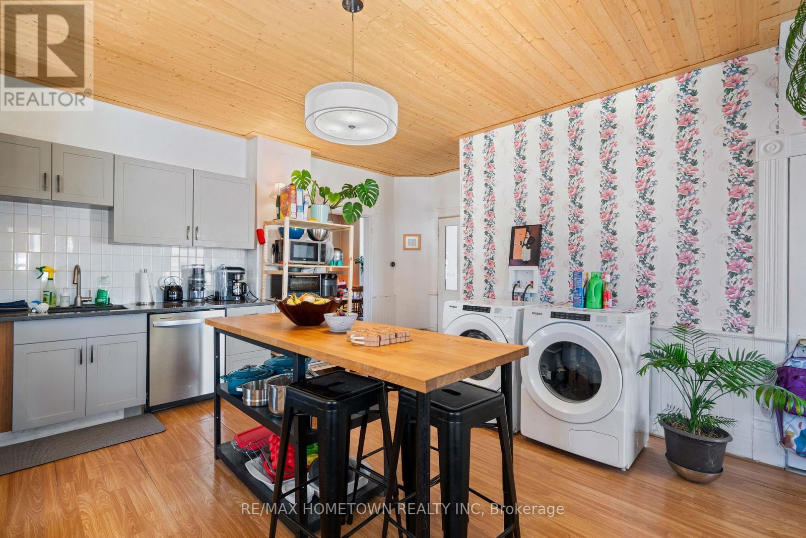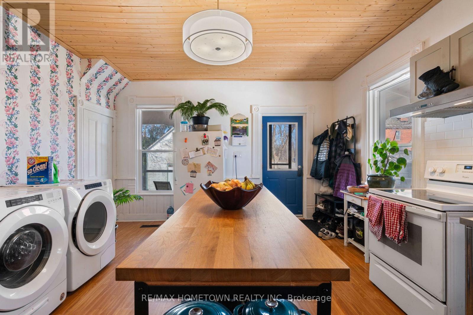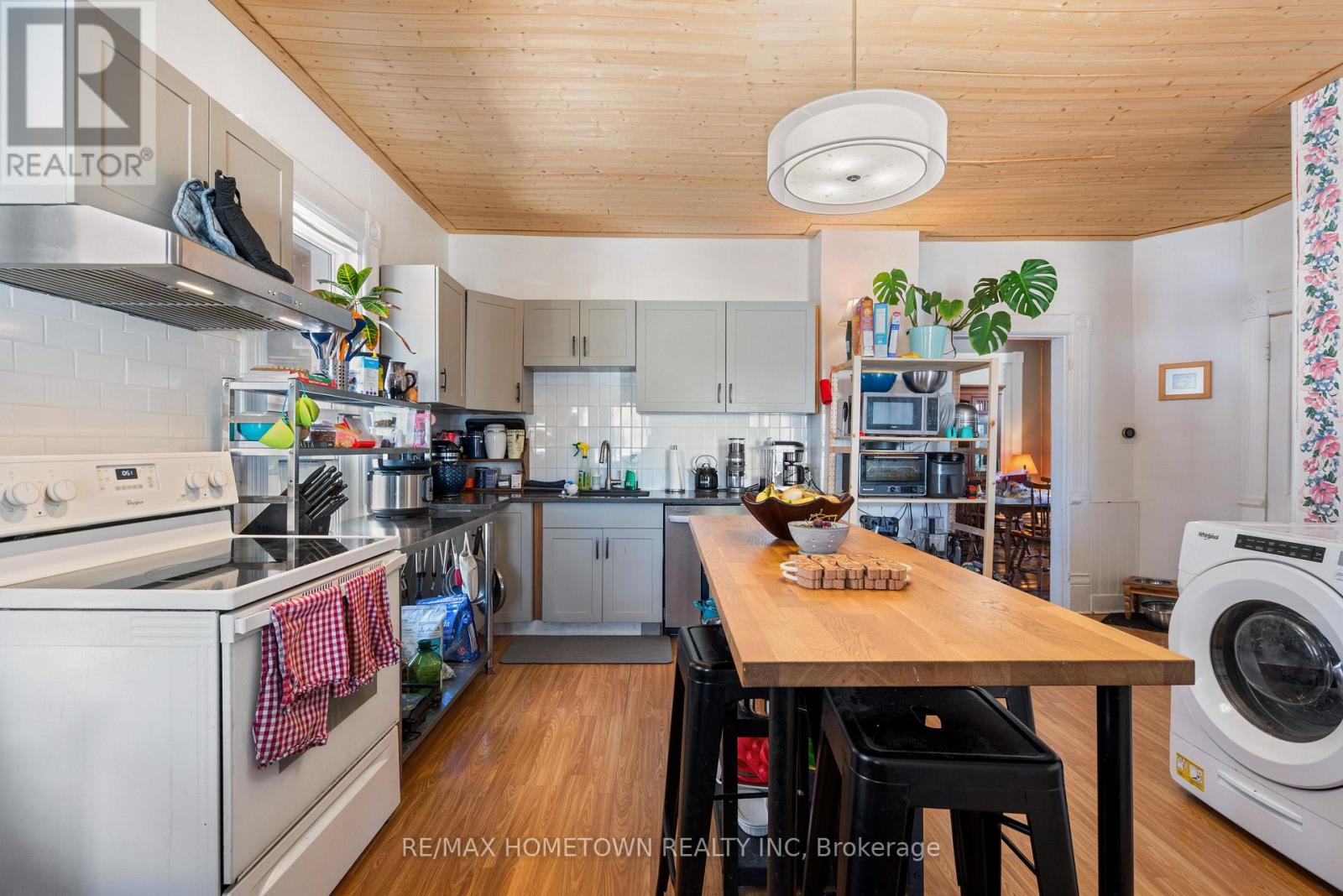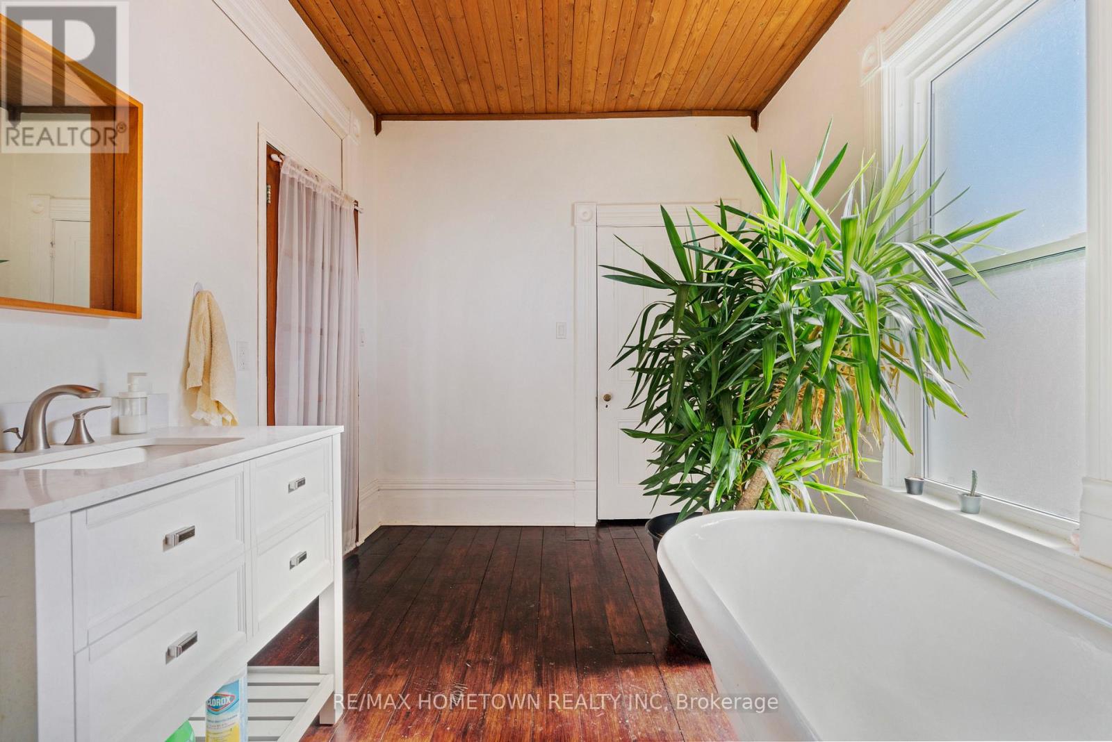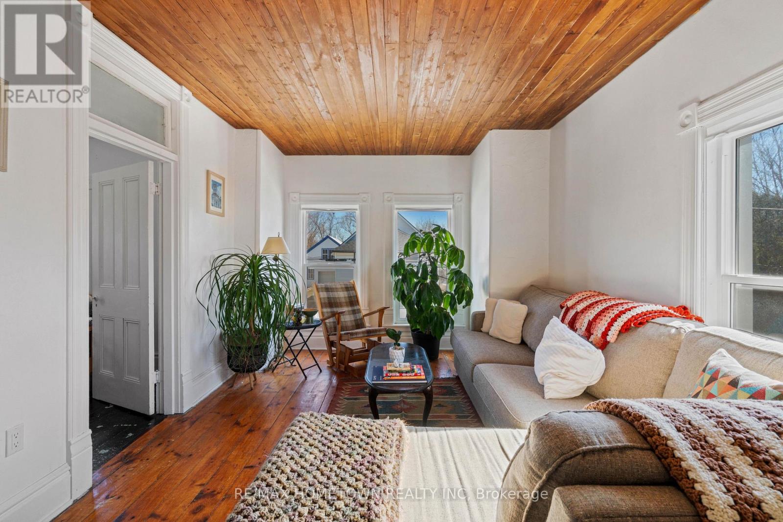 Welcome to the historic village of Elgin, established in 1802, just a short drive to the Rideau Canal and locks. This historic 2-storey, 4-bedroom, 2-bathroom home in the heart of Elgin is within walking distance to local amenities. The open-concept kitchen features ample working space and laundry facilities. The house blends history and elegance with beautiful original trim and wood floors. The updated main floor bathroom boasts a claw-foot tub. The second floor includes a primary bedroom with a 3-piece ensuite, three additional bedrooms, and a family room. Enjoy your morning coffee on the wrap-around porch in summer or in the cozy sunroom on cooler days. The house is flooded with natural sunlight thanks to its many windows. A large, fenced backyard provides a great space for children or pets. A large workshop/storage building offers additional space. (id:64974)
