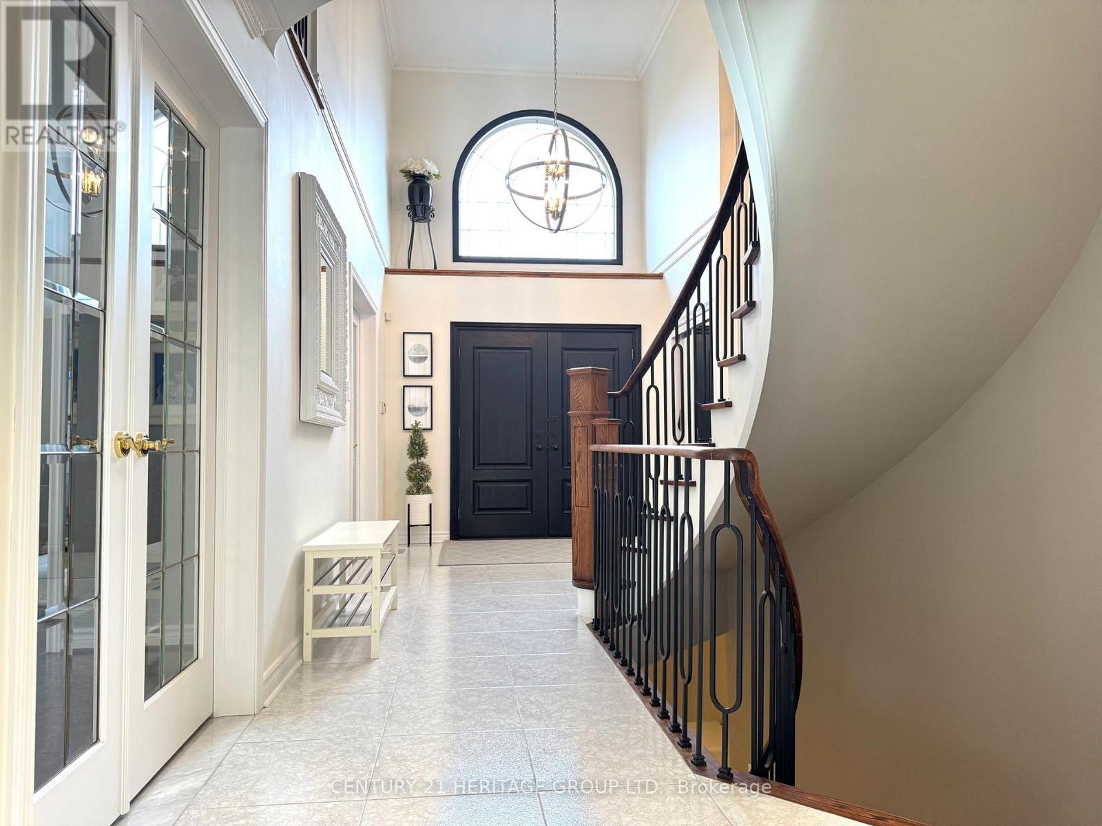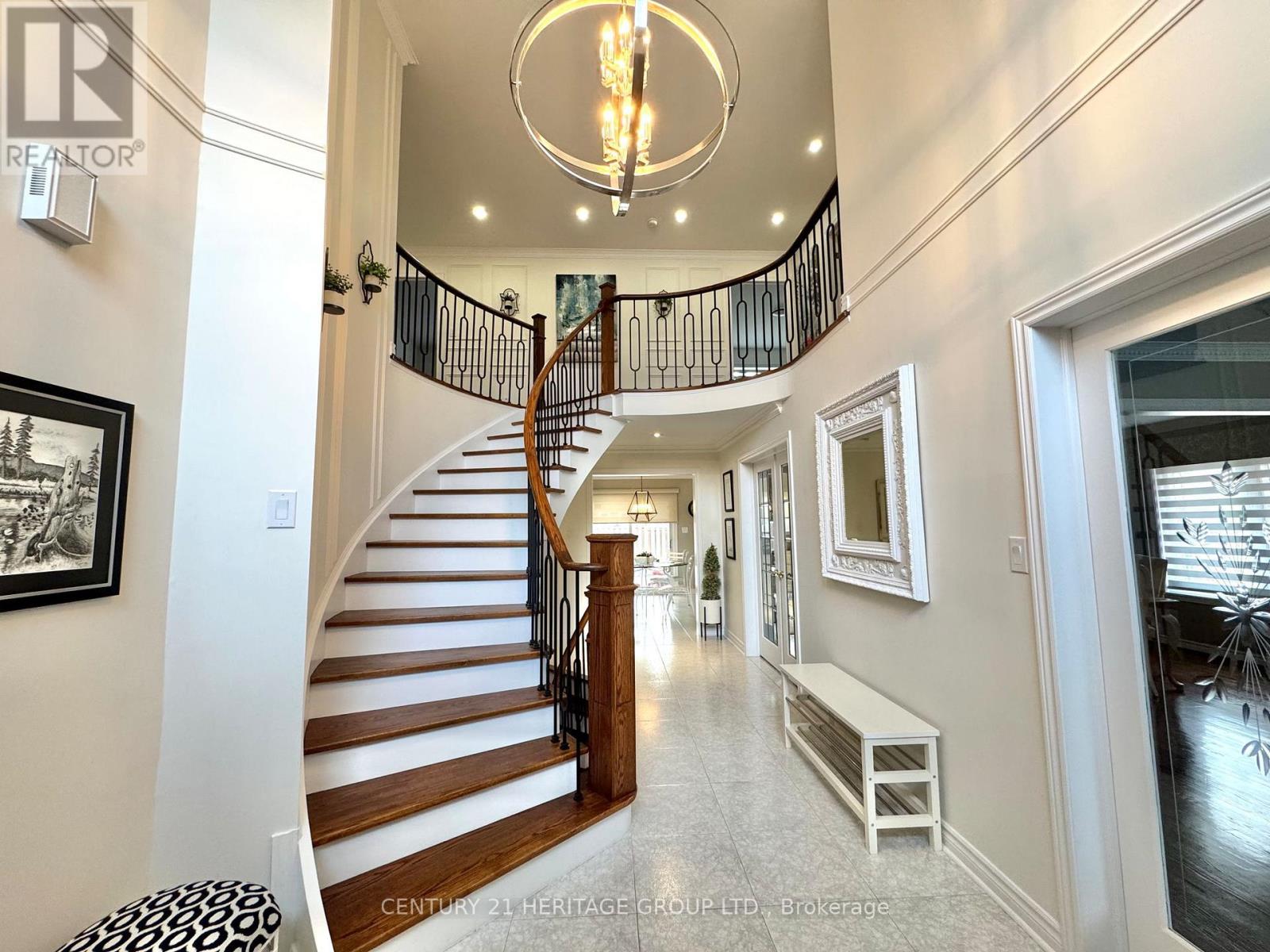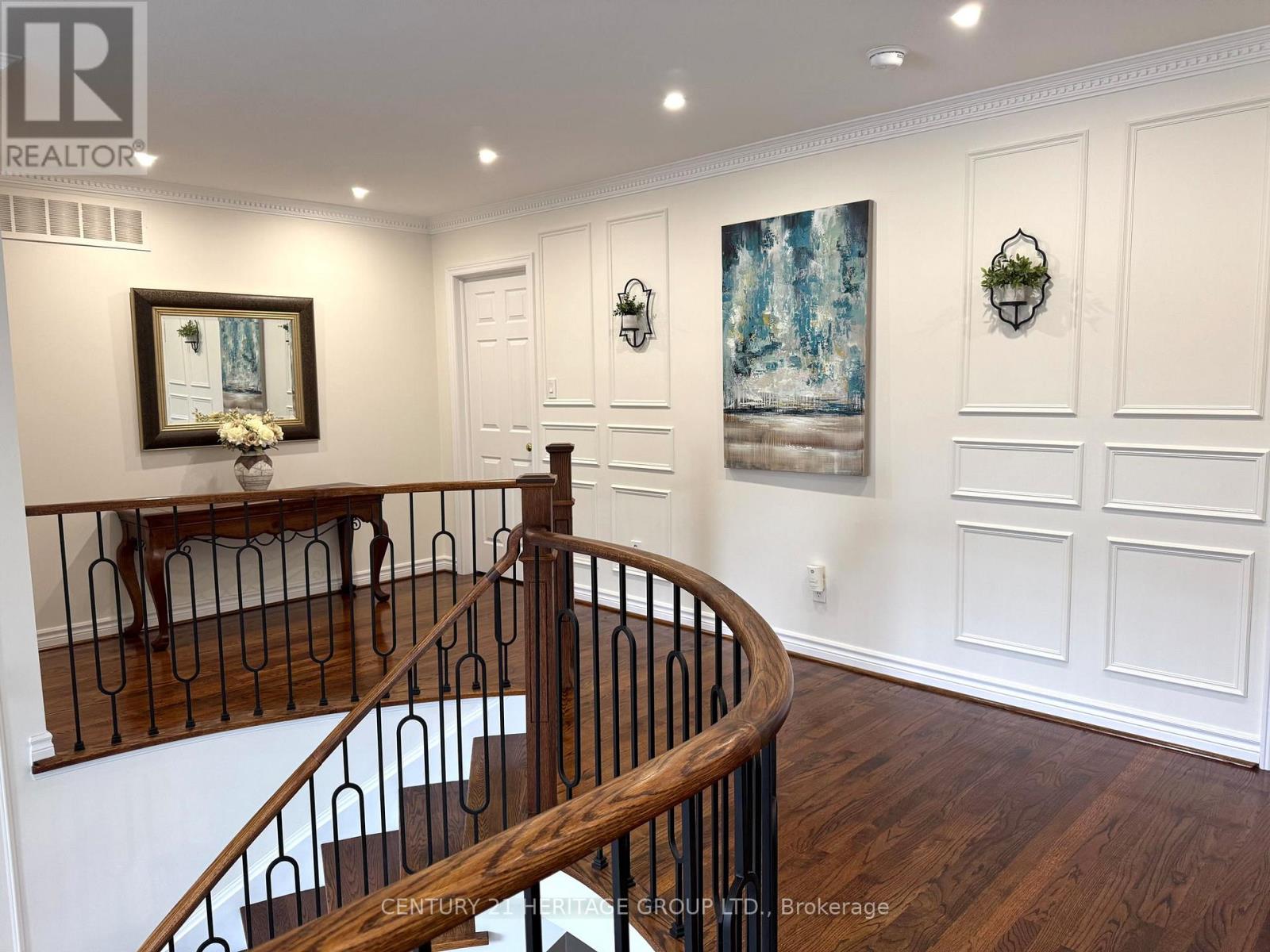 This exceptional executive home is nestled on a quiet court in a highly sought after, desirable family-friendly neighbourhood. Beautifully designed 4+1 bedrooms, 3 1/2 bathrooms home offers over 4800 sf of living space. On entry, you are welcomed by a grand 2-storey foyer with abundant natural light from a stunning large arched window above & with a majestic modern iron-picket staircase! Enjoy rich solid 3/4" oak hardwood flooring & smooth ceilings throughout. The gourmet kitchen features a b/i glass cooktop, b/i double oven, b/i microwave, granite countertop, custom cabinetry, and a family-sized breakfast area with w/o to a large covered stoned patio! The warm & inviting family room, openly connected to the kitchen, showcases a floor-to-ceiling stoned gas fireplace! The main floor also includes a private den/office & a large laundry room w/ access into the double-car garage. Upstairs, the very spacious Master bedroom offers 2 walk-in closets & a spa-inspired 6pc-ensuite featuring a soaker tub, separate glass shower stall, bidet, dual vanities! Additional bedrooms are generously-sized with ample closet space. The finished bsmt is high & bright (can be used as in-law suite), with a full kitchen, fam room, bedroom, sep laundry room, 3pc bath w/ shower, exercise room, storage room. Bsmt also has a good-sized cold cellar/cantina. Professionally well-landscaped property with sprinkler system, stone pavers, garden walls, mature trees, & lamp posts. The expansive backyard is perfect for summer entertaining & large family gatherings! Additional features include: mezzanine level in garage, long private drive fitting possibly 6 cars, garden shed, sec alarm system, Ring doorbell. Situated close to schools, parks, Go Train Station, major commuter routes, Vaughan Mills Shopping Mall, Canada's Wonderland, Vaughan Subway, New Hospital, Community Centre, & is only steps to YRT bus routes. This remarkable property offers the perfect balance of luxury living & suburban tranquility. (id:64974)