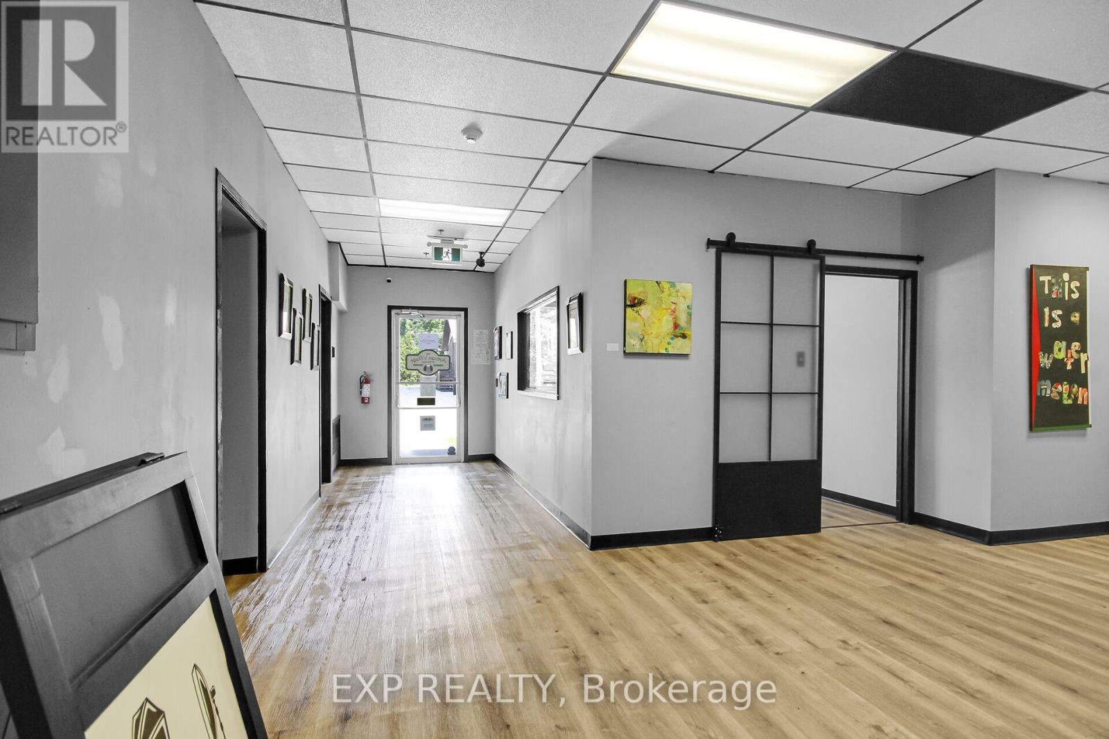 Prime leasing opportunity in the heart of the ever-growing Smiths Falls market. This unique property allows for an almost countless amount of interesting possibilities (see attached document for complete list of zoning designation) including but not limited to medical, health and wellness services (physiotherapy, dentist, veterinary clinic, osteopathy, etc) and fitness oriented businesses. There are various unit configurations available in this building that boasts almost 7,000 square feet. With a population of over 22,000 residents located within a 15-minute drive, this property is centrally situated on the corner of William Street and Maple Avenue, just 1 block down from the City's busy downtown area. With 14 dedicated parking spots, the property is also surrounded by numerous street parking options. The building, which boasts 20 foot ceilings and no load-bearing walls, went through many updates over the past couple of years. The Landlord is willing to work with the right tenant on any renovations/build out options, including outside signage. (id:64974)