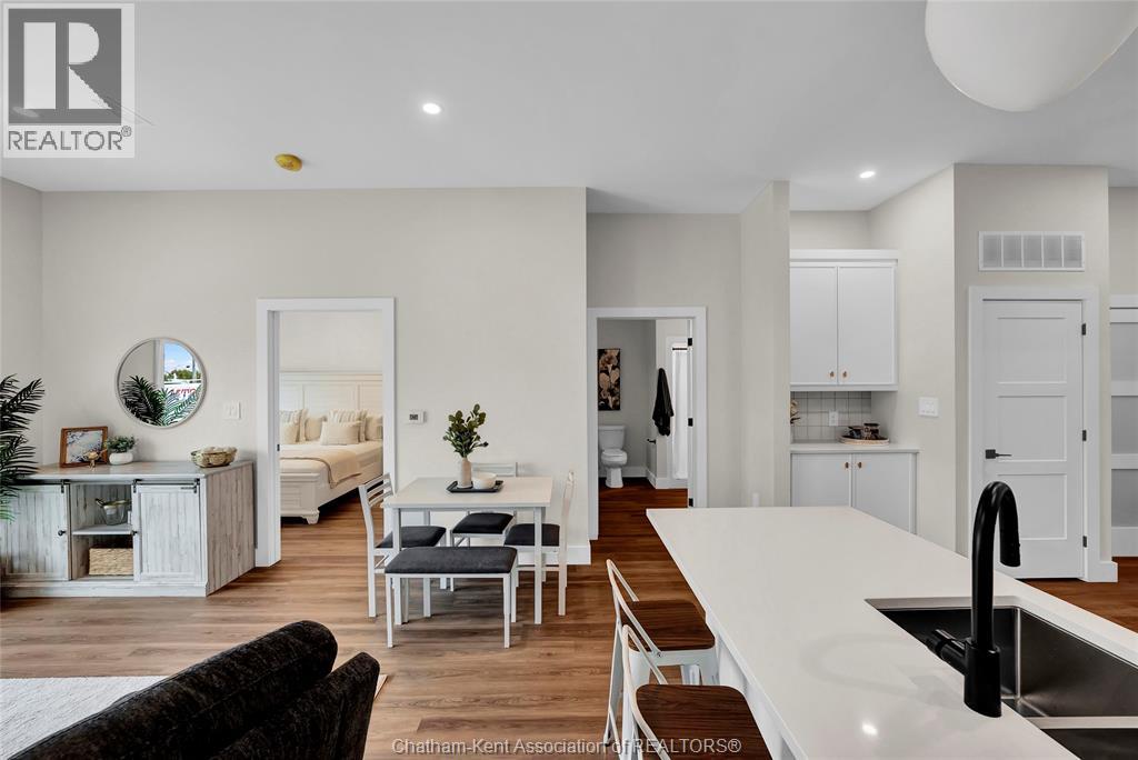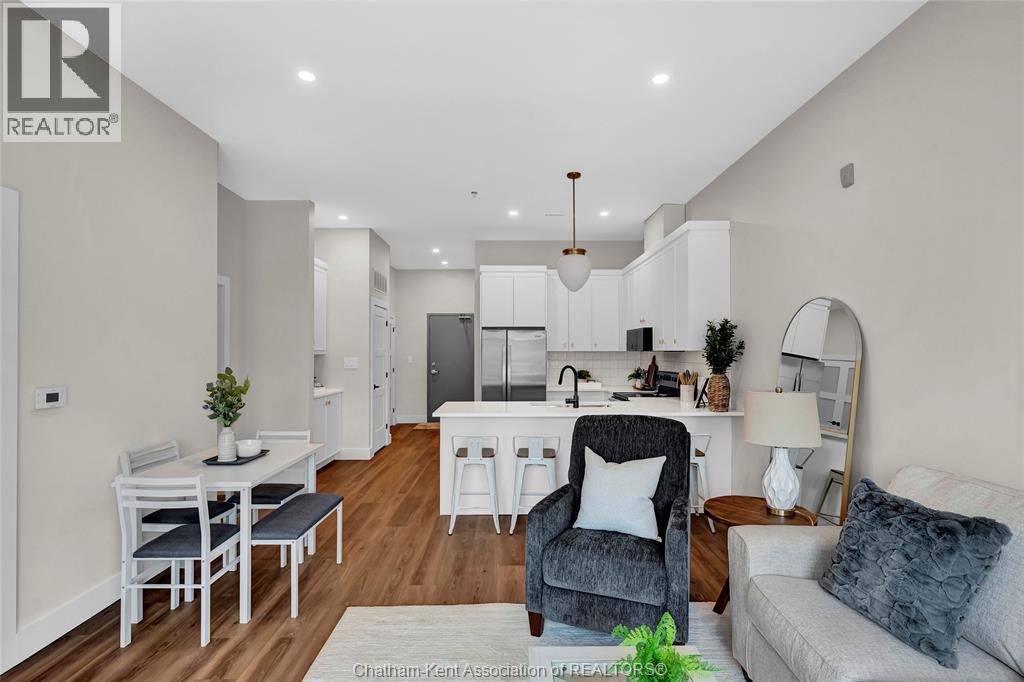 Now Leasing! The Avalon Apartments in Tilbury, a brand new purpose built 5 storey apartment building. Locally owned and operated and built with local trades. This one bedroom plus den apartment is a great choice for someone looking to rent in a new, clean, safe building with fixed costs. Bright and spacious with 9.5 ft ceilings, oversized windows and 8ft tall sliding patio doors. Whirlpool gold appliances throughout, including in-unit laundry. Well appointed kitchen with quartz countertops, double stainless undermount sink, lower pull-outs, extra upper cabinets and coffee bar. Walk through closet from bedroom to large 3 pc ensuite bathroom with walk-in shower. Utilities and parking are included. This is the largest one plus den available. Contact leasing agent to arrange showing. (id:64974)