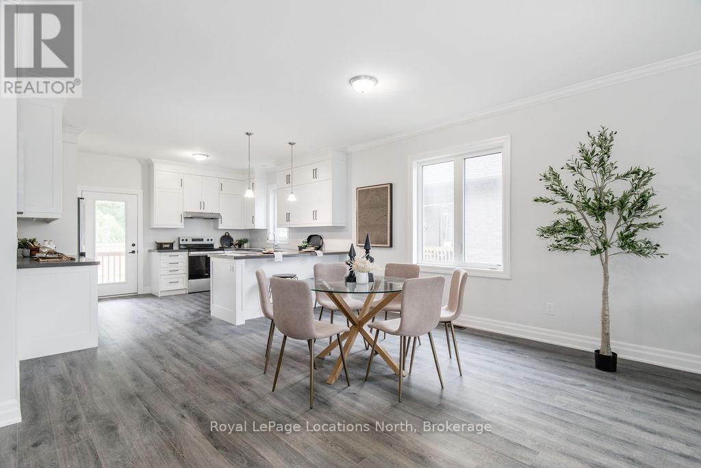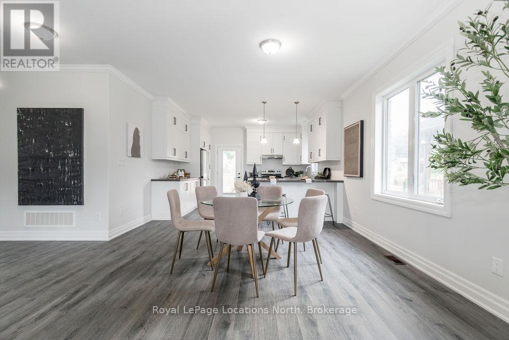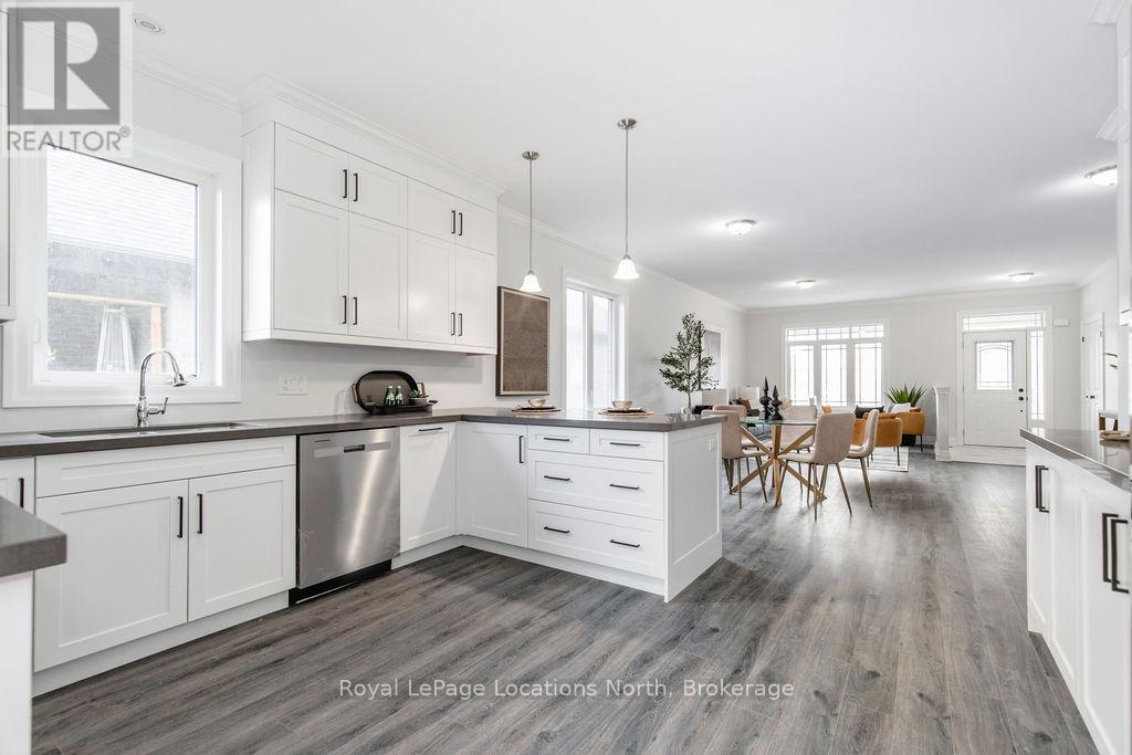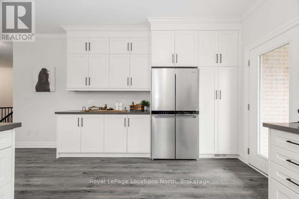 This brand new all-brick raised bungalow offers over 3,200 sq ft of finished living space, combining modern design, quality finishes, and a great layout ideal for families or multi-generational living. The main level features approximately 1,645 sq ft with 9-foot ceilings, creating a bright and open atmosphere, while the fully finished lower level adds an additional 1,565 sq ft of living space.Set on a generous lot measuring 57.45 ft by 133.13 ft, this home includes 3 spacious bedrooms on the main floor and 2 additional bedrooms downstairs, along with 2 full bathrooms on the main level and a convenient powder room. A main floor laundry room is perfect for man floor living.The classic kitchen is a standout, showcasing brand new stainless steel appliances, upgraded shaker-style cabinetry, double stacked upper cabinets with crown moulding to the ceiling, deep fridge uppers, a large pantry, and practical pot and pan drawers. Quartz countertops with undermount sinks carry through the kitchen and bathrooms for a cohesive, upscale finish. The primary ensuite offers a double vanity and a glass-enclosed shower.Outside, enjoy both a covered front concrete porch and a covered rear deck, perfect for relaxing or entertaining in any season. The exterior is complete with a fully sodded yard and paved driveway, plus a spacious 2-car garage.Additional modern features include hot water on demand, central air conditioning, rough-in central vacuum, HRV system, and a cellar for extra storage.Located on the east end of Wasaga Beach near Marlwood Golf Course, this home offers easy access to Beach 1, shopping, and everyday amenities. (id:64974)