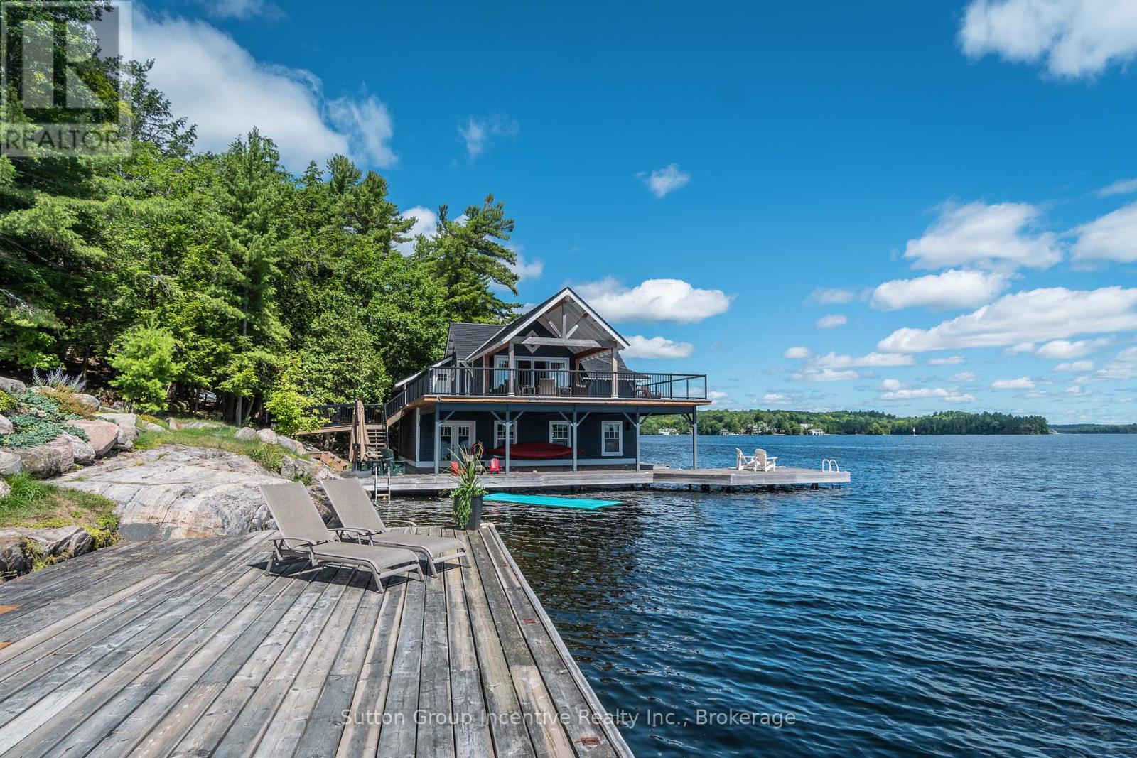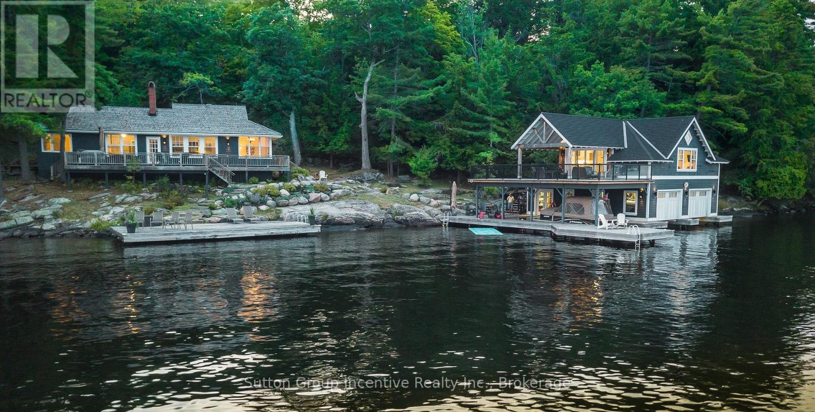 Licenced Short Term Rental on Lake Rosseau in Muskoka, a 5-minute boat ride from the marina to your private Island property. Weekly Rental Cost: $9,988 or $1,426 per night + HST. Main Cottage + boathouse is available in July 2026, water access only. Enjoy your private rental on the Famous OUNO island on Rosseau Lake in Muskoka, with 390 feet of frontage and multiple living spaces, it is a perfect fit for a large group. Launch your boat at Cleveland House Marina near the JW Marriott, where you will have a reserved mainland boat slip and parking space for two. You will be able to arrive at your property with ease. The deep-water access and a covered boat slip are easily navigable by day or night. The property is located on the leeward (less windy) side of the prestigious island, only 5 minutes from the small marina with shops, amenities and gas. Get all-day sunshine and use all the Docks and Decks. The Main Cottage, Boathouse, Guest Bunkie, and Firepit are yours to use. The Main Cottage has three bedrooms and two baths with a living and dining room area with a full kitchen and pantry. The Boathouse has one bedroom with a King Bed and full lake view, one three-piece bathroom, a Den with a Double Bed with no window, a bunkie with a double bed and a lake view front porch. The boathouse has an entertainer kitchenette with a large dining island, a microwave, a toaster oven, an induction hot plate, and several small appliances. The open-concept living room has the best long lake view for soul-inspiring sunrises. The boat house features a 650 sq ft. viewing deck and is partially covered, offering an outdoor living space with BBQ/Blackstone Grill at both the Boathouse and Main Cottage. Efficient A/C system. This property is Pet-friendly with luxury finishes. Maximum of 10 people; this is a weekly rental available in July only. Sq footage includes Bunkie. Professional cleaning services are available but not included. (id:64974)