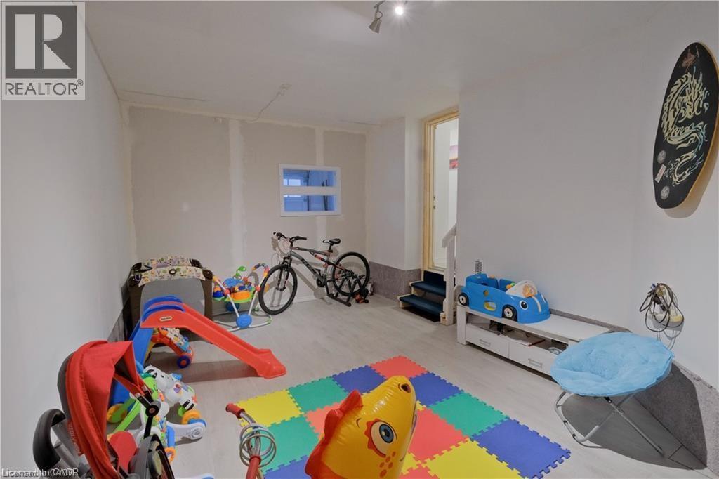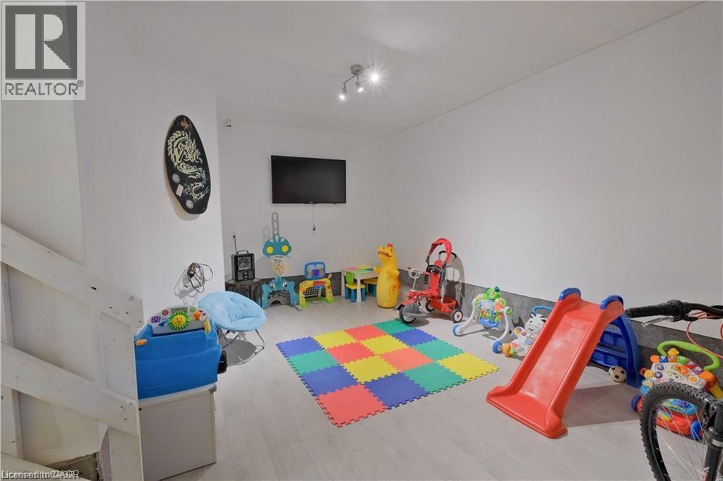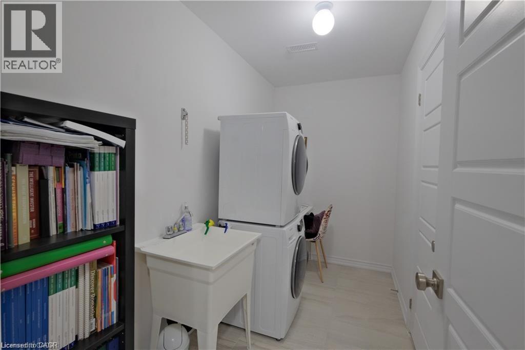 Welcome to this beautifully upgraded, three-storey townhouse located in the desirable Heritage Park neighbourhood of Kitchener. This modern home offers 2 bedrooms, 2 bathrooms, and a one-car garage that has been thoughtfully converted into a fully functional living space, adding exceptional flexibility for today’s lifestyle. The main level features a bright, open-concept layout with 9-foot ceilings and upgraded laminate flooring throughout. The contemporary kitchen is both stylish and functional, showcasing stainless steel appliances, granite countertops, a large island, a beautiful stylish backsplash, and a generous walk-in pantry that can also be used for additional storage. The dining area opens onto a spacious balcony—perfect for morning coffee, outdoor dining, or summer BBQs. A convenient two-piece powder room completes this level. Upstairs, you’ll find two well-appointed bedrooms, each with its own large walk-in closet, along with a modern four-piece main bathroom. The lower level includes a laundry room and a dedicated office setup, ideal for working from home. The converted garage provides a versatile bonus living area that can be used as a playroom, gym, office, or additional family room, and can easily be reverted back to a garage if desired. A move-in-ready home offering style, space, and flexibility in a fantastic location. (id:64974)