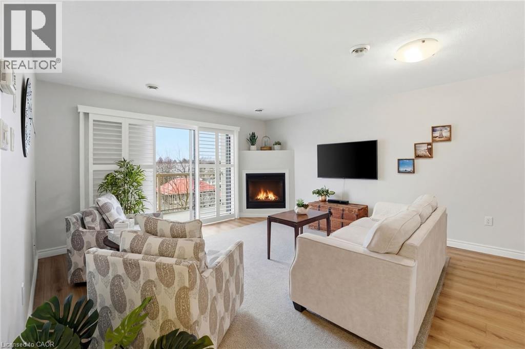 Simplicity at its finest! The top floor, corner unit is available for sale, with 2 bedroom and 2 bathrooms in the desirable beach town of Port Dover. Walking distance to all the amenities and only moments to the finest restaurants and sandy beach. The open concept design was renovated in 2023/2024 with new flooring (Carpet One), fully painted (Norfolk Painters), kitchen cabinets painted, closets custom outfitted (Closets by Design), plantation shutters (Dover Paint & Paper) throughout. The eat in kitchen opens up to the bright living room with cozy gas fireplace and sliding doors offering a balcony with views of the lift bridge. The primary bedroom offers plenty of room to sit and read with a book in your favourite chair or crawl into bed and watch television. A second balcony off the primary bedroom is the perfect location to enjoy your morning coffee while watching the beach town wake for the day. This home is turn key and perfect if you're seeking to downsize, invest or just want simplicity. Call for your private viewing today. (id:64974)