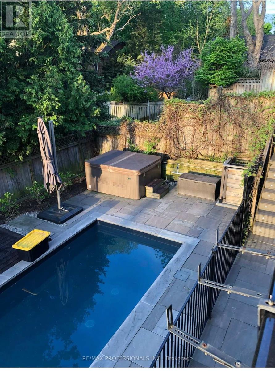 Sophisticated living awaits in this beautifully renovated Kingsway residence. A classic stucco facade, vaulted ceilings and a Juliette balcony, framed by landscaped gardens, pool and mature trees. Light filled principal rooms are thoughtfully designed to balance elegance and everyday living. A main level fourth bedroom or office provides a quiet and versatile retreat. At the heart of the home, the chef's kitchen features quartzite countertops, an extensive centre island, premium Wolf, Kitchen Aid and Bosch appliances with a walkout to deck and private garden. Upstairs the primary suite is a true sanctuary with vaulted ceilings, spa like 5 pc ensuite and both a spacious walk in closet and additional double closet. Two additional bedrooms and a beautifully appointed family bath complete the upper level. The lower level extends the homes lifestyle appeal with a generous recreation area and walk out to the landscaped yard and pool - ideal for both relaxing and entertaining. A full size built-in garage adds everyday practicality to this elegant home. Ideally situated near top ranked schools, Bloor Street's shops and dining and some of Toronto's finest golf courses, with quick access to downtown and airports. An exceptional Kingsway home for those who value timeless style and effortless living. (id:64974)