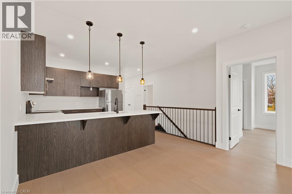 Welcome to 12 Washington St, Unit 201—a bright and inviting end-unit bungalow townhouse offering comfort, convenience, and modern living in the heart of Norwich. The stylish kitchen features quartz countertops, a sleek hood range, stainless steel appliances, and ample cabinet space. The open-concept layout allows the main living and dining areas to flow together seamlessly, enhanced by 9-foot ceilings and pot lights that create an airy and welcoming atmosphere. The primary bedroom offers both comfort and functionality with two closets and direct access to the spacious three-piece bathroom. The laundry room is conveniently located on the main floor, providing everyday practicality. A second bedroom on this level is perfect for family, guests, or a home office. The finished basement expands your living space with a large rec room ideal for relaxing, entertaining, or creating a cozy movie night setup. A third bedroom and a second full bathroom make the lower level a great space for guests or extended family, while still offering flexibility for your personal needs. Step outside to your private back deck, complete with a privacy wall—perfect for morning coffee, evening unwinding, or hosting a small gathering. The attached one-car garage adds convenience and storage. Situated in a friendly neighbourhood close to shops, schools, parks, and everyday amenities, this home blends comfort and low-maintenance living with a welcoming community feel. Unit 201 is the perfect opportunity for those seeking a well-designed home with functional space across both levels. (id:64974)
