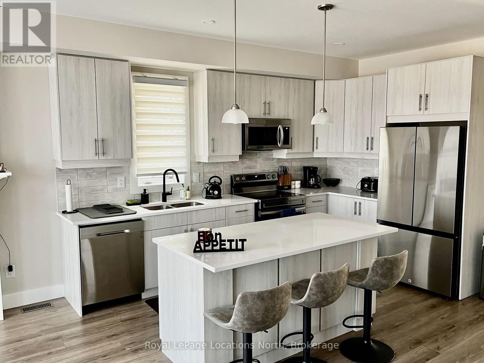 Escape to Windfall this Spring! This fully furnished 3-bedroom home in a sought-after location is ready for turnkey annual living. Walk to the heart of the village, bike the trails along Georgian Bay, or explore the many nearby attractions-all just minutes from Windfall. The home is fully furnished and features a primary bedroom with ensuite, a second bedroom with a double bed, a third bedroom with bunk beds, upper-floor laundry, and a fully equipped open-concept kitchen and living area. Step outside to the deck with BBQ or enjoy a game of foosball in the rec room. The lockable garage provides storage for sporting equipment, and there is parking for two cars. High-speed internet is available for working from home. Rental includes access to the "Shed," the community outdoor pools (hot & cold), sauna, and exercise room. Utilities and departure cleaning are extra. No pets or smoking (allergies). Short term seasonal rental will be considered (id:64974)