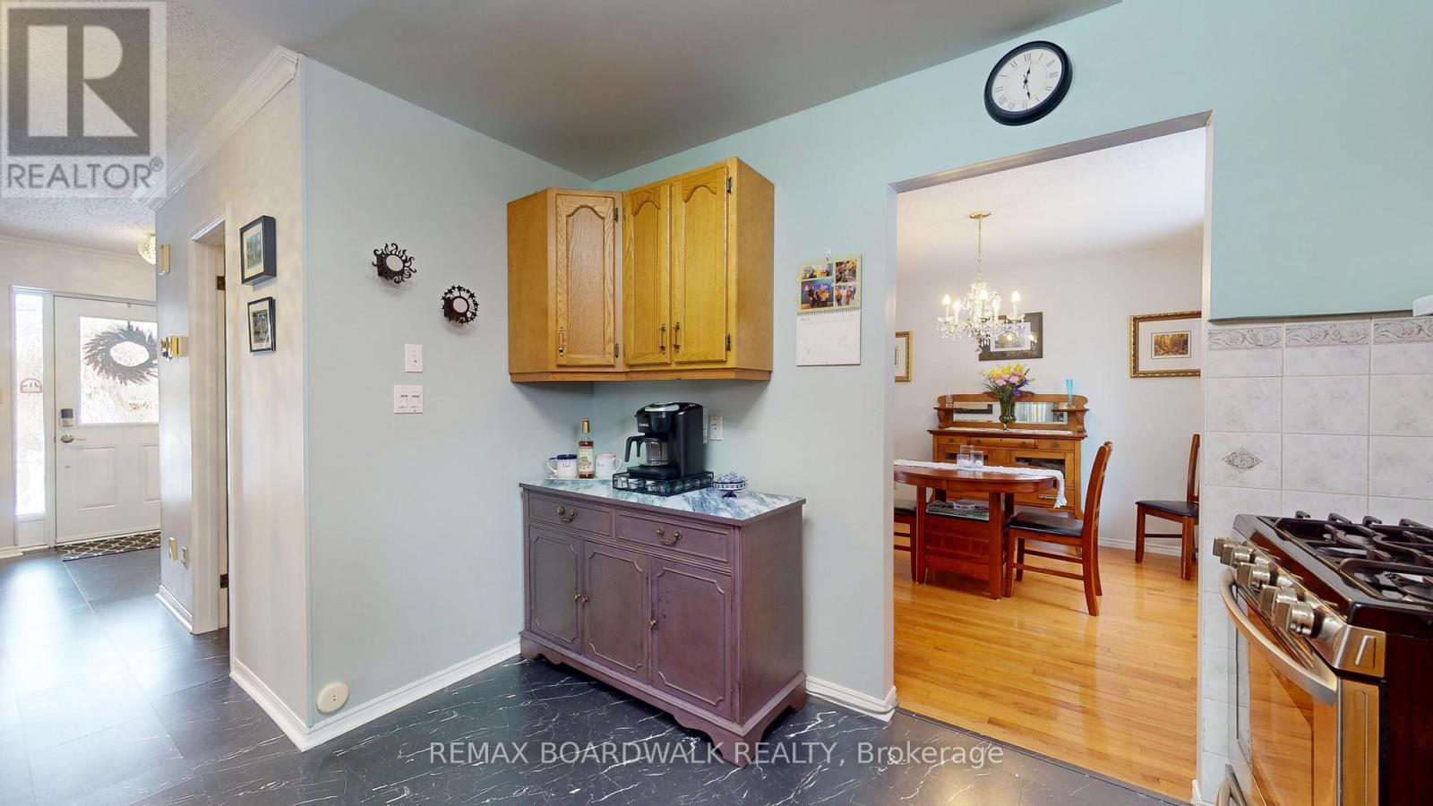 Welcome to this beautifully appointed two-storey brick family home. Boasting undeniable curb appeal, this residence offers classic design & modern convenience in a sought-after location. Step inside to discover a thoughtfully designed main floor with hardwood floors, where a warm & inviting family room complete with a cozy gas fireplace opens seamlessly onto a private side deck with gas barbecue hook up, perfect for effortless indoor-outdoor living. The sunlit living room, highlighted by a bay window, flows naturally into the formal dining area, creating an ideal setting for both intimate dinners & lively gatherings. The kitchen is as functional as it is welcoming, featuring oak cabinetry, granite countertop, all included appliances & a dedicated coffee area. A stylish two-piece powder room completes the main level. Upstairs, you will find three generously sized bedrooms - all with hardwood flooring, including the primary with a walk-in closet & convenient cheater ensuite access, offering both comfort & practicality for family living. The lower level expands your living space with a spacious recreation room & wet bar, ideal for hosting or relaxing. An additional bedroom & four-piece bathroom with soaker tub & heated floors enhance the versatility of this level, making it perfect for guests or extended family. New on demand hot water heater & garage equipped with wiring to accommodate an EV charger are perfect for sustainable living. This exceptional home captures the essence of comfortable luxury, offering space, style & thoughtful details throughout-all ready to welcome its next chapter! (id:64974)