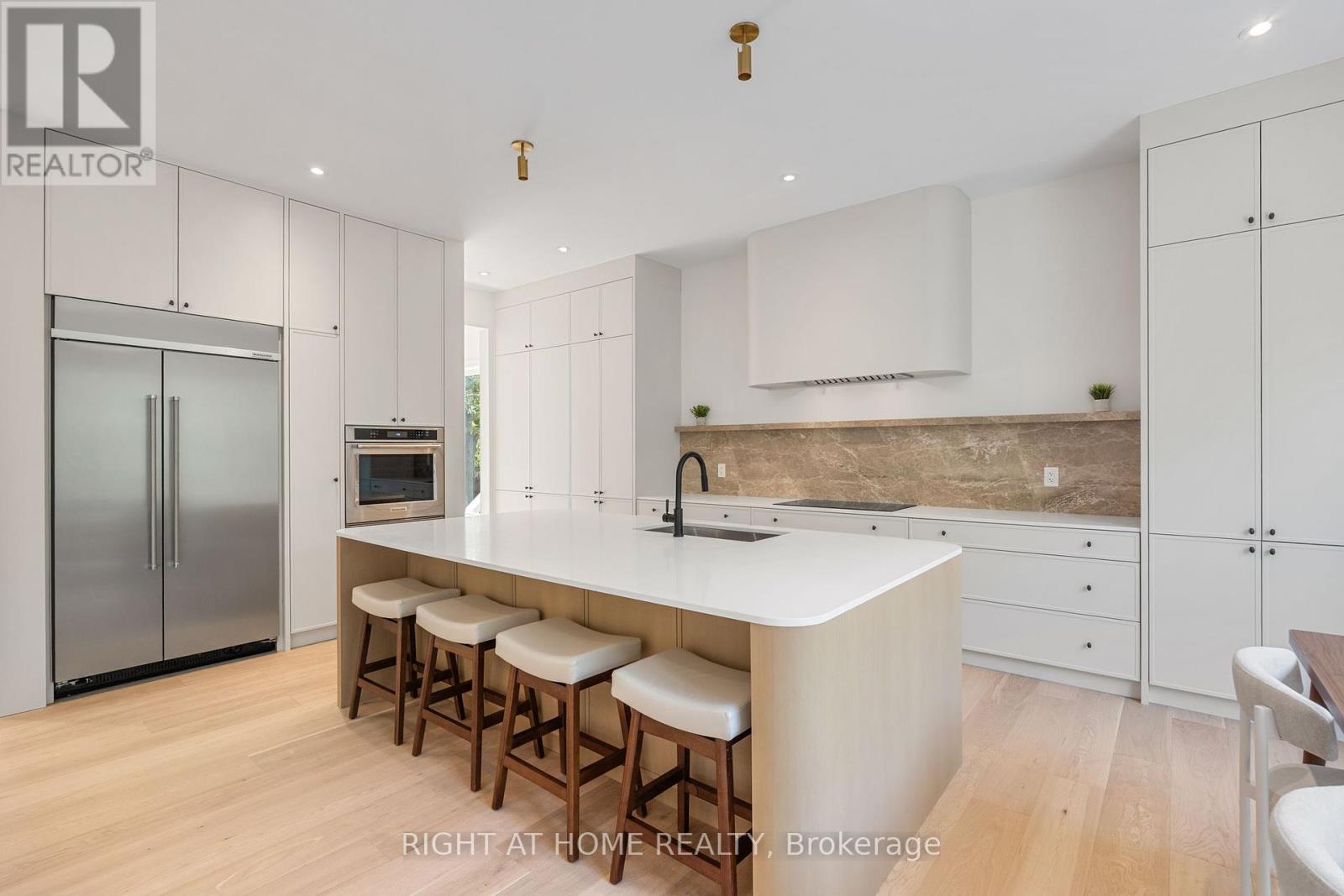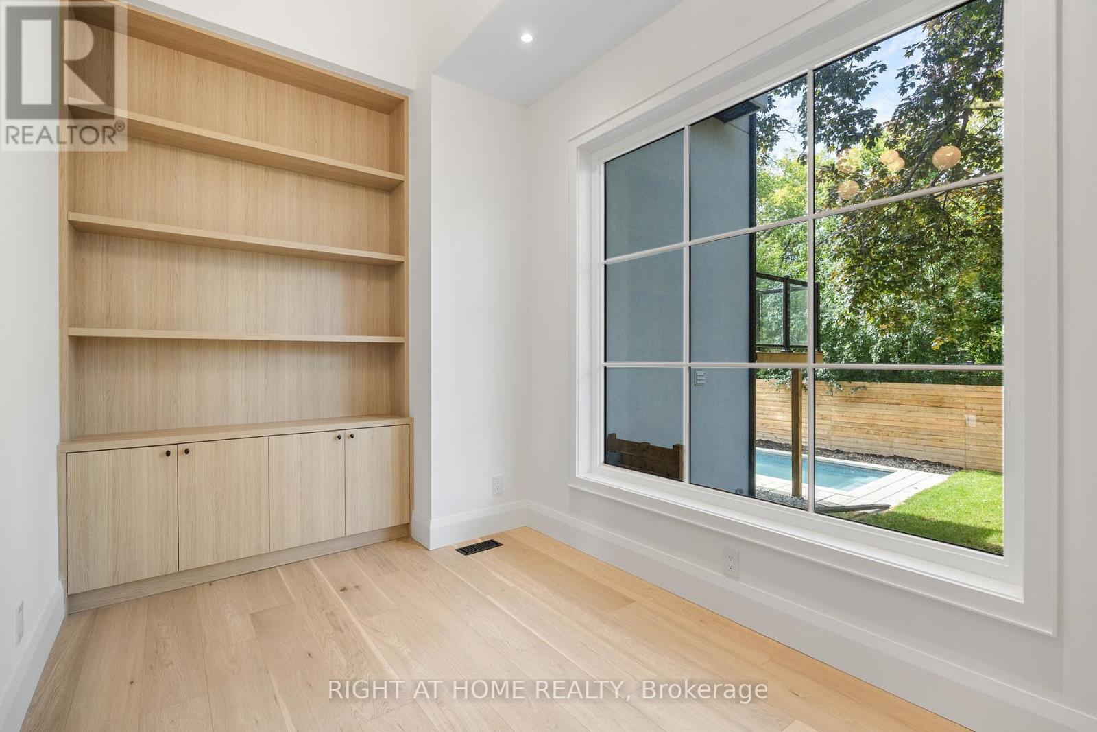 This expertly designed, fully turn-key custom home offers four spacious bedrooms and luxury finishes throughout. Located on an ultra-quiet, family-friendly street, the home features 10-ft main floor ceilings, and a walk-out basement with separate side entrance ideal for future rental or in-law suite.The chef's kitchen includes a 42" KitchenAid fridge, Fisher & Paykel induction cooktop, custom stone backsplash, custom designed rounded hood, and generous storage. The open-concept living and dining space is perfect for entertaining, featuring a custom arched bar with stone countertops.A custom home office with floor-to-ceiling library millwork sits just off the foyer, enclosed by reeded glass pocket doors and overlooking the serene, landscaped backyard. Upstairs, the oversized primary suite offers a fully customized walk-in closet and a spa-like ensuite with marble accents, soaker tub, heated floors, double vanity, and a glass shower with floating bench.Outside, enjoy a private backyard retreat complete with a beautifully designed saltwater pool, extensive landscaping, and a mature Norway Maple tree for natural shade. The large front yard provides a rare opportunity for additional recreational space or a future sport court.This home also includes over $10,000 in custom window coverings, an electric vehicle charger, heated floors in both the front foyer and the primary ensuite, a double car garage, and an oversized driveway with multiple car parking. Set back generously with a large sugar maple in the front yard and full separation between the basement and main living areas, this home is designed for both comfort and versatile living. (id:64974)