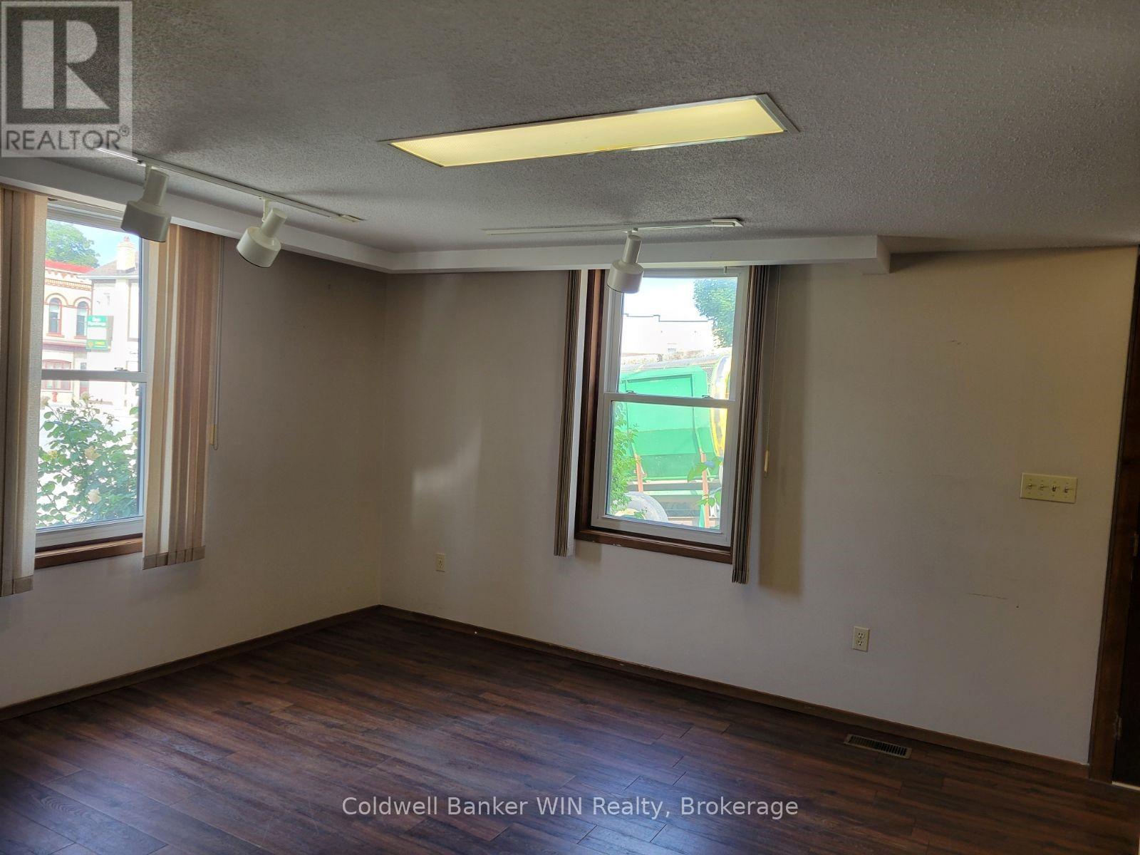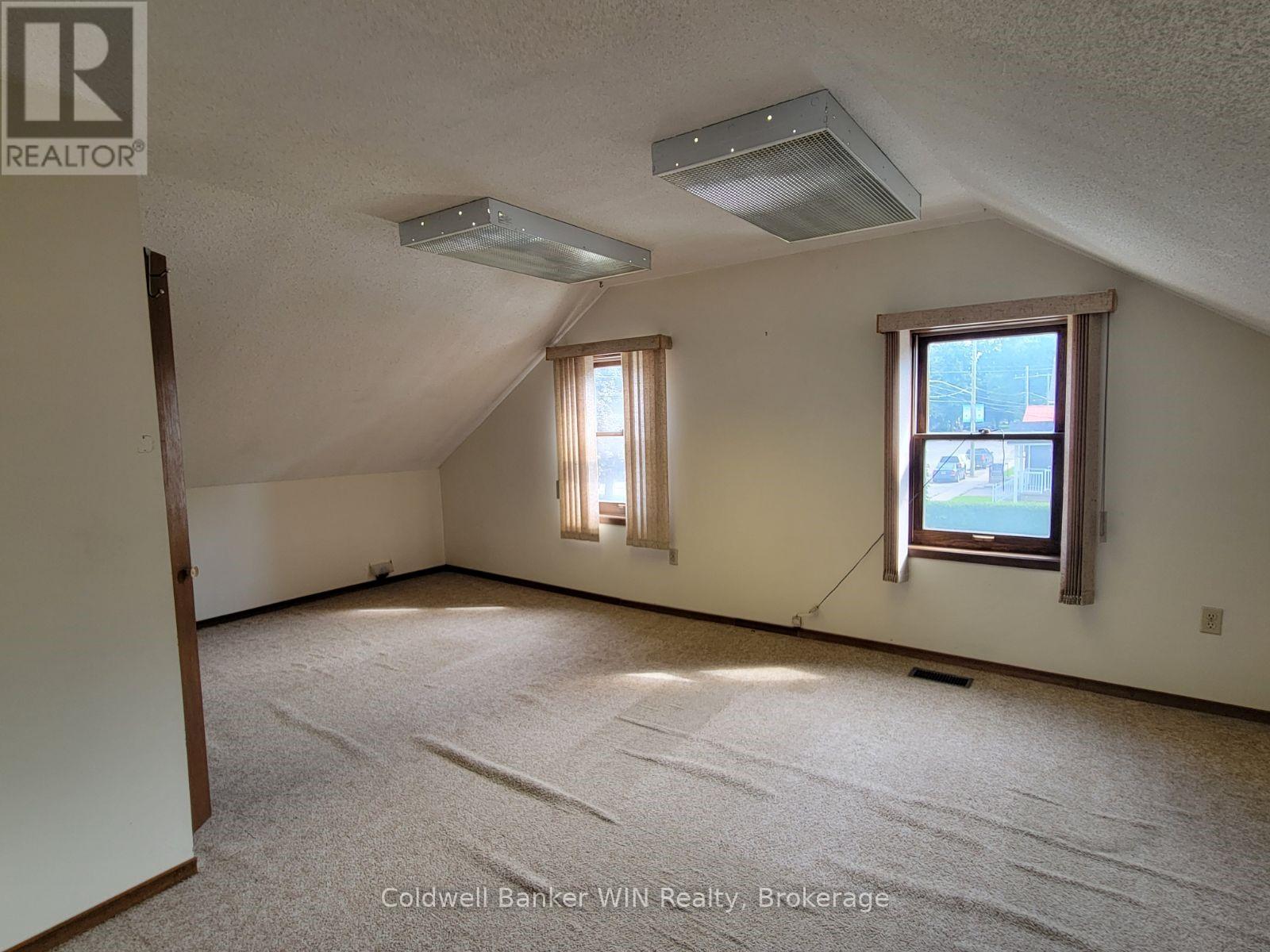 Great high profile side street commercial location. This 5 office, 1 1/2 bath building enjoys C1 zoning and is located in the heart of the Mount Forest business district. Additional auxiliary space is available in the partially finished basement. Besides the extensively asphalt covered yard, additional parking or storage is available in the detached 16 ft. x 24 ft. garage with a full usable loft. This opportunity is available for immediate occupancy. (id:64974)
