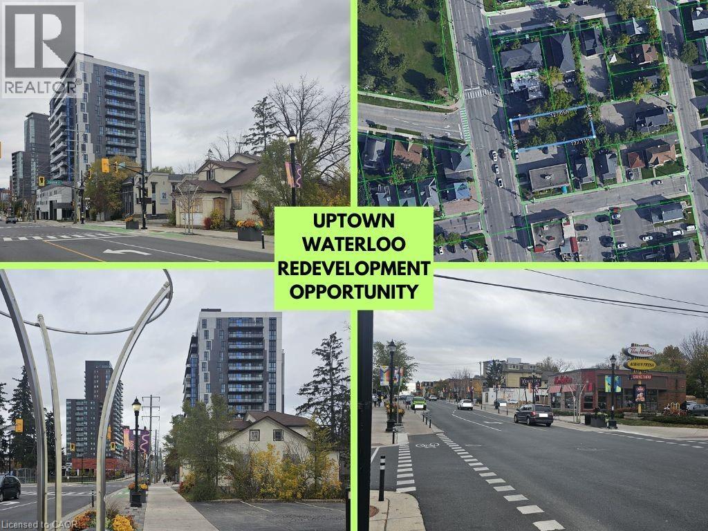 Exceptional Development Opportunity in the heart of Uptown Waterloo! Prime location at the coveted intersection of King Street and Central Street, ideally situated between University Avenue and Bridgeport Road. This 50 ft x 125 ft lot offers outstanding potential for redevelopment with zoning that allows construction up to 18 storeys (U1-60 – Uptown Core). Concept plans (available in attachments) propose an 11-unit building with a total of 41 bedrooms and 3 commercial units on the main level — or bring your own design to take full advantage of this unique zoning. The property is within walking distance to both the University of Waterloo and Wilfrid Laurier University, surrounded by a vibrant mix of retail, dining, and amenities. This is one of the most desirable sites in Waterloo Region, offering excellent exposure, strong growth potential, and ideal suitability for a new commercial or mixed-use development. The existing structure is being sold “as is, where is” and must be demolished by the Buyer. The City of Waterloo has expressed support for new business and redevelopment initiatives in this area. Don’t miss this rare opportunity to secure a premium Uptown Core property with exceptional potential for future growth. (id:64974)
