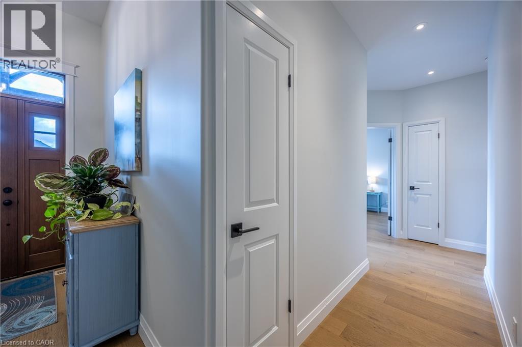 Stunning custom-built bungalow perfectly situated in this picturesque lakeside town. This thoughtfully designed residence combines the beauty of nature with modern convenience, backing onto 21 acres of pristine Carolinian forest while remaining just minutes from shopping, restaurants, and recreational amenities. The exterior charms with its welcoming stone-columned front porch and timber truss details, while the covered rear concrete porch (34' x 10') offers the ideal retreat to unwind and take in the peaceful surroundings. Inside, the open concept living area features a striking natural gas stone fireplace with floating shelves, built-in cabinetry, and expansive windows framing views of the Long Point Conservation Area. The chef’s kitchen showcases ceiling-height cabinetry, a custom range hood, quartz countertops, and a waterfall island — all flowing into a bright dining space illuminated by a transom window. The primary suite includes a walk-in closet and an elegant ensuite with a floating hickory-stained vanity. Two additional bedrooms and a 4-piece bath complete the main level, along with a convenient laundry room with cabinetry, closet space, and direct garage access. The finished basement with high ceilings expands your living space with a large family room, fourth bedroom, exercise or hobby room with frosted glass doors, 3-piece bath, and ample storage. Quality details continue throughout — from engineered hardwood and ceramic tile on the main level to durable laminate and carpet below. Exterior highlights include stone, brick, and insulated composite cladding, a two-car insulated garage, gas lines for BBQ and stove, irrigation system, and professional landscaping. Experience the comfort, craftsmanship, and charm of Port Dover living — check out the virtual tour and book your private showing today. (id:64974)