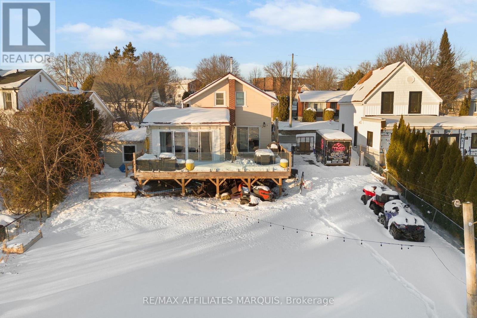 Set gracefully along the Rideau River, this exceptional property offers the rare blend of true waterfront living with the convenience of full municipal services. Enjoy year-round comfort with municipal water and sewer, natural gas heating, and central air conditioning - features seldomly found in waterfront homes. The main living spaces are bright and inviting, with large windows that frame tranquil water views and create a serene backdrop in every season. Two sets of patio doors lead to a generous deck with sleek glass railings, perfectly designed for relaxing, entertaining or simply soaking in the scenery. A private dock, permitted through Parks Canada, provides direct access to the renowned Rideau system.The home offers a practical and flexible layout with two bedrooms on the second floor and an additional finished bedroom in the basement. A full bathroom, a convenient powder room, and attached garage enhance everyday functionality. Ideally located within town limits and just minutes from amenities, parks, and services, this is a waterfront property designed for year-round living - where lifestyle, comfort, and location come together without compromise. (id:64974)