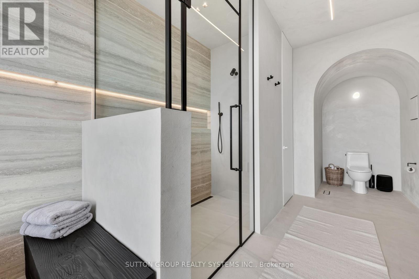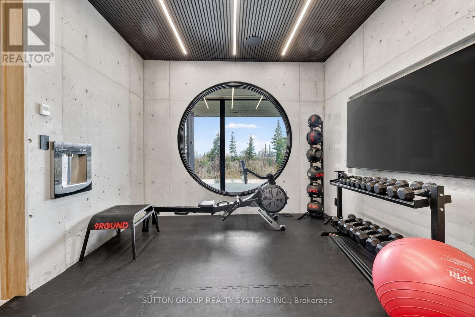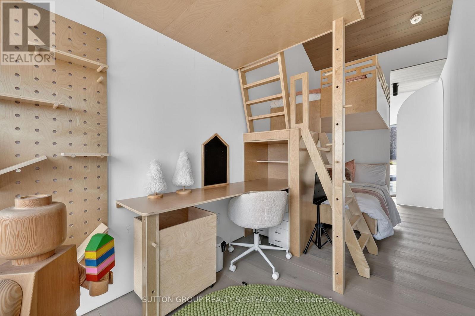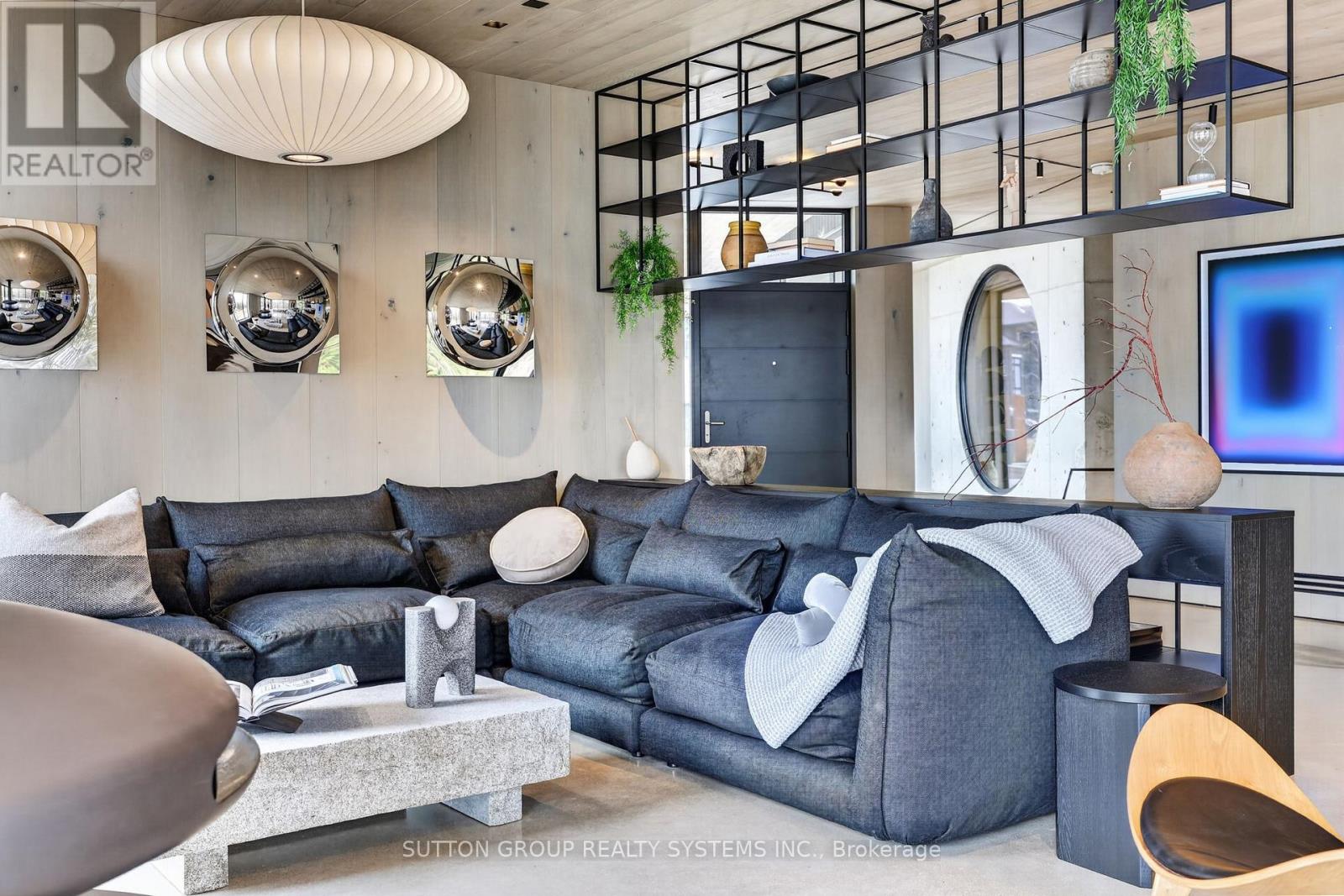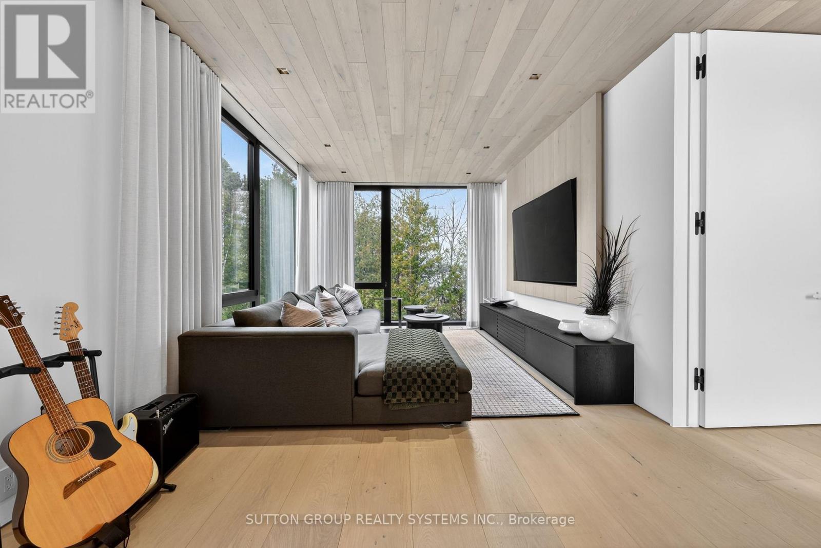 Exceptional newly built, custom-crafted 2-storey residence, ideally positioned between the shores of Georgian Bay and the ski slopes of Georgian Peaks. Designed by Foreshew Design Associates this 4-bedroom, 3.5-bath home showcases a seamless blend of modern architecture, premium materials and advanced technology. Exterior features include striking black thermal pine siding, durable metal roof & energy-efficient Drutex triple-pane windows & doors. Fully integrated Lutron&Control 4 system w/ multiple control panels provides effortless control of lighting & ambiance throughout. Open-concept main level is designed for both everyday living & entertaining, featuring dramatic floor-to-ceiling windows an iconic floating wood-burning fireplace, custom metal shelving & built-in cabinetry. Heated polished concrete floors w/hydronic radiant heating extend throughout main level & into garage. Designer kitchen by Chervin Kitchen & Bath offers panelled 36" JennAir fridge, 36" Bosch gas range, marble countertops & backsplash and two panelled drawer dishwashers by Fisher & Paykel. Hidden coffee station with double fridge/freezer drawers and automated pocket doors along with spacious walk-in pantry adds both style & functionality. Additional main floor features include soundproof gym with dedicated ventilation system and Elkay bottle filling station as well as designer powder room with statement finishes. Outdoors heated driveway & walkways with snow-melt system ensure low-maintenance winter living. Upper level offers bright family room with custom built-ins, luxurious primary retreat featuring vaulted ceilings, refined finishes, private loft space ideal for meditation, reading or quiet retreat, custom walk-in closet and spa-inspired 5-piece ensuite with walk-in glass shower & integrated tub. Three additional bedrooms, two bathrooms and second-floor laundry complete upper level. Rare offering combining design, comfort and unbeatable four-season lifestyle steps to water & slopes! (id:64974)