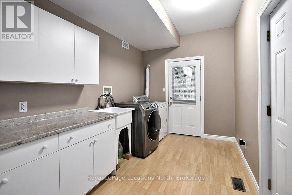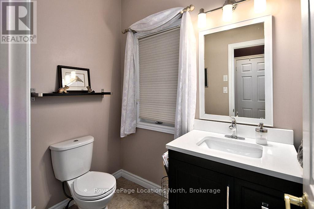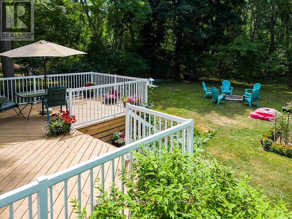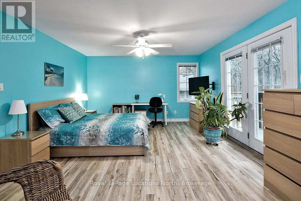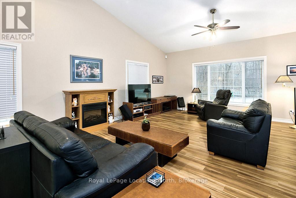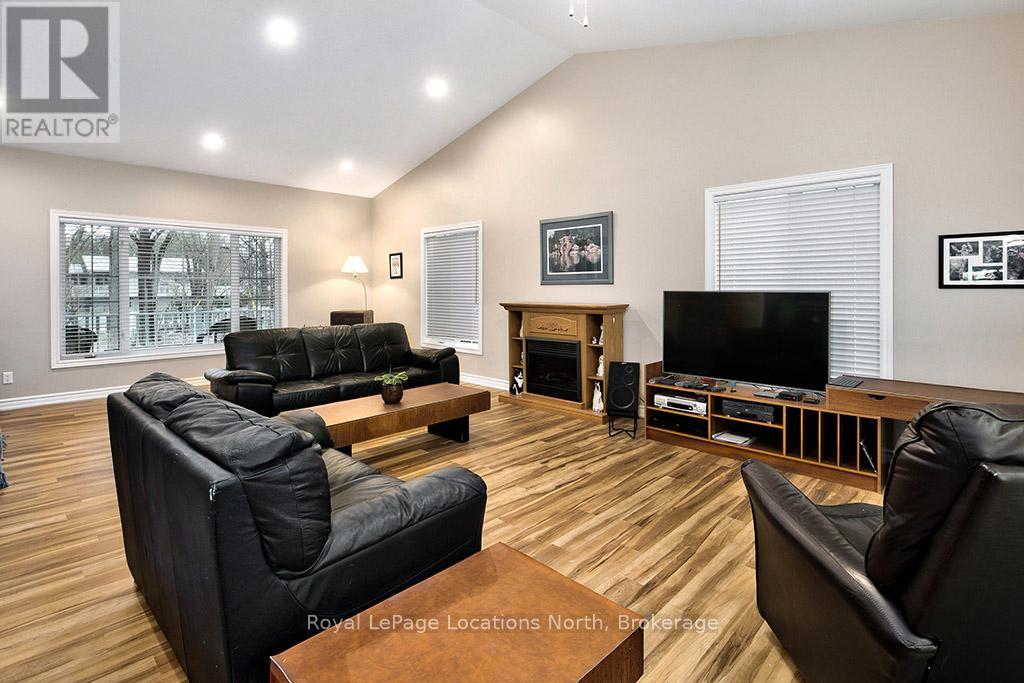 Where Every Season Beckons - And Every Detail Delivers. Perfectly positioned between Collingwood and Thornbury, this exceptional family home places you minutes from The Peaks, Alpine, and Craigleith ski clubs, steps to the Georgian Trail, and just across the road from Georgian Bay Public Access. Bike the Georgian Trail into town in summer, snowshoe through the forest in winter, paddle at sunrise in fall - this is four-season living at its finest. Set on a lush, private lot over 200 feet deep, surrounded by mature trees and protected land with ski hills framing the distance, this dead-end road retreat offers rare tranquility without sacrificing convenience. Charming gardens and a welcoming front porch set the tone - your morning coffee has never had a better backdrop. Inside, soaring cathedral ceilings anchor a generous great room that flows seamlessly into the eat-in dining area and chef's kitchen, complete with warm, wooden cabinetry and ample prep space for entertaining after a day on the slopes or trails. A 2-piece powder room, laundry, and oversized double garage complete the main level. Upstairs, the primary suite is a true sanctuary - featuring a recently updated spa-inspired ensuite with soaker tub, glass shower, and double vanity, plus a private walk-out balcony. Two additional bedrooms share a 4-piece bath, while a second primary suite with its own ensuite offers ideal flexibility for in-laws, teens, or guests craving their own retreat. The lower level rounds out the package with a dedicated gym area, two versatile bonus rooms perfect as a den, office, or second living space, and generous storage throughout. Too many upgrades to list - highlights include furnace/AC (2019), whole-home generator (2023), large, new back deck (2024), updated appliances, refined finishes, and more. This home has been thoughtfully maintained and improved for true turn-key living.This is more than a home - it's a lifestyle address. (id:64974)
