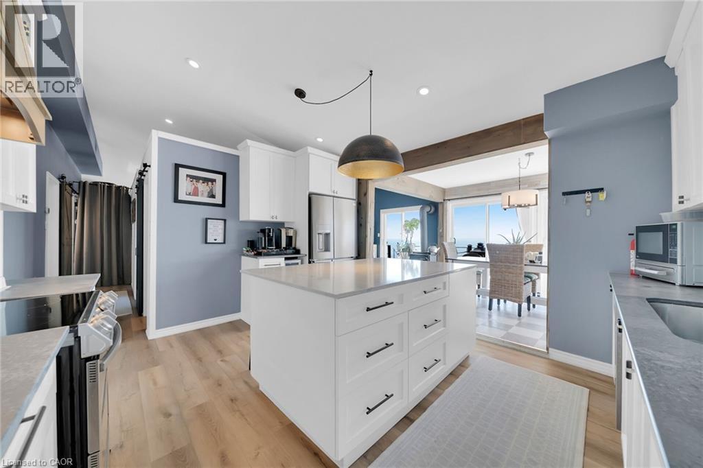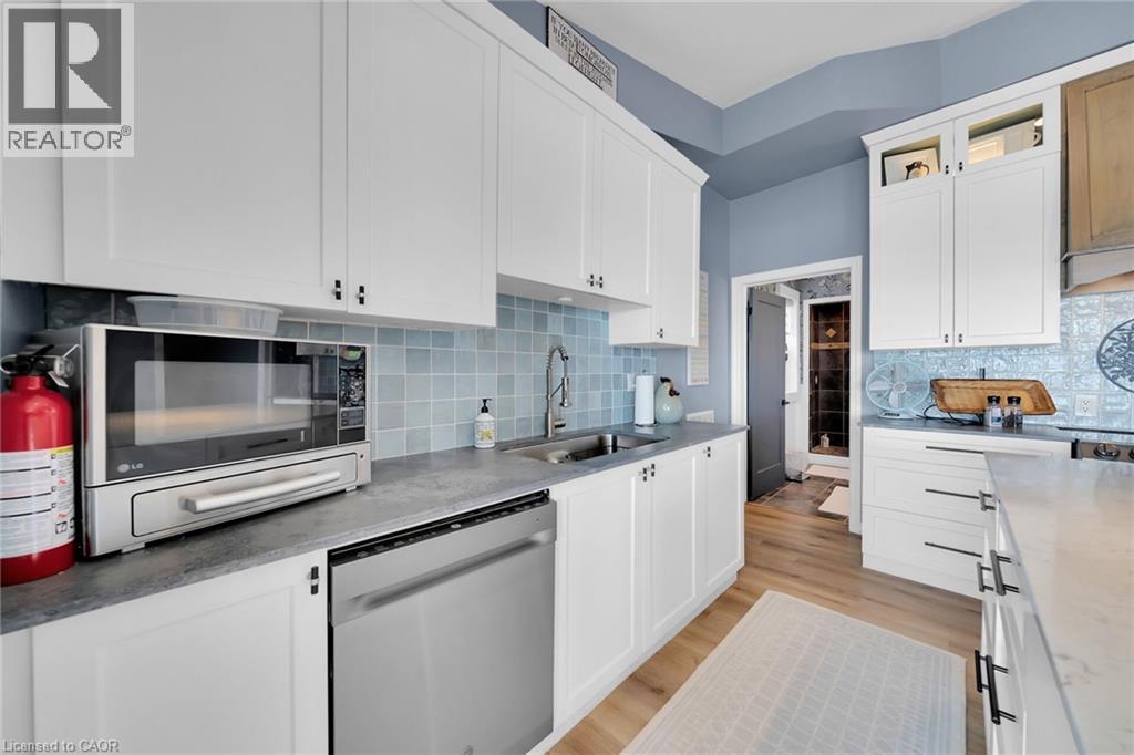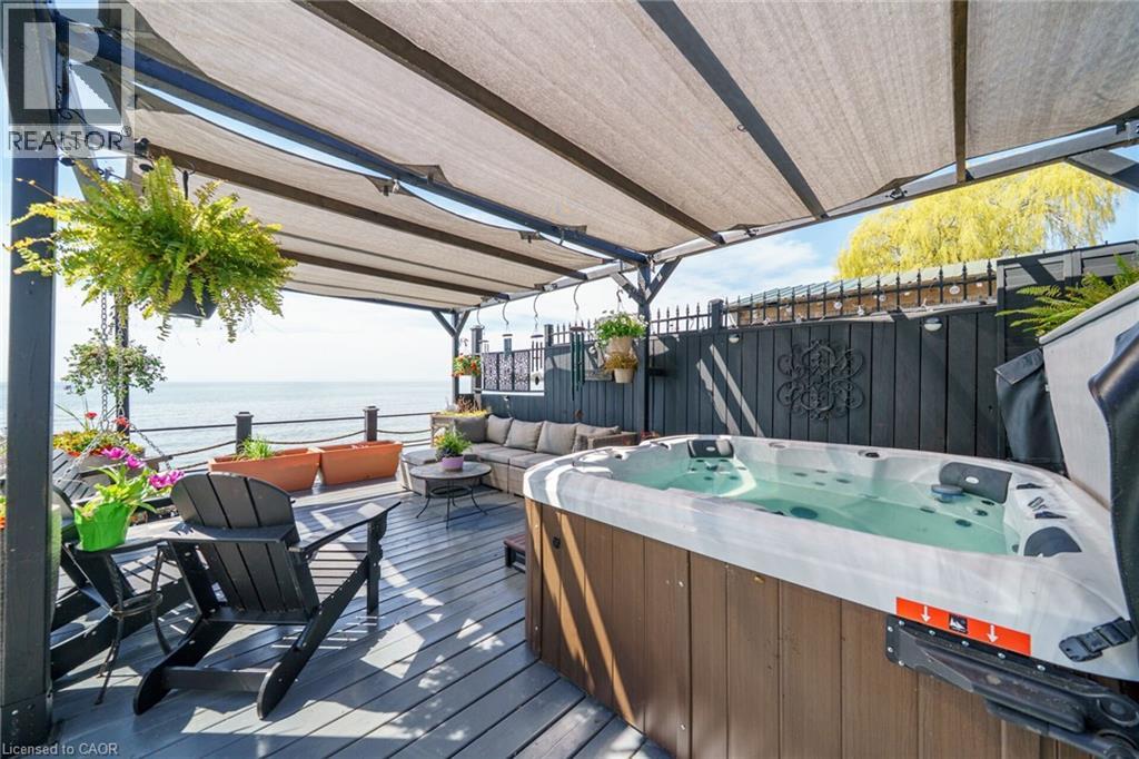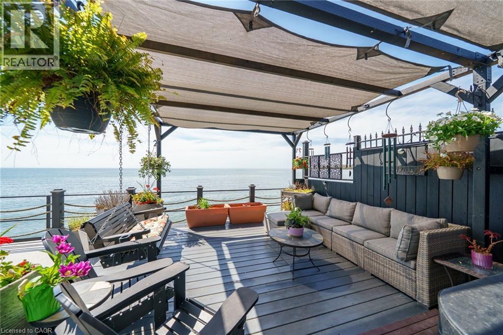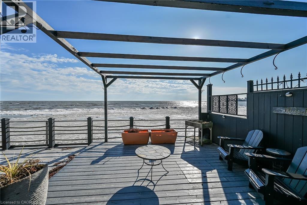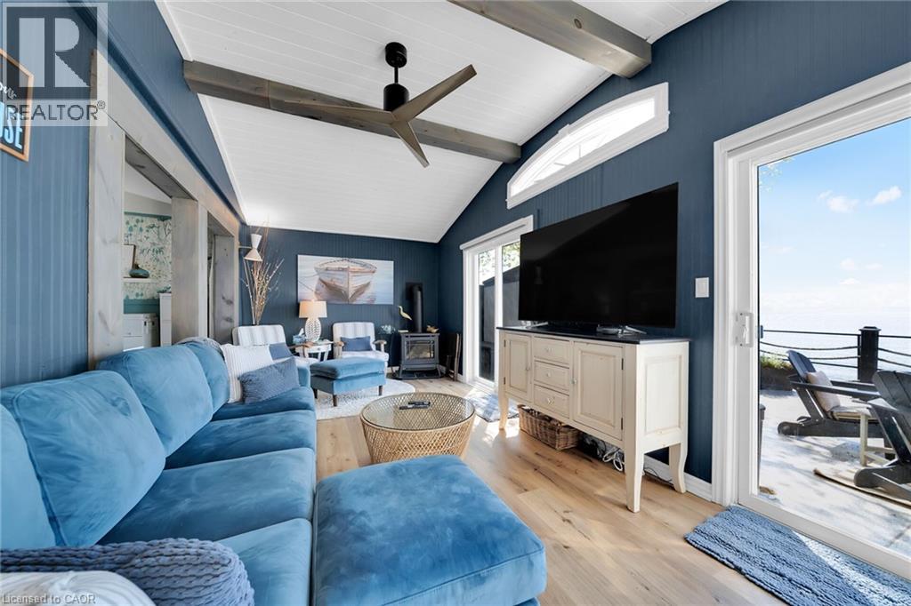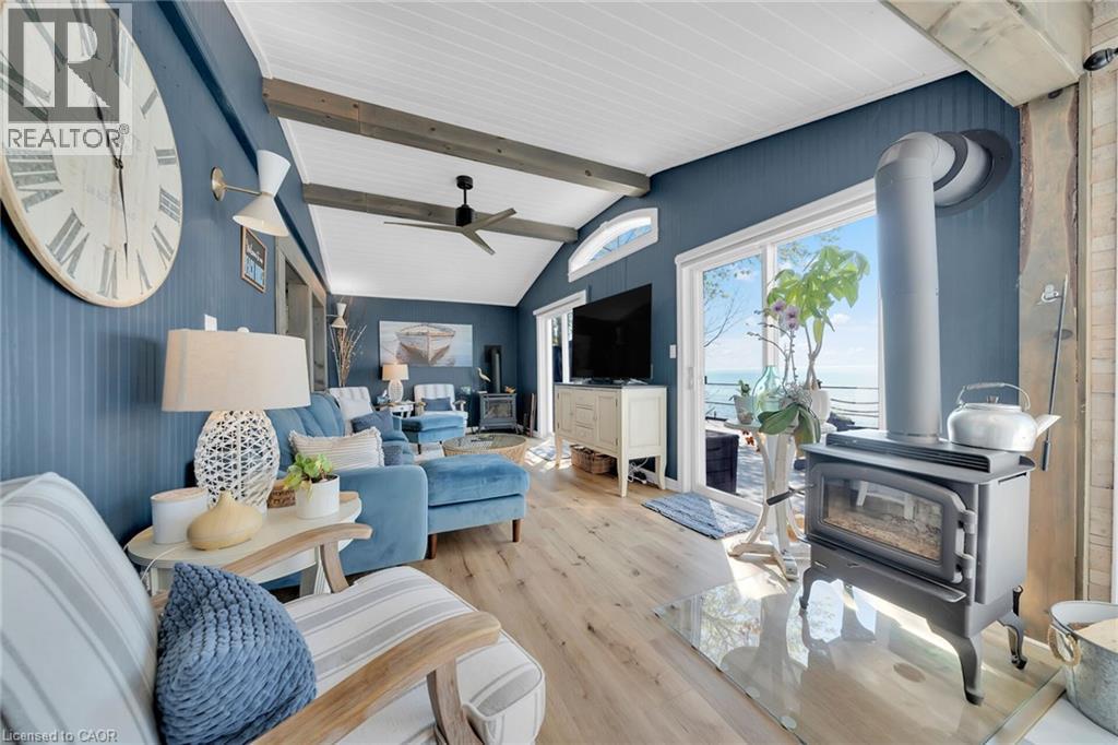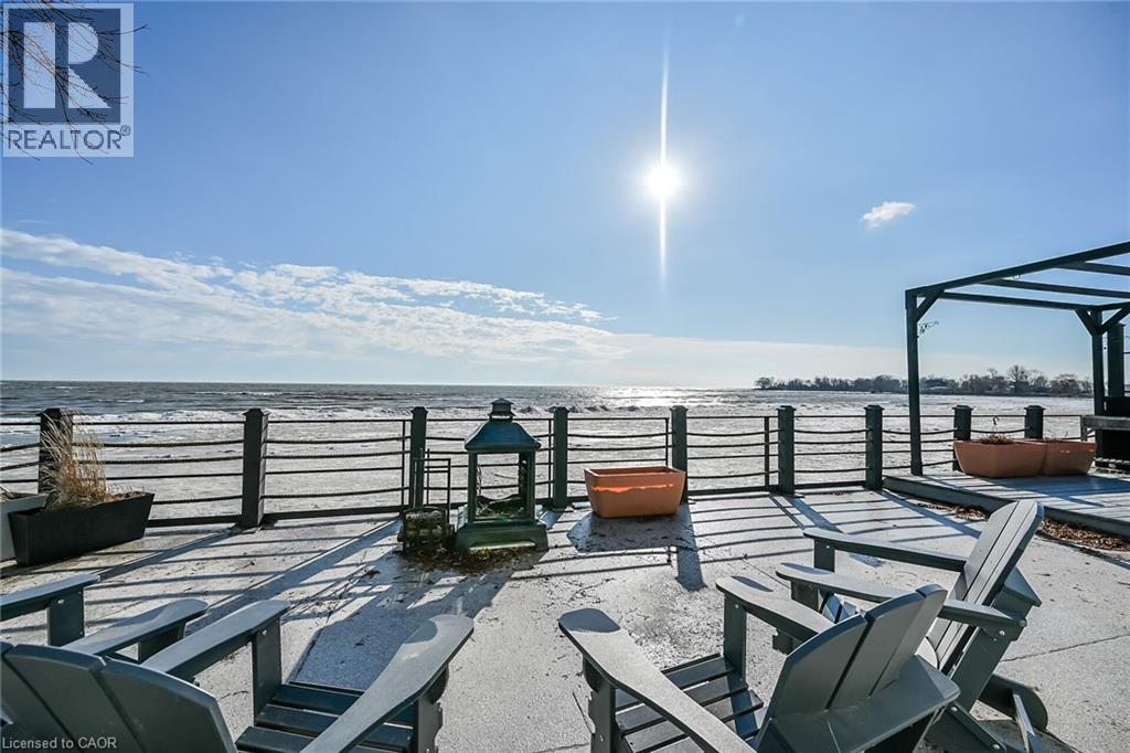 Truly Irreplaceable, Exquisitely presented Waterfront “Lake House” on the sought after South shore of Lake Erie offering a masterfully planned, Beautifully renovated 3 bedroom+1 bathroom Bungalow with attention to detail evident throughout. Rarely do properties Capture & Embrace the true feel of Lakefront Living! Incredible curb appeal with extensive concrete paver stone driveway & walkways. Backyard Oasis complete with stone effect concrete patio, pergola with decked entertaining area & hottub ('24), solid breakwall, lakeside shed, & private stair access to sand bottom beach. The gorgeous interior layout emphasizes the stunning Waterview’s, five sets of sliders, custom kitchen cabinetry featuring quartz countertops, tile backsplash, bright dining area (fits 10+), vaulted great room with both corner gas fireplace & woodstove, 3 bedrooms, additional bedroom / den area, welcoming foyer, upgraded 3 pc bathroom, & desired MF laundry. Bonus attached garage/utility room ideal for workshop & storage with auto garage door. Upgrades include n/gas furnace– 2025, premium flooring, modern fixtures, windows, maibec exterior siding, fiber optic cable / internet & much more! Easy commute to Hamilton, 403, QEW, & GTA. Close to Cayuga. Ideal Year round home, cottage or Investment. Must view to appreciate the attention to detail & upgrades that this home has! You too can experience affordable Lake Erie Waterfront Living. (id:64974)