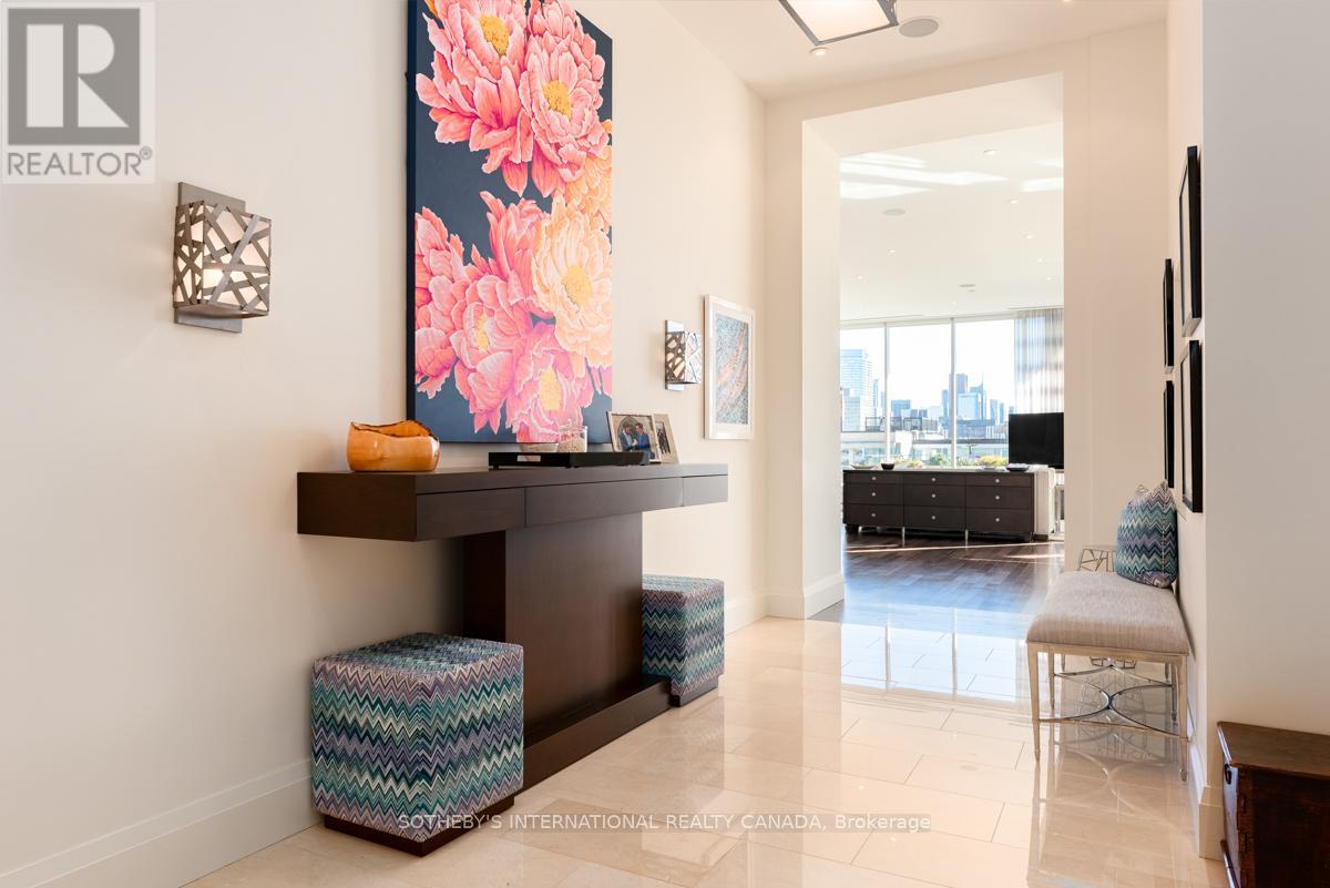 An extraordinary residence in the heart of Yorkville, Suite 1201 at 155 Cumberland offers over4,000 sq. ft. of bespoke living space-a rare half floor home that combines architectural pedigree with modern refinement. With only 15 residences in the building, privacy and discretion are absolute, while the address places you steps from Toronto's finest dining, boutiques, and cultural institutions. This 3-bedroom plus family room residence is defined by its scale and proportion. Ceilings soar to almost 12 feet, while floor-to-ceiling windows frame sweeping city and treetop views. The great room spans the south façade, offering a dramatic yet serene setting for both intimate evenings and grand entertaining. A dedicated dining gallery flows seamlessly into the Downsview-designed chef's kitchen, where top-tier appliances, expansive counters, and custom cabinetry create a space equally suited to culinary artistry and casual gatherings. The primary suite is a private sanctuary, with a spa-inspired ensuite featuring a freestanding soaking tub, walk-in shower, radiant heated floors, and generous dressing areas. Two additional bedrooms, each with an ensuite, provide comfort for family or guests, while the family room offers a second living core-ideal for film, reading, or quiet retreat. Every detail, from wide-plank hardwood to polished stone, has been curated for timeless elegance. Outdoors, a private terrace extends the living space, offering a rare vantage point above Yorkville's storied streets. The building itself is an icon of exclusivity, originally conceived as a modernist penthouse in the 1960s and reimagined in 2010 by KingSettCapital and Quadrangle Architects. Residents enjoy 24-hour concierge, secure underground parking, and discreet entry, ensuring a lifestyle of effortless luxury. Suite 1201 is more than a condominium-it is a trophy residence, offering the scale of a private home with the convenience and prestige of Yorkville's most exclusive address. (id:64974)