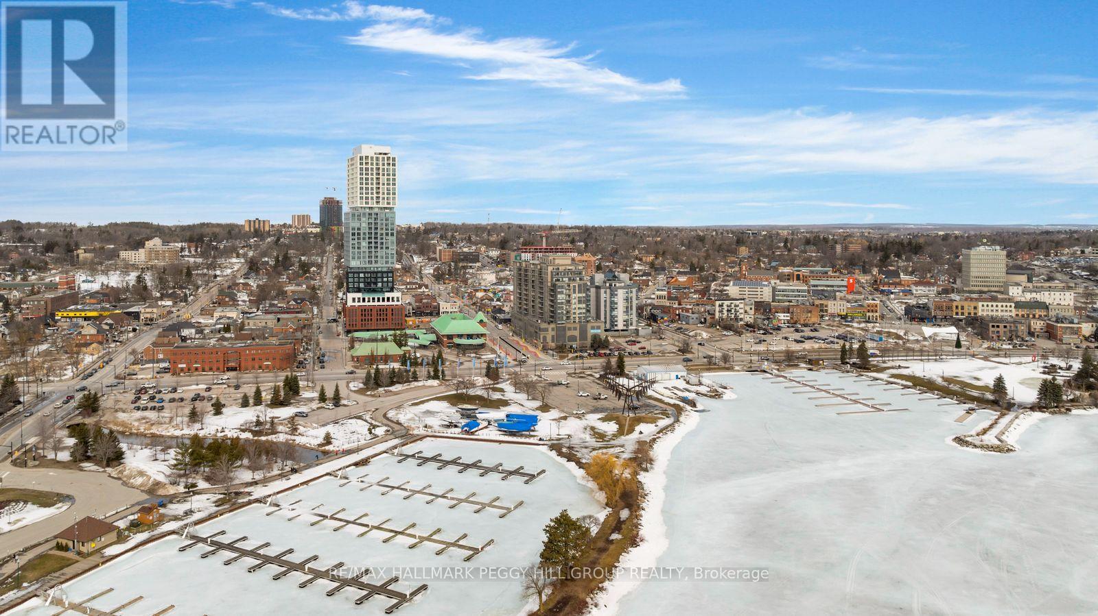 BRAND-NEW 2-BEDROOM-PLUS-DEN CONDO WITH PARKING, IN-SUITE LAUNDRY, & KEMPENFELT BAY VIEWS! Perched above downtown Barrie with sweeping views over Kempenfelt Bay and the city skyline, this brand-new, never-occupied condo for lease delivers a striking backdrop from the moment you walk in. Floor-to-ceiling windows fill the open-concept living space with natural light, and the private balcony extends the living area outward with a clear vantage point over the bay and city lights. The modern kitchen has built-in stainless steel appliances, sleek counters, a matching backsplash, flat-panel cabinetry, and a movable island. A spacious layout with 2 bedrooms, a den, and 2 full bathrooms gives you room to spread out, while the primary features a double closet and a modern 3-piece ensuite, complemented by a beautifully finished 4-piece main bathroom. In-suite laundry and one parking space add ease to daily living, while the location puts Barrie's waterfront, marina, Heritage Park, trails, restaurants, cafes, shopping, entertainment, the library, and transit all within walking distance. Residents also enjoy access to impressive amenities, including an infinity pool, fitness centre, outdoor BBQ and fire-pit area, boardroom and business centre, and indoor and outdoor dining rooms, creating a lease opportunity that puts you right in the middle of Barrie's downtown lifestyle! (id:64974)