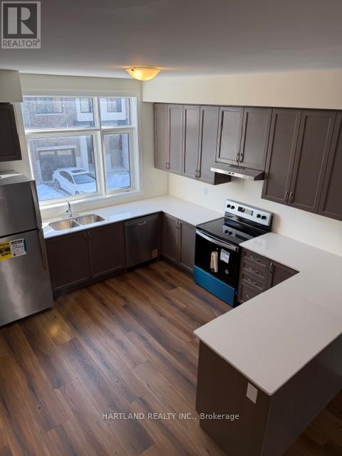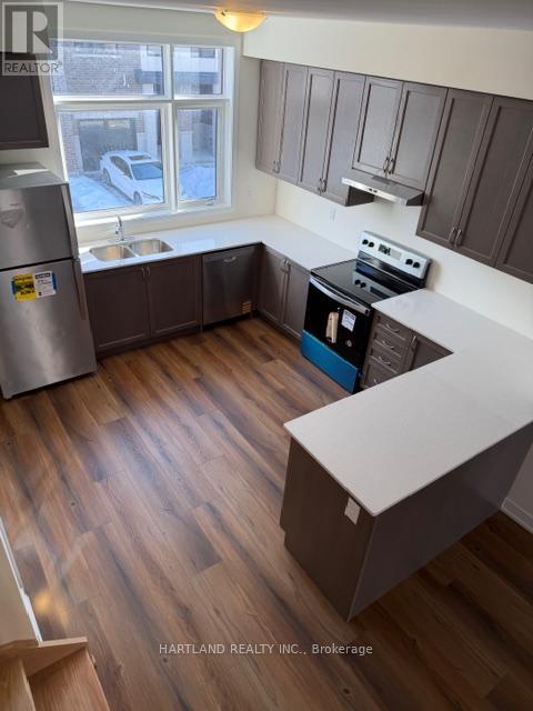 Welcome to Park District Towns by Icon Homes. This modern 3 bedroom freehold town has bright interiors with 9' ceilings on main floor. Modern Kitchen with Stainless Steel Appliances, Upgraded Quartz counters in Kitchen, Main and Ensuite Bathrooms. Enjoy contemporary open-concept living and dining with a 2 PC powder on the 2nd floor. Upper Floor features three bedrooms, walk-in closet in the Primary with a 3PC Ensuite. Ensuite has double-sink and frameless shower door. Laminate Floors throughout. Tandem parking in garage. Brand new never lived in just waiting for You !! Walking Distance to retail plaza with restaurants, shopping, banking etc.. Minutes to 401, 407, Pickering Go, Pickering Town Ctr and many trails, parks and golf. (id:64974)