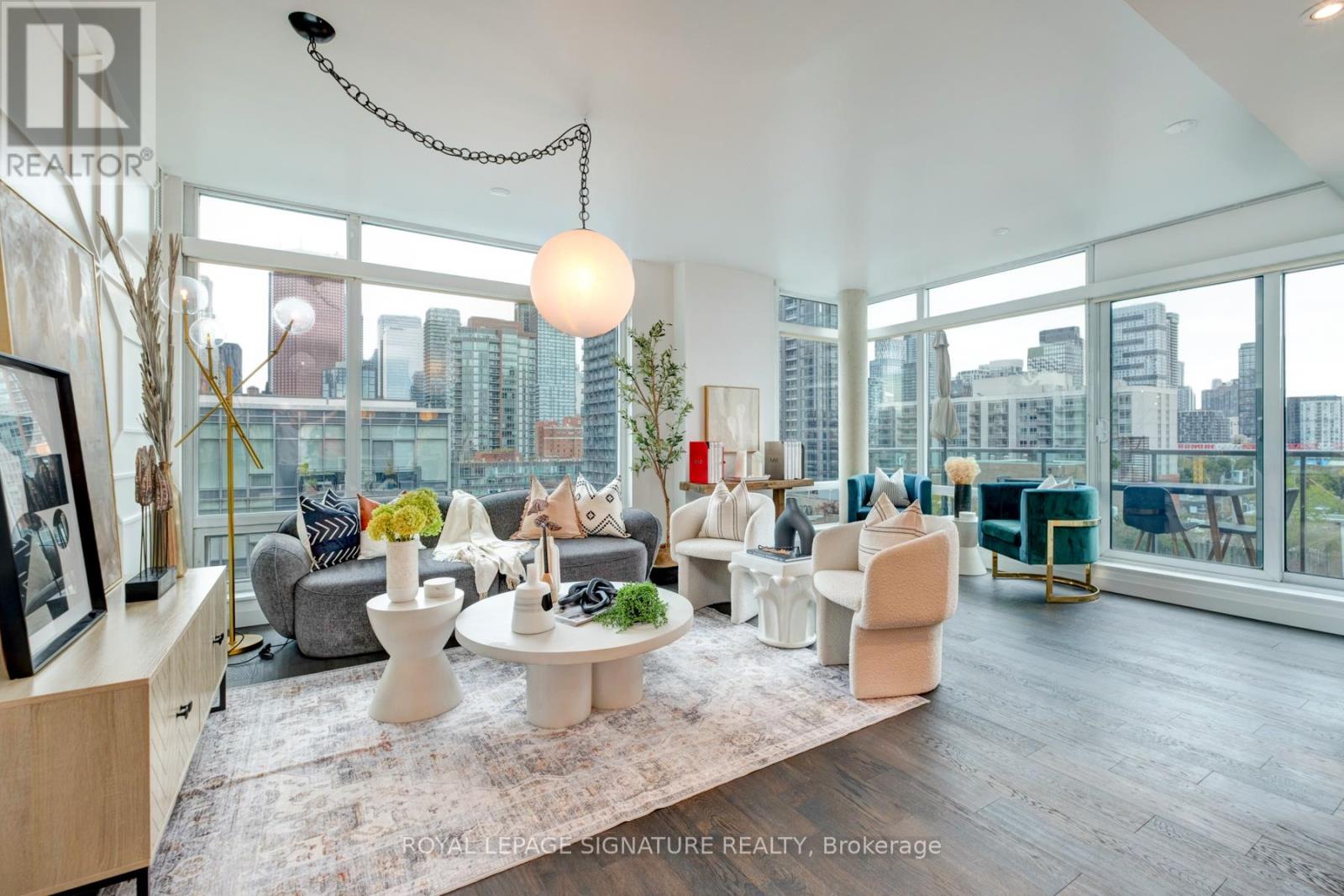 Experience elevated city living in this stunning northwest corner sub-penthouse with over 1,320 sq. ft. of thoughtfully designed space. With 3 bedrooms, 2 baths, and two private balconies - including one with a BBQ gas hookup - this home is made for entertaining and everyday comfort.Soak in incredible skyline views through floor-to-ceiling windows that flood the space with natural light. The open-concept living and dining area flows seamlessly into a chef's kitchen featuring high-end appliances, sleek cabinetry, and modern finishes that make cooking and hosting effortless.The primary suite offers a peaceful retreat with a custom walk-in closet and a marble ensuite complete with a double vanity and glass shower. The second bathroom has been beautifully updated with a deep soaker tub - the perfect place to unwind after a busy day. Upgraded flooring throughout adds warmth and sophistication to every room.All of this just steps from St. Lawrence Market, King St E, the Canary District, and the Distillery District - where Toronto's best dining, shopping, and culture come together. Designed for those who love style, convenience, and connection, this sub-penthouse is urban living at its best. (id:64974)