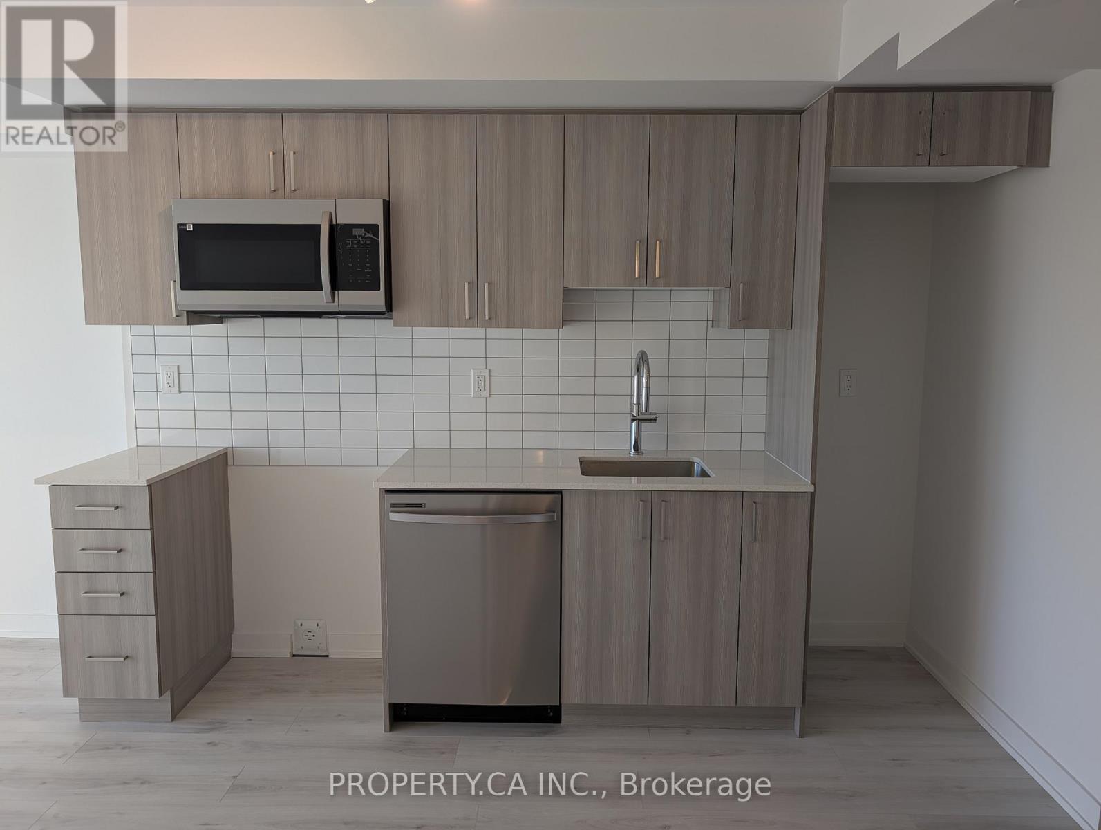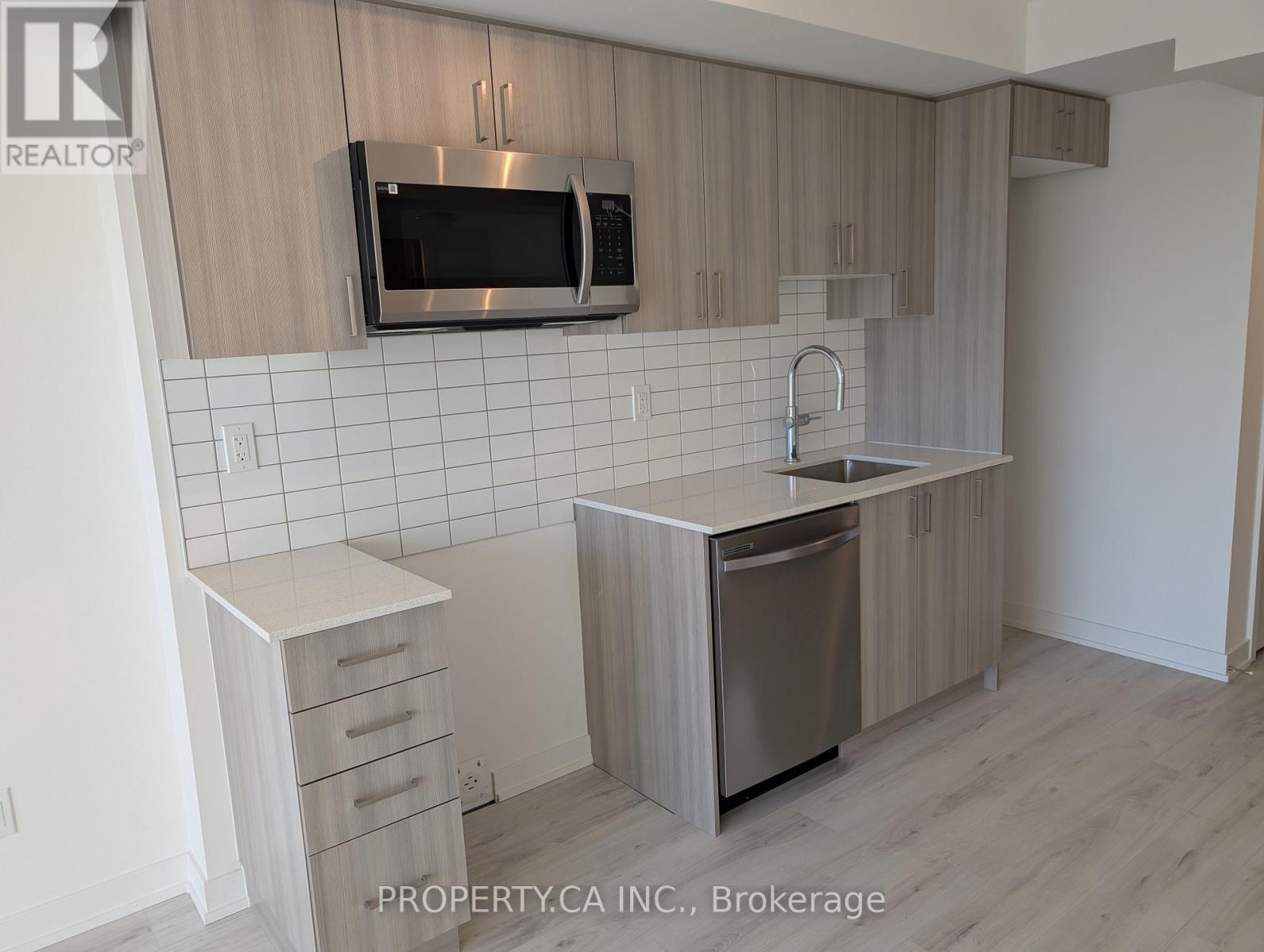 Welcome to Universal City East Condos in Pickering. Brand new 495 sq ft one bedroom, one bathroom suite on the 12th floor with a locker included. Thoughtful, efficient layout with open concept living and dining, designed to feel comfortable for your day to day. Walk out to a balcony for added outdoor space and a bright extension of the main living area. The modern kitchen is finished with quartz countertops, full height cabinetry, stainless steel appliances, and a clean tile backsplash, offering a sleek look with practical storage and workspace. The bedroom is a true separate room with closet space and a functional footprint for a full bed setup. A modern bathroom features a quartz vanity and tub, and in suite laundry adds everyday convenience. A clean, move in ready rental with brand new finishes throughout, ideal for a professional tenant or couple looking for low maintenance living in a growing community with easy access to everyday shopping, dining, services, and transit options. (id:64974)