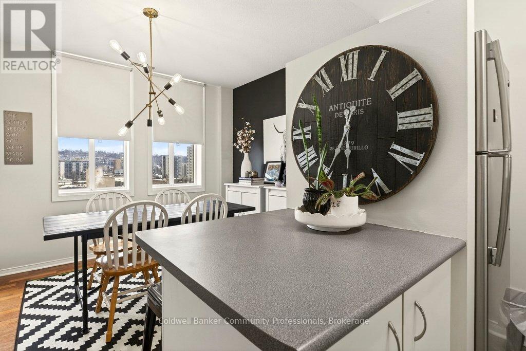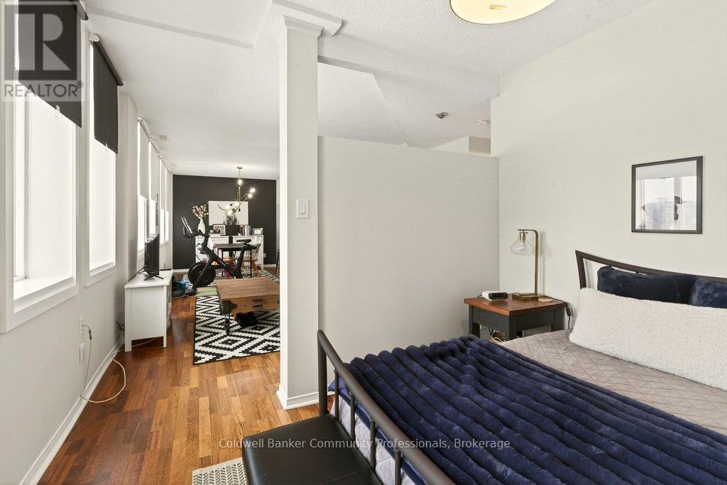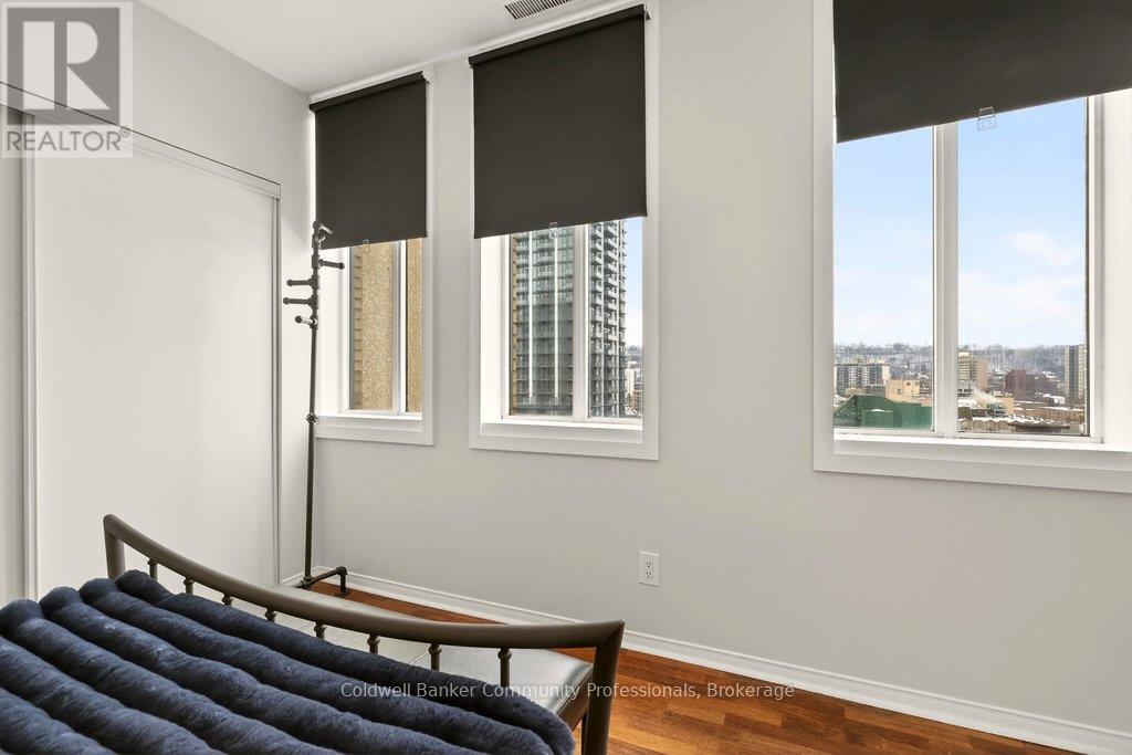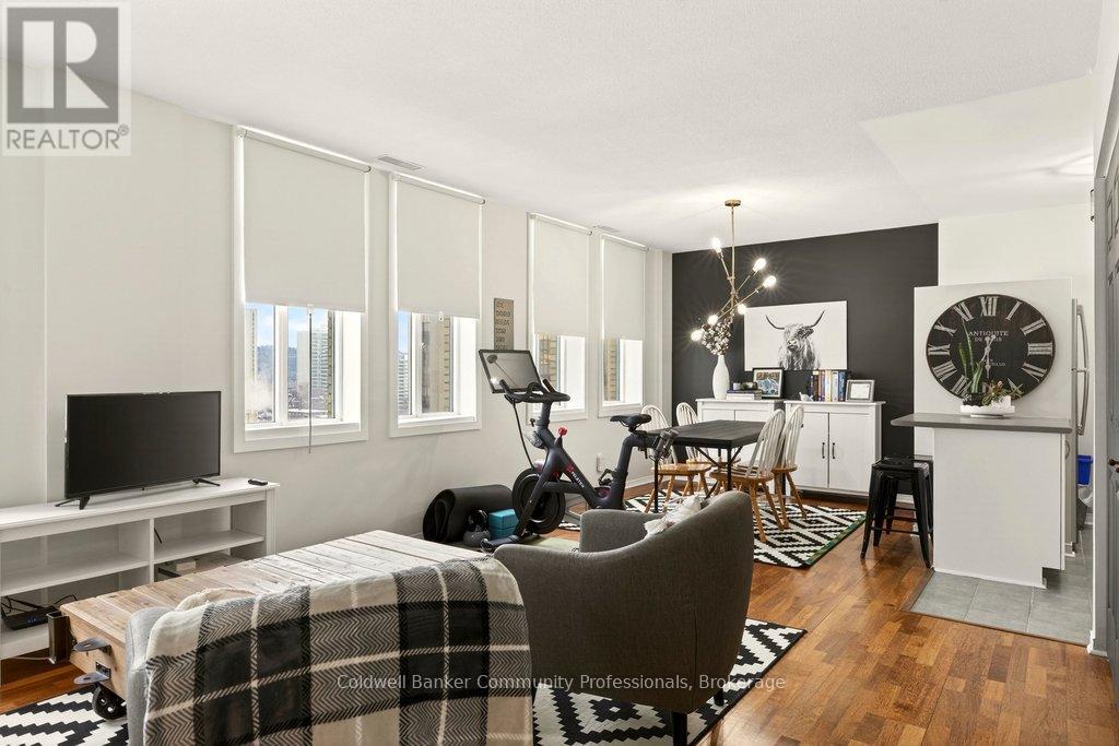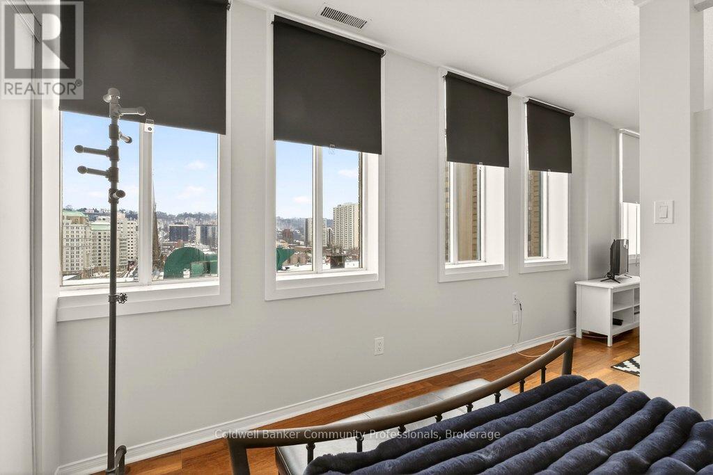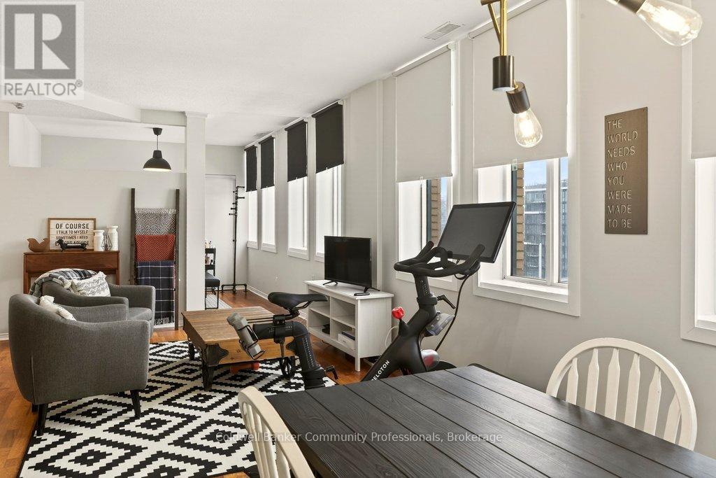 Bright open concept 1 bedroom condo with escarpment and downtown views in the heart of downtown Hamilton in the prestigious Heritage Pigott building. Unique chic open concept loft layout features updated bathroom and kitchen with breakfast bar, stainless steel appliances, in suite laundry with stacking washer and dryer, easy care engineered flooring, owned parking space plus locker. Custom closet built ins provide ample storage. Building features party room plus top floor gym. Easy walk to GO Station, Farmers Market, downtown shops and restaurants, James St. N. art district and all transportation. Short distance to McMaster University, mountain road access, Mohawk College and all hospitals. RSA (id:64974)