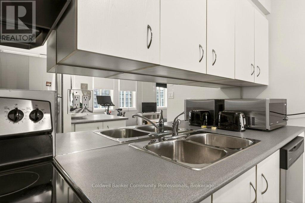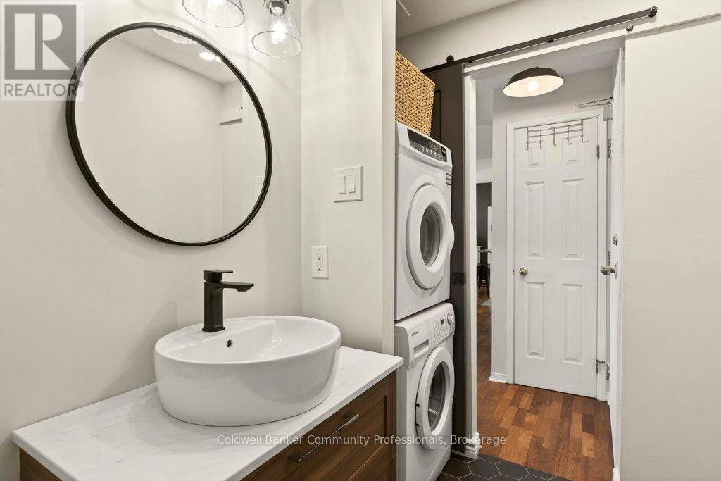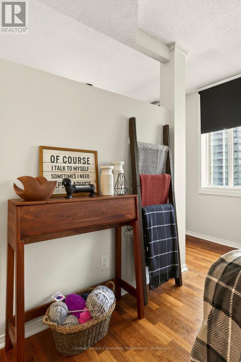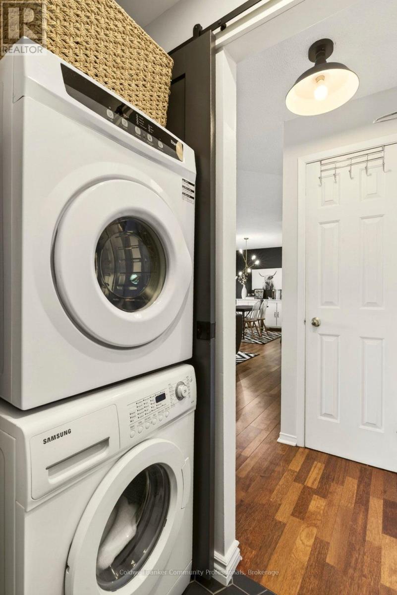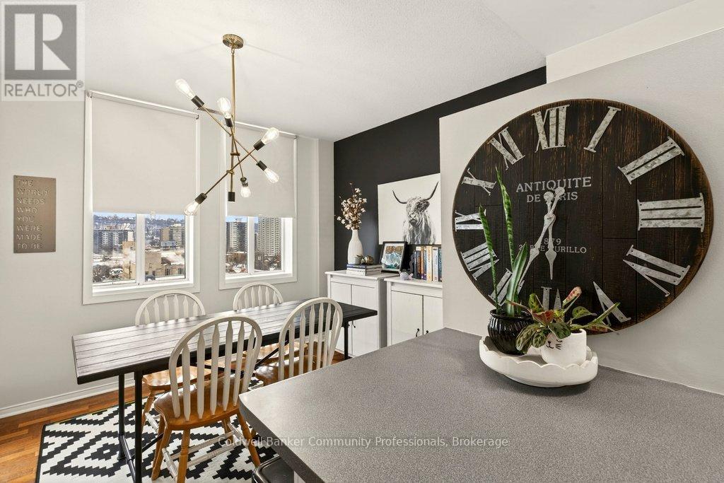 Bright open concept 1 bedroom condo with escarpment and downtown views in the heart of downtown Hamilton in the prestigious Heritage Pigott building. Unique chic open concept loft layout features updated bathroom and kitchen with breakfast bar, stainless steel appliances, in suite laundry with stacking washer and dryer, easy care engineered flooring, owned parking space plus locker. Custom closet built ins provide ample storage. Building features party room plus top floor gym. Easy walk to GO Station, Farmers Market, downtown shops and restaurants, James St. N. art district and all transportation. Short distance to McMaster University, mountain road access, Mohawk College and all hospitals. RSA (id:64974)