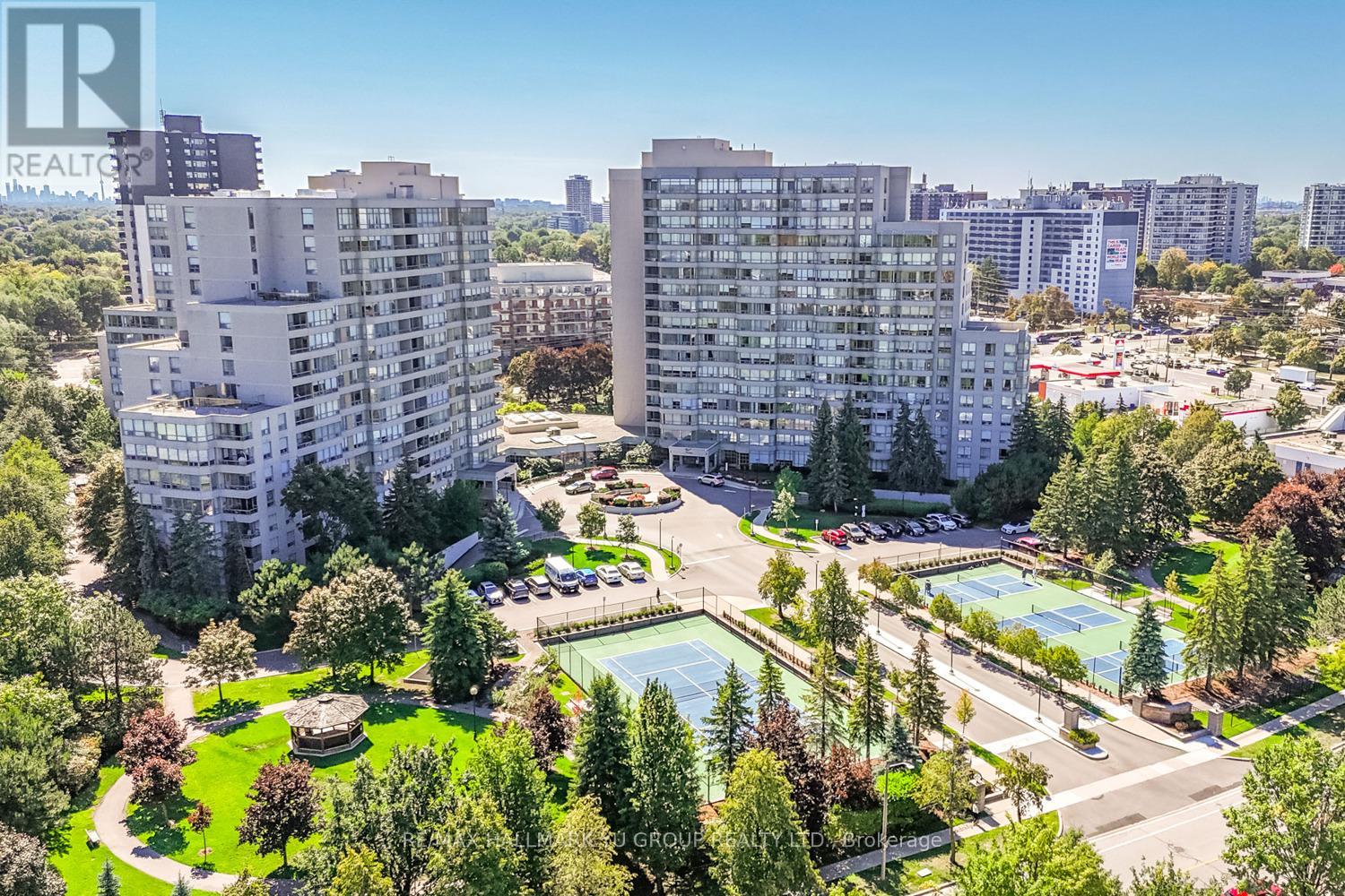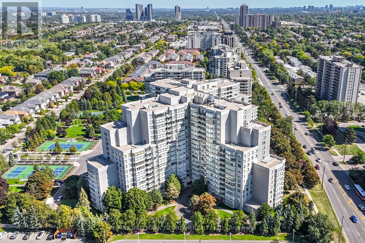 Bright & spacious 2+1 corner unit in a luxury building - 1,373 sq ft with 2 side-by-side parking spots (steps from the elevator and close to ramp) and a locker conveniently located on the same floor. Enjoy unobstructed views over a quiet residential neighbourhood. The layout offers generous living spaces throughout: a primary bedroom of nearly 200 sq ft with walk-in closet and large ensuite, a bright solarium ideal as a breakfast area with room for a home office, and a full laundry room with side-by-side washer/dryer and extra storage - plus the addedconvenience of a same-floor locker. World-class amenities include an indoor pool, fitness centre, saunas, party room, tennis and pickleball courts, and more. Location could not be better with public transit at your door (one bus to the subway), shopping and dining nearby, and quick access to Hwy 407. Maintenance fees include all utilities - even cable TV. Whether you're downsizing and want to stay in the neighbourhood or starting a family, this is the home for you. (id:64974)