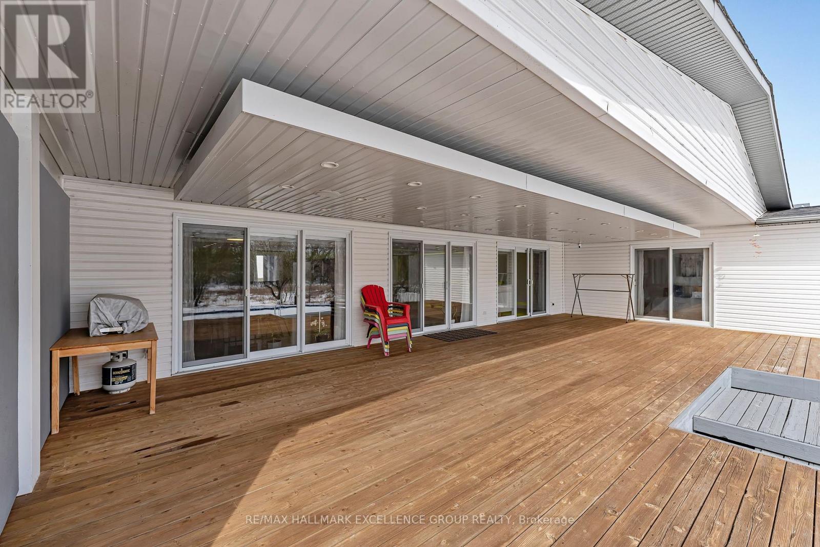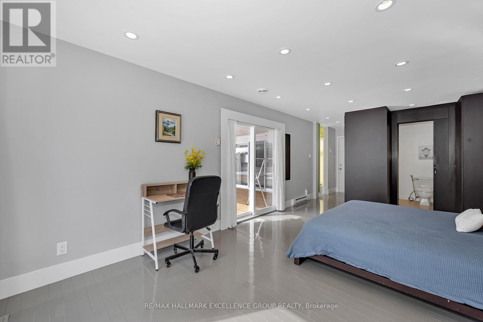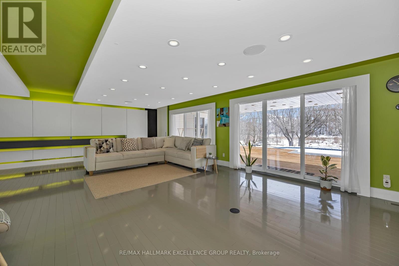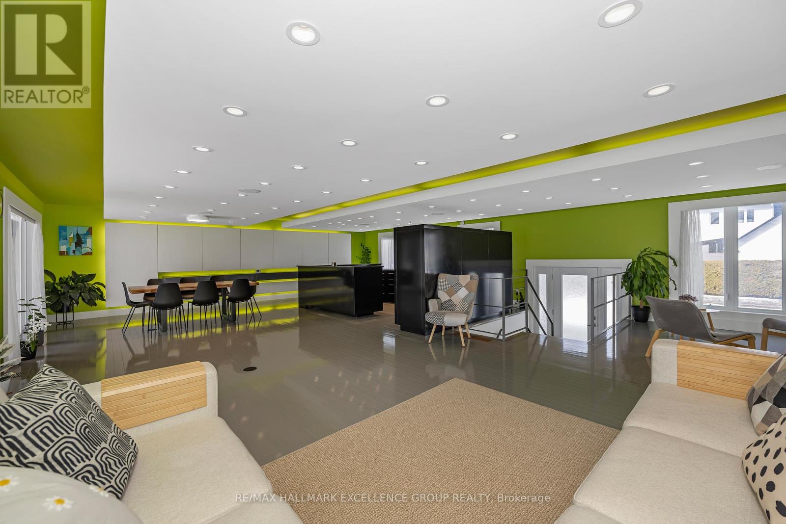 Beautifully private and custom renovated, this exceptional 4-bedroom, 2-bathroom raised bungalow is tucked into a quiet Rockland enclave where comfort, craftsmanship and lifestyle come together seamlessly. Meticulously maintained and thoughtfully redesigned, this stunning home offers timeless curb appeal, premium finishes and an inviting open-concept layout ideal for everyday living and entertaining.The main floor was completely reimagined and now showcases a spectacular Louis L'Artisan kitchen featuring granite counters, bar seating, custom cabinetry and commercial-grade stainless steel appliances. Chic designer hardwood flooring, dramatic tray ceilings and hidden ambient lighting built into walls and coffers elevate the space, while the expansive living and dining areas are filled with natural light from three 9' foot patio doors. The result is a bright, elegant and highly functional main level that flows beautifully outdoors.The spacious primary bedroom offers a peaceful retreat with ensuite bath and direct patio door access to the back deck. Downstairs, the finished lower level provides remarkable flexibility with 3 additional bedrooms, a generous rec room, a large combined laundry/4-pce bath, plus plenty of storage for busy family living.Step outside and discover an incredible backyard oasis designed for privacy and enjoyment. The massive partially covered deck is enhanced with built-in pot lights and surround sound, overlooking the above-ground pool, PVC fencing and beautifully landscaped grounds. With no rear neighbours and yard space long enjoyed beyond the fenced area, this is a true nature lover's dream in a central location. Built with quality and efficiency in mind, this home also features Low-E vinyl windows, central A/C, air exchanger and architectural shingles . Parking for 4 and walking distance to schools, shopping and amenities complete the package. 200 Amp service.Quick closing available but flexible. 24 hour irrevocable on all offers (id:64974)