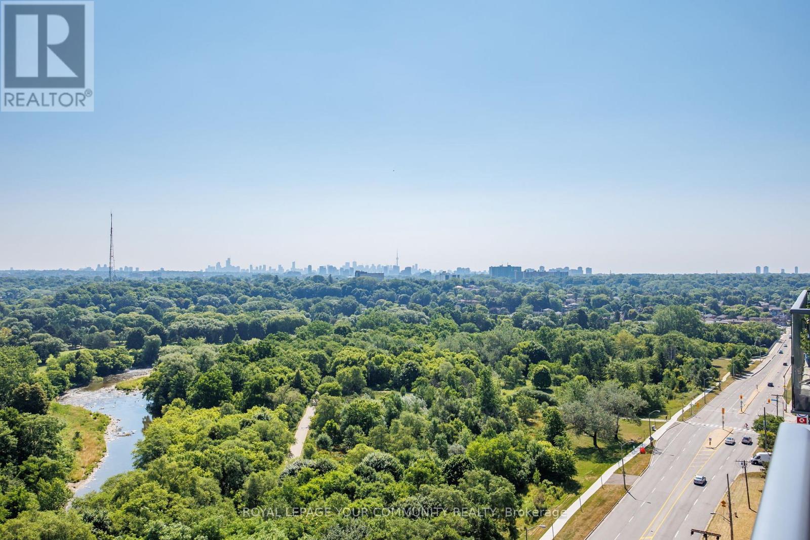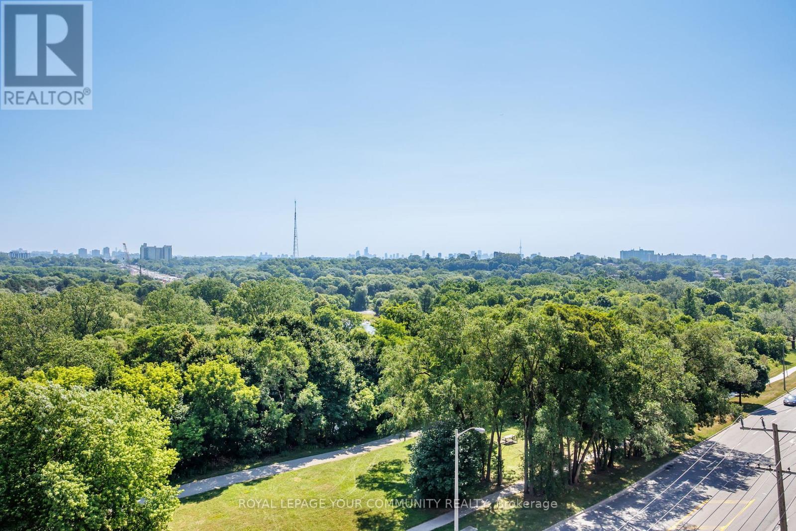 Welcome to Perspective Condominiums in the heart of Etobicoke. This 2 bedroom + Den Penthouse suite features 10ft ceilings with upgraded pot lights throughout. Open concept living, kitchen, and dining room gives you all the space to decorate to your hearts desire. Large balcony with gas line for BBQ hookup overlooking the Humber River and CN Tower. Primary bedroom includes a walk-in closet and ensuite bath. Rarely available 2 side by side Parking Spots adjacent to the elevator and 1 spacious storage locker. The building offers 24 hour security/concierge, an all year round indoor pool with steam rooms, 2 Party Rooms, Theater Room, Golf Simulator, Exercise Room, Pet Spa and 6th floor roof top terrace with BBQs. Guest suites are available year round for visiting family and friends. This location can't be beat. Walk to nearby James Gardens or Enjoy a bike/walk through the lush Humber River Trails. Easy access to the upcoming Eglinton LRT, TTC, HWY 427, HWY 400, and a short commute to downtown Toronto, Bloor West Village, and the Junction. Shops at ground level include a cafe, pharmacy, dental office, and optometrist for your convenience. (id:64974)