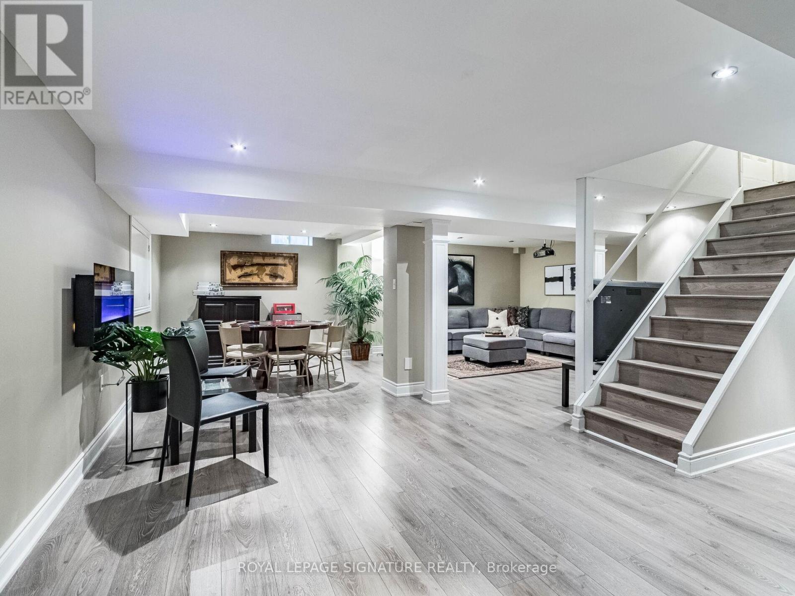 Welcome to one of the largest and most distinguished executive rentals in the area-offering over 3,786sq ft of luxurious living space across three above-ground levels & 1400 sq ft in the basement combined5000 plus sq ft of luxurious living space. Situated on a professionally landscaped 48.42' x 110' lot in one of Oakville's most sought-after neighborhoods, this 7-bedroom, 5-bathroom residence delivers exceptional comfort, privacy, and versatility for families and professionals alike.Step inside to a dramatic 25-ft high foyer that sets an impressive tone. The main floor features sleek porcelain tile, hardwood flooring, and an open-concept layout ideal for both everyday living and entertaining. The formal living room is filled with natural light from oversized windows, while the inviting family room showcases a stunning stone fireplace. The gourmet kitchen offers a large island,built-in appliances, and a bright breakfast area overlooking the backyard. A formal dining room with bay windows adds a refined touch to the space.The second floor features four generously sized bedrooms, including a luxurious primary suite complete with a private sitting area and a 5-piece ensuite. The third-floor loft is a standout highlight-featuring two additional bedrooms, a spacious living area, and a full 4-piece bathroom. It's perfect for extended family,teens, guests, or a dedicated work-from-home retreat.The professionally finished basement expands the living space with engineered hardwood flooring throughout, featuring a large recreational room, an additional bedroom, a full bathroom, a dedicated exercise/office area, and ample storage.Enjoy outdoor living on the oversized deck surrounded by mature, low-maintenance greenery providing year-round privacy. The home is ideally located just steps from scenic parks, trails, top-rated schools, andshopping, with quick access to major highways for a seamless commute. (id:64974)
