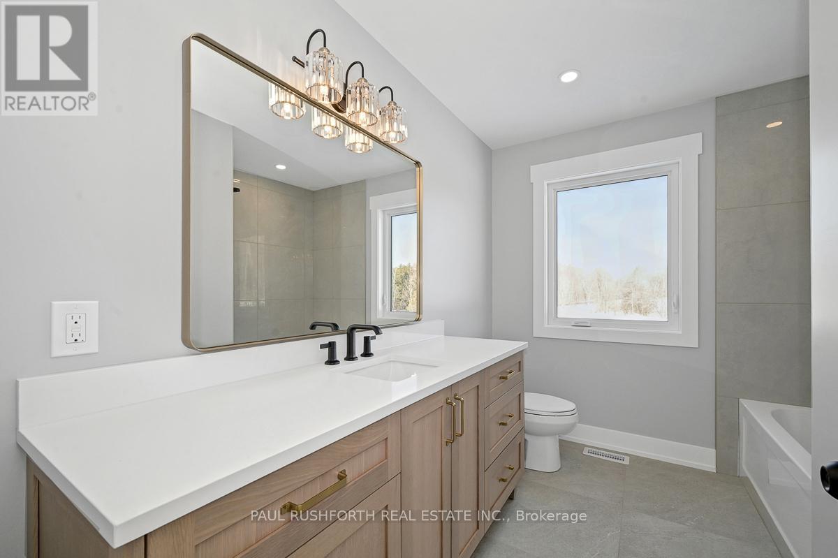 Prepare to fall in love. This is the kind of home that just feels good the moment you walk in - bright, open, and completely move-in ready, with all the confidence of a brand new build. The Mylestone by Countryside Developments sits on a beautiful 2.5 acre lot in Almonte, with open countryside views that immediately catch your eye. This FAB-u-LOUS three bedroom, two bathroom bungalow has a layout that truly works for everyday living. The main living area is filled with natural light thanks to large windows that frame the landscape beyond. The kitchen is the heart of the home and it shows. Quartz countertops, quality cabinetry, included appliances, and a generous island that's perfect for meal prep, morning coffee, or long chats with family and friends. It flows effortlessly into the dining area and great room, making the space feel connected whether you're hosting a crowd or enjoying a quiet evening in. An electric fireplace adds warmth and a cozy focal point. The primary suite is set apart with its own walk-in closet and private ensuite, offering a comfortable retreat at the end of the day. Two additional bedrooms give you flexibility for guests, kids, or a home office. The oversized mudroom and laundry area is a practical bonus you'll appreciate every single day. Built with an ICF foundation, composite board and batten siding, energy-efficient windows, and high-efficiency HVAC, this home is solid, efficient, and protected by TARION warranty. The oversized double garage and unspoiled basement with a bathroom rough-in give you room to grow and customize over time. Step out onto the covered porch, take in the trees and wide-open views, and imagine life here. Fresh, modern, low maintenance, and completely brand new. Some photos have been virtually staged. HST rebate to builder. (id:64974)