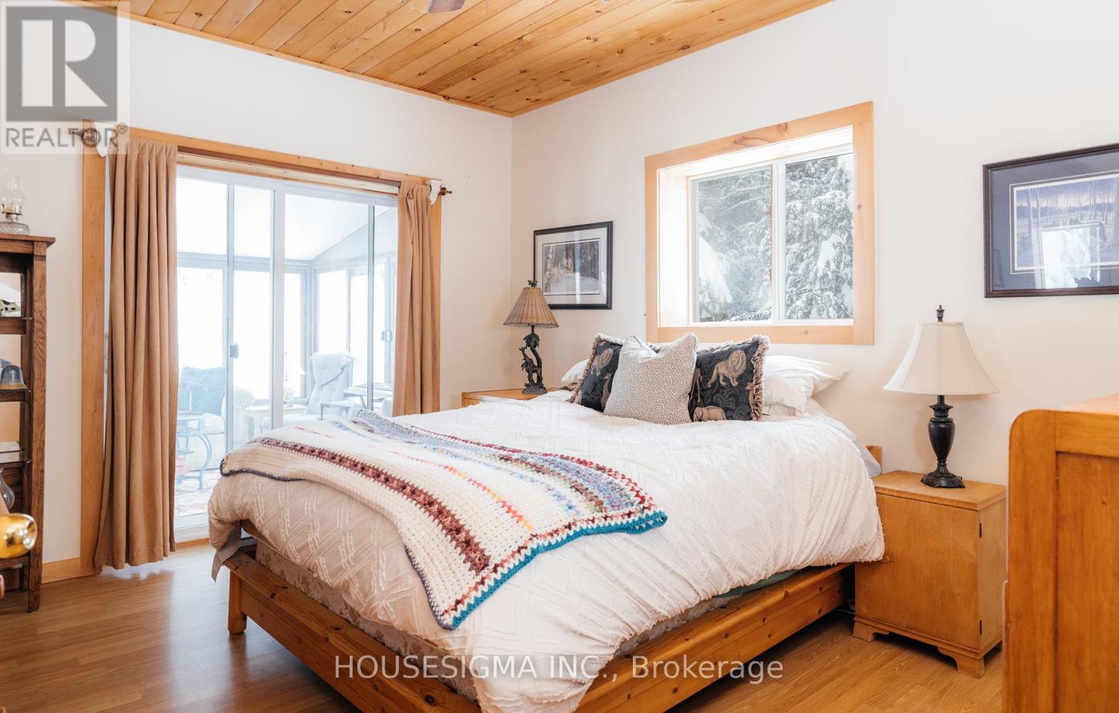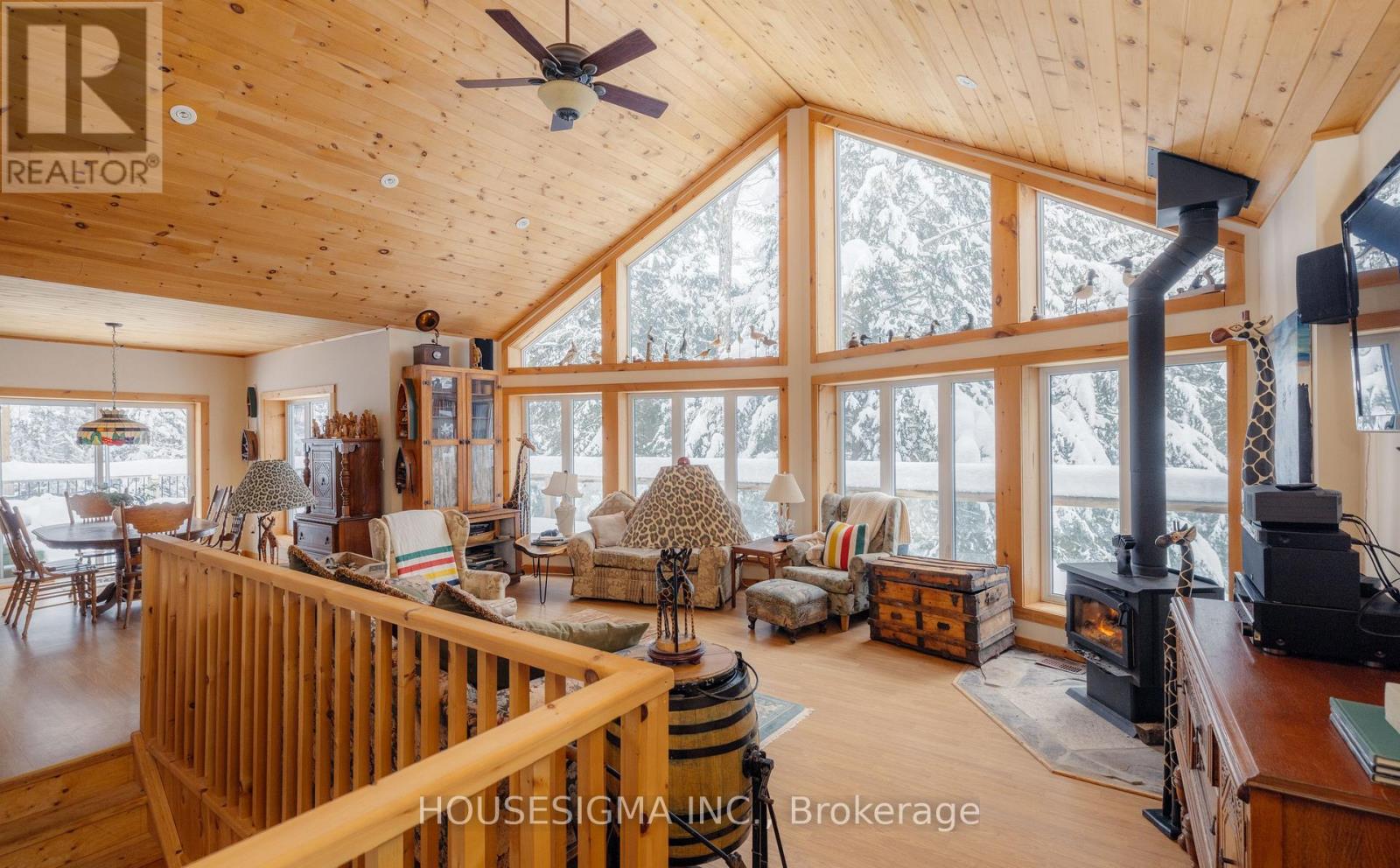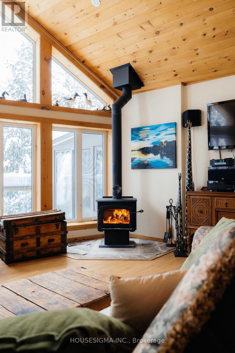 Discover the ultimate lakeside retreat on 3.24 acres , a custom-built, four-season chalet that seamlessly combines rustic charm with comfort. Situated on the pristine shores of Kennisis Lake, nestled at the end of Paddy's bay, w/ 174 feet of Shoreline - a dream destination for boating enthusiasts and snowmobilers alike. Built with ICF construction from the basement to the roof, this home is as energy-efficient as it is durable. Inside, soaring cathedral ceilings and expansive windows fill the open-concept living space with natural light and offer breathtaking views of the lake. Designed for year-round comfort, the lower level features radiant in-floor heating, ensuring warmth during the coldest months. In the summertime enjoy the peaceful tranquility of the bay, or venture out to Kennisis Lake where you can explore at your leisure, the 2nd largest Lake in Haliburton. Whether you're looking for a quiet retreat in front of the wood burning fire, or adventure, this cottage offers the best of both worlds. Outdoor enthusiasts will be captivated by this properties unbeatable location w/ the Haliburton ATV + Snowmobile trails at your doorstep. Known as Ontario's snowmobiling wonderland it offers over 400 km of well developed + carefully maintained snowmobile and winter ATV trails, and Haliburton Forest is considered to be one of the Top 10 snowmobiling destinations in North America. The detached, insulated, + drywalled 3-car garage is ideal for storing snowmobiles, ATVs, and summer toys. Heated capability ensures your gear is always ready to go.Summers are equally magical, with a massive U-shaped. his stunning chalet is more than a home it's a lifestyle. Don't miss your chance to experience the best of lakefront living. Wrap around deck was just redone last year which is great for hosting large gatherings, BBQ'ing and endless entertaining. Deck near the waters edge was also redone. Above the Garage can be converted to a loft, or use for extra storage. (id:64974)