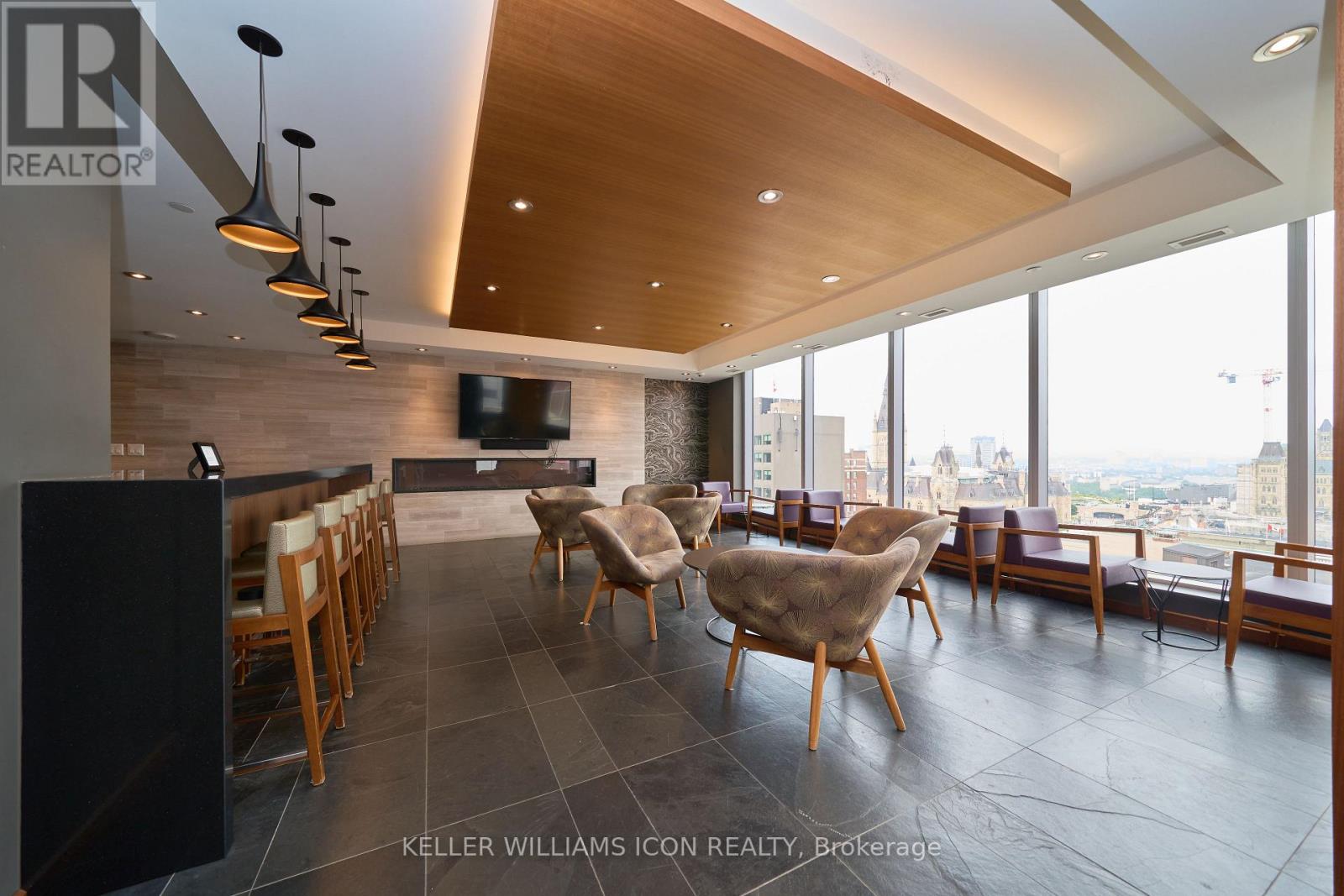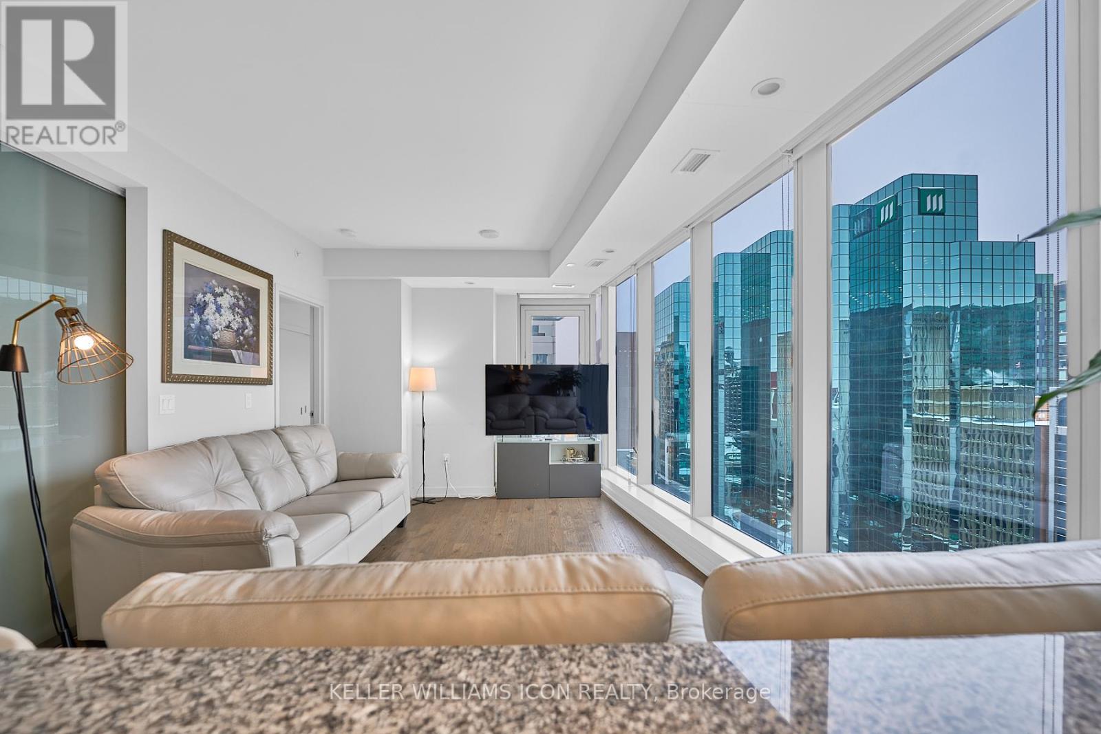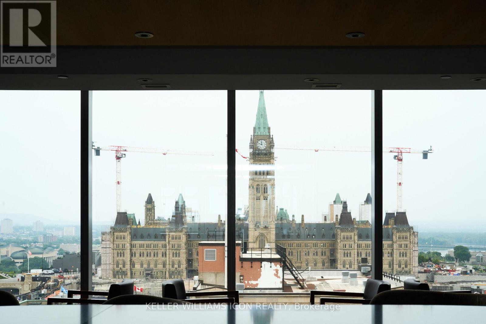 Welcome to 1209-101 Queen Street, where luxury living meets unmatched convenience in the heart of downtown Ottawa. This refined 2-bedroom, 2-bathroom residence features 9-foot ceilings, a bright open-concept layout, and floor-to-ceiling windows that flood the space with natural light. The contemporary kitchen showcases quartz countertops, a sleek breakfast bar, and premium finishes-perfect for both everyday living and entertaining. The unit also includes a private ensuite laundry room with an upgraded 2-in-1 washer and dryer for added comfort and efficiency. Just steps from your unit, the spectacular Sky Lounge offers breathtaking, unobstructed views of Parliament Hill, an extension of your own living room and an exceptional space to relax, host, or enjoy Ottawa's iconic skyline. Additional upscale amenities include a state-of-the-art fitness centre, sauna, 24/7 concierge service, theatre, and more! Ideally located in one of downtown's most desirable addresses, you're moments from fine dining, shopping, the LRT, and Parliament Hill, placing the very best of the city at your doorstep. (id:64974)