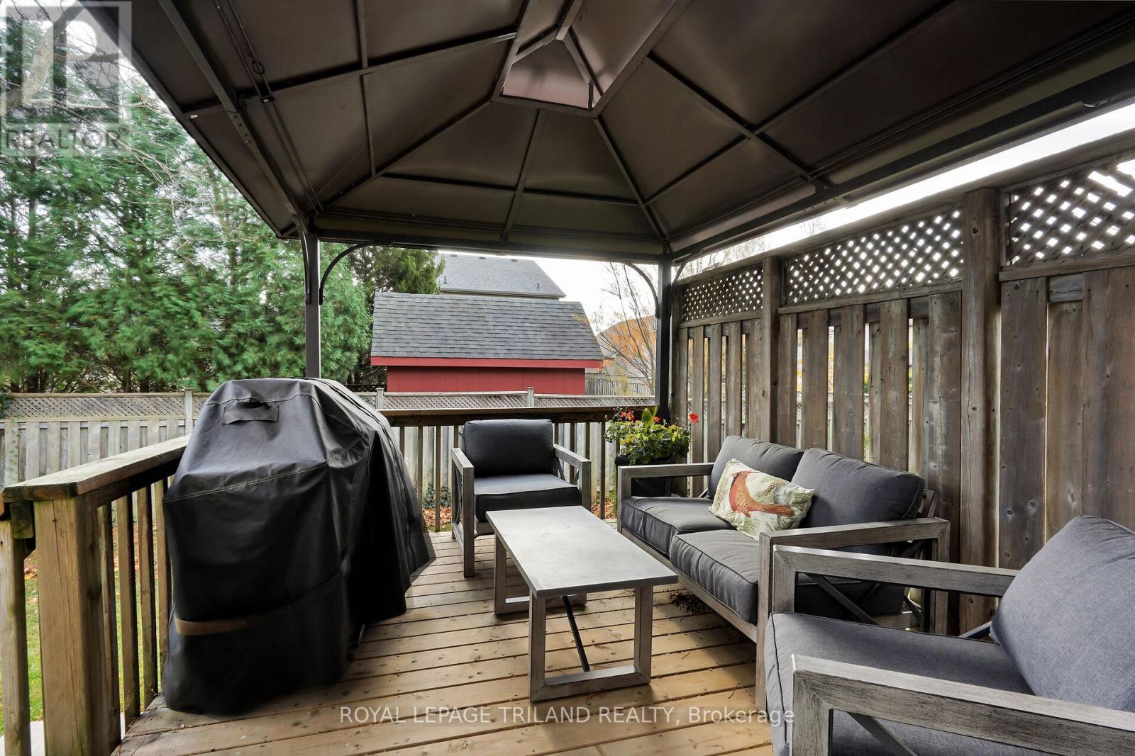 Welcome to 121-2025 Meadowgate Blvd, a charming end unit townhouse nestled within a desirable gated community. Boasting 2+1 well-appointed bedrooms and 2.5 modern bathrooms, this residence is perfect for anyone looking to embrace a more comfortable, downsized lifestyle without compromising on quality or space. Upon entering this exquisite home, you'll be surrounded by the warmth of natural light that beams across the open concept living and dining area, complete with rich hardwood flooring, a striking vaulted ceiling, and an inviting ambience. The living space seamlessly unfolds into the eat-in kitchen, where culinary enthusiasts will delight in the opportunity to create sumptuous meals before stepping out to the private deck, crowned with a delightful gazebo, ideal for savouring peaceful moments. Convenience is key, with main floor laundry facilities and a generous primary bedroom that features a serene ensuite and a spacious walk-in closet. The large finished lower level offers additional living space, including a comfortable bedroom, a full bathroom, a recreation room perfect for entertaining, and a gas fireplace that adds a touch of cozy elegance. This immaculate home also includes a single car garage with opener and inside entry. The clubhouse, a hub of social activity, provides a party room, meeting room, gym, library, and an indoor pool. Its deck overlooks a tranquil pond with a fountain, offering picturesque views and a sense of community. Located with easy access to the 401, parks, trails, shopping, and the hospital, this property presents a turn-key solution for those seeking a serene, maintenance-free lifestyle. Spotless and move-in ready, this townhouse awaits to be your new haven of comfort and elegance. (id:64974)
