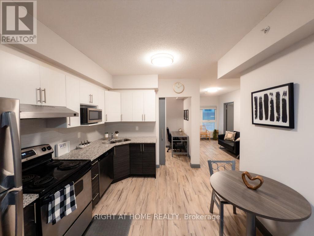 Fabulous Opportunity For Young Professionals, University Parents Or Investors. Furniture Included! Bright Ne Corner 1-Bed Unit (541 Sq Ft) On 2nd Flr. 9 Feet Ceiling. Meticulously Maintained. Granite C/T & Laminate Flooring. Open Concept Kitchen & Living Area, Private In-Suite Laundry. Maintenance fees include internet, water, and gas. Prime Location In Waterloo, Walking Distance From Both Wilfred Laurier And Waterloo Universities. Close To Transit And Hwy. This is a fantastic opportunity to live in one of Waterloo's most desirable and walkable neighborhoods! All existing furniture & High Speed Internet Included! Just Ready For Moving In! (id:64974)