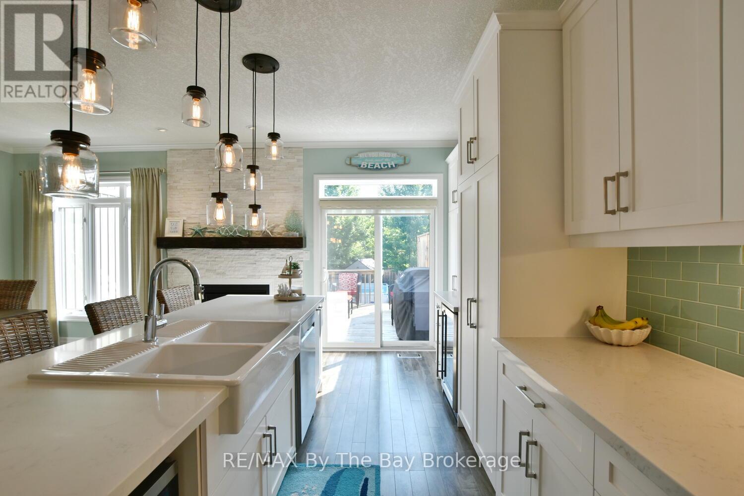 Beautifully Decorated Freehold Townhome Just Steps to the Beach! This exceptionally well-maintained and stylish freehold townhouse is just a five-minute walk to the sandy shores of Wasaga Beach! Located in the desirable west end, you're also close to shopping, skiing, the casino, and the soon-to-be-built Costco offering the perfect mix of lifestyle and convenience. Inside, the home is tastefully decorated with a fresh, beachy vibe that feels both relaxed and inviting. The main level features soaring 9 ceilings and a spacious foyer that welcomes you in. The high-end eat-in kitchen boasts upgraded cabinetry, stainless steel appliances, garburator, a stylish backsplash, and an impressive 10-foot island perfect for casual meals or entertaining. The open living space includes a cozy gas fireplace and walks out to a large deck (gas BBQ line) overlooking the fully fenced backyard with a storage shed and above-ground pool (which can stay or be removed).Upstairs, you will find three generous bedrooms, including a spacious primary suite with an electric fireplace, remote blinds, walk-in closet with custom organizer, and a spa-inspired ensuite with double sinks, quartz counters, and a large glass shower with rain head. The finished basement adds even more space with a bright rec room (featuring a large egress window), electric fireplace, and a sleek 3-piece bathroom with glass shower. Additional highlights include main floor laundry and a single-car garage with inside entry. This home shows beautifully and is move-in ready a clean, thoughtfully decorated retreat just minutes from the beach! (id:64974)