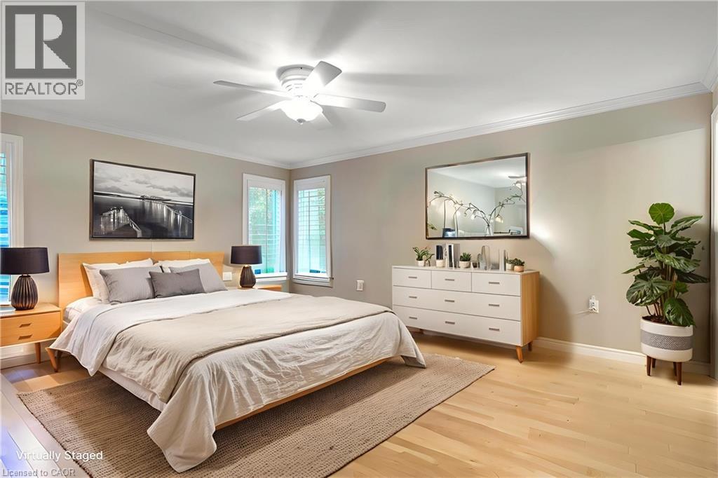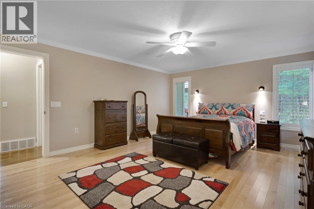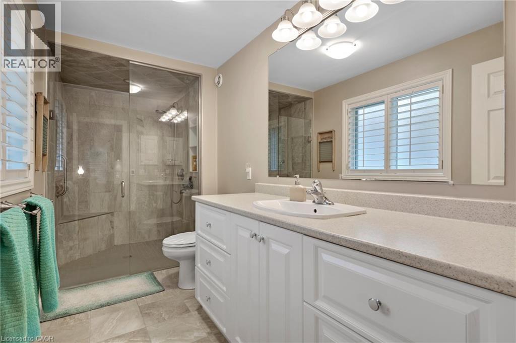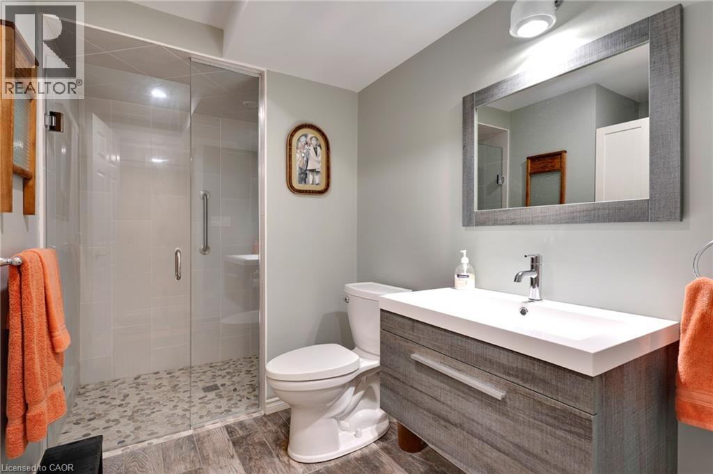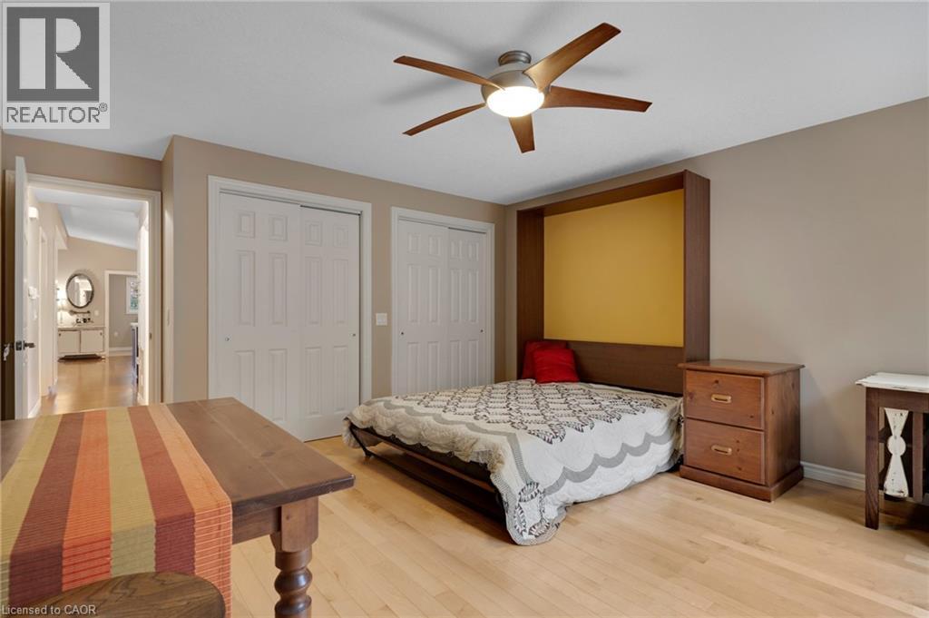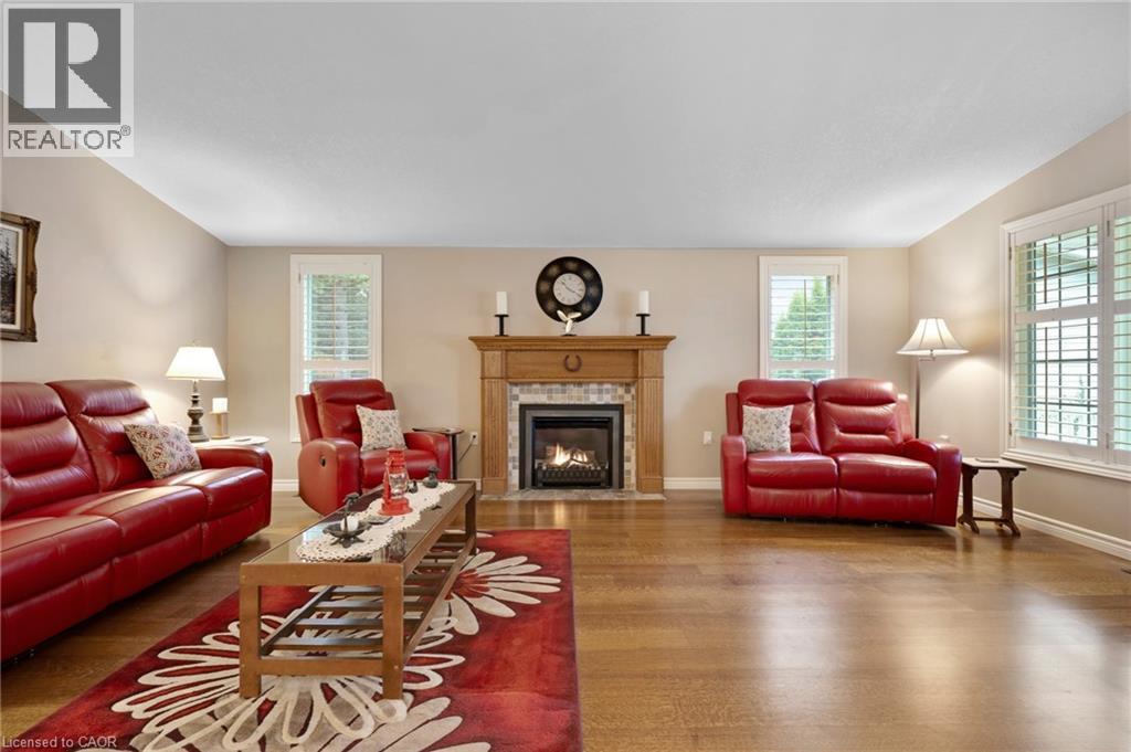 Elevated Adult Living Awaits! Discover what the popular adult lifestyle community of Antrim Glen has to offer. Situated in a tranquil rural setting, yet a scenic 15-minute drive to the conveniences of Cambridge or Waterdown, this location truly offers the best of both worlds. This well maintained custom home checks every box: a double-car garage, a fully finished basement, and a serene, unobstructed view of nature with no rear neighbours. Step inside to an inviting open-concept layout featuring vaulted ceilings & quality hardwood floors in the generous 1,670 Sq. Ft. main level. The heart of the home is the stylish, custom kitchen, which anchors the large living room & dining room plus provides an effortless flow into the bright, east-facing sunroom. Directly off the sunroom, a large private patio offers the ideal spot for morning coffee or evening entertaining, surrounded by the tranquility of the natural woodlot. The generous primary suite is designed as a true retreat, complete with a spacious walk-in closet and an updated luxury ensuite featuring a walk-in glass shower. The second bedroom is strategically positioned with access to a private deck overlooking nature. The trundle bed allows flexibility; guest suite or quiet home office. Spacious comfort is assured with an additional 1,040 Sq. Ft. of finished living space downstairs. The lower level offers incredible versatility, featuring a large family room for secondary entertaining, a dedicated games room, a three-piece bathroom, and an additional third bedroom, plus a dedicated workshop. As a resident of Antrim Glen, you gain access to an array of exceptional amenities designed to foster a lively & engaging social environment. Monthly land lease fees of $1,225.86 include property taxes and full access to facilities. Enjoy the community centre, the heated saltwater pool, & various organized activities where neighbours easily become friends. Schedule your private tour today! (id:64974)