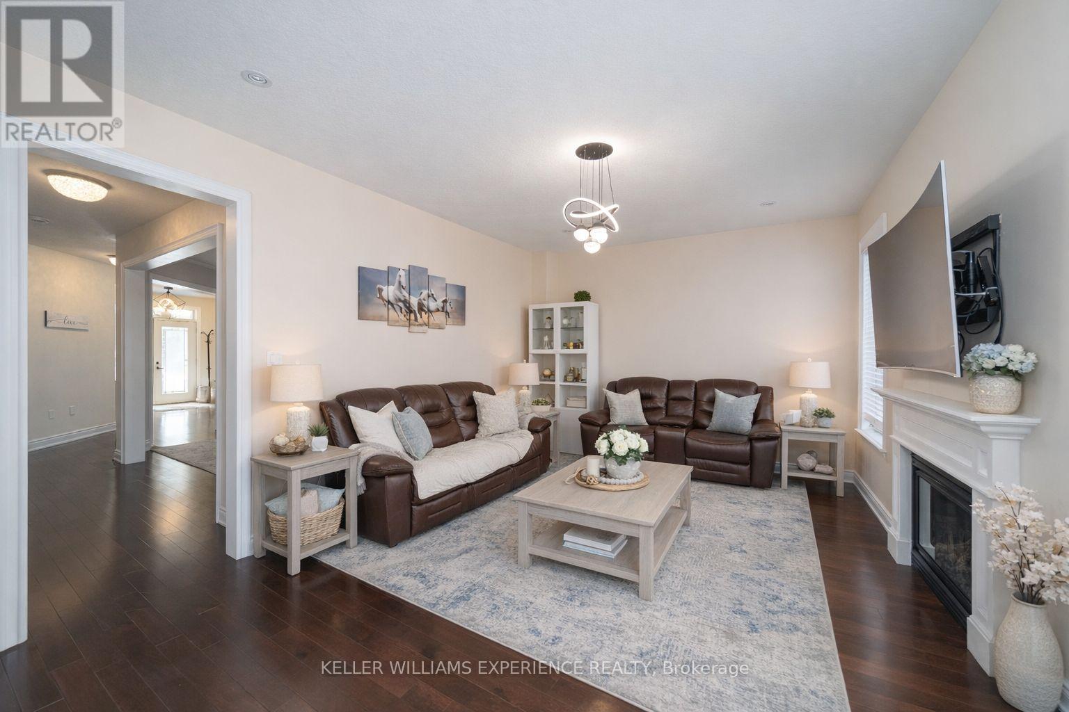 *** OPEN HOUSE SATURDAY MARCH 14 1-3PM. Fabulous fully finished 2-storey all-brick home with a triple-car garage set on an impressive 60' wide lot. This beautifully maintained 5 Bedroom and 5 Bathroom home features pristine hardwood floors throughout and a stunning hardwood staircase, showcasing pride of ownership from top to bottom. Designed for family living, the spacious eat-in kitchen offers a large island and overlooks the open-concept family room complete with a cozy gas fireplace. The fully finished lower level features enlarged egress windows, a wet bar with extensive cabinetry, a large recreation room, an additional bedroom, and a 4-piece bathroom-perfect for guests or extended family. Ideally located in a fantastic family-friendly community close to parks, schools, and shopping, with convenient commuter access to Base Borden and Highway 400. Approximately 3,415 finished sq. ft. (id:64974)