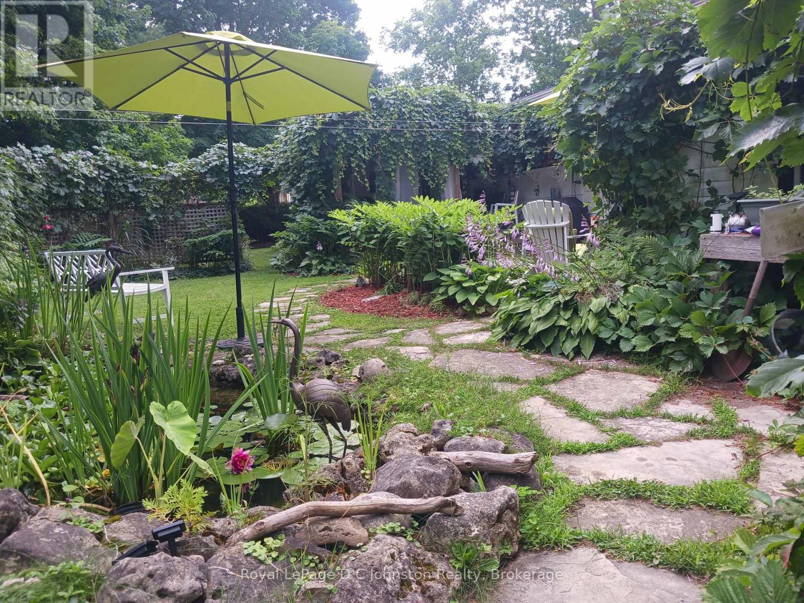 This lovely two-bedroom bungalow sits on an oversized 104-foot-wide lot in a quiet, desirable area of Southampton. The home has been freshly updated and features forced-air natural gas heating and copper plumbing throughout. A bright walkout leads to a spacious, fully enclosed sun porch, perfect for relaxing and enjoying the outdoors. The backyard is beautifully landscaped with mature trees, lush bushes, perennial gardens, and a charming koi pond, creating a peaceful retreat. A garden shed provides convenient storage for tools and equipment, while a fully insulated backyard studio or bunkie with power offers additional versatile space. The home also includes an attached garage with direct entry into the house, and a double-wide concrete driveway with parking for up to four vehicles. This home is vacant and move in ready! (id:64974)