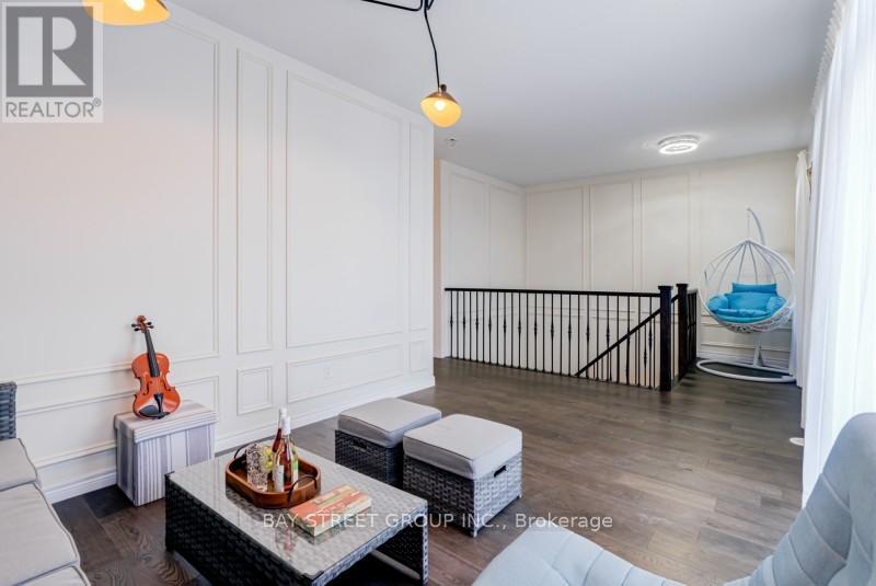 Welcome to this Luxury 3,492 sq.ft. ARISTA Baywood Model in prestigious Boxgrove Village. The ground level also includes an attached 2-car garage plus a driveway for 4 additional cars, providing parking for up to 6 vehicles. The main floor showcases an expansive open-concept great room with rich hardwood flooring, elegant wall trims, and a striking staircase with wrought-iron pickets. The upgraded chef's kitchen features granite countertops, stainless steel appliances, mosaic backsplash, a large island, and a stylish breakfast area. This level also includes 2 full bedrooms, laundry room, and a walkout to a balcony features motorized retractable screens that keep out mosquitoes and snow, allowing you to enjoy fresh air year-round while maintaining complete privacy (you can see out, but others can't see in). The upper level includes a bright media loft with a designer wood-accent wall, two generous bedrooms. The primary suite offers a custom geometric feature wall, a walk-in closet, and a luxury 5 piece ensuite with double vanities, glass shower, and deep soaker tub. A standout highlight is the expansive third-floor rooftop terrace, providing private outdoor living ideal for entertaining, dining, gardening, children's play, or creating a custom rooftop lounge. A large outdoor storage shed is included. This property follows layout: Ground Floor: 2-car garage (plus 4-car driveway); Main Floor : Great room, kitchen, breakfast, bedroom, study/office, laundry, balcony; Upper Floor - Media loft, 2 large bedrooms, 2 full baths (incl. primary ensuite) and Oversized private terrace with storage shed. (rent $4800 included Furniture; $4500 not included Furniture) (id:64974)