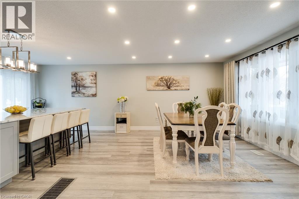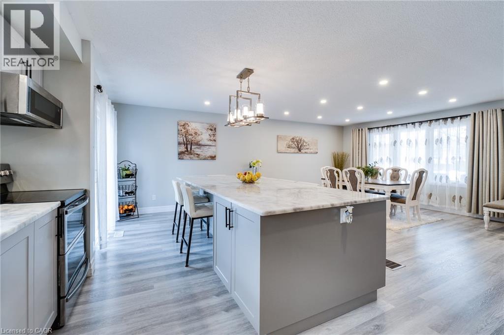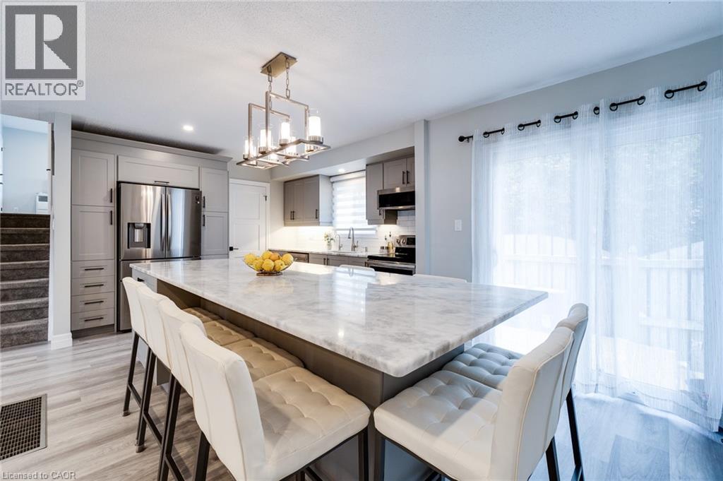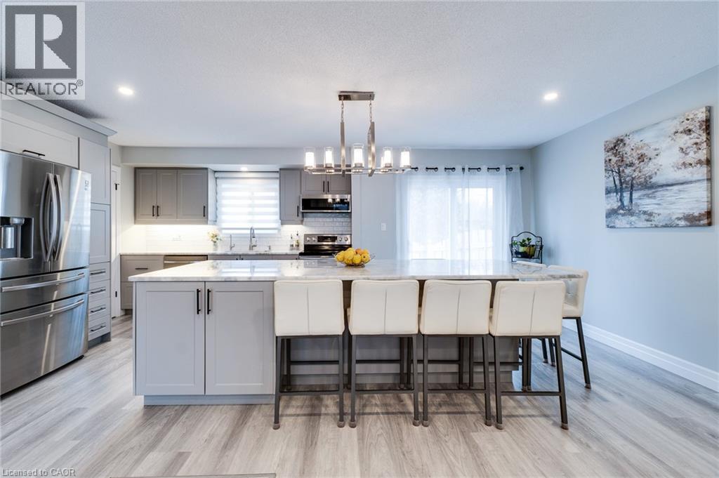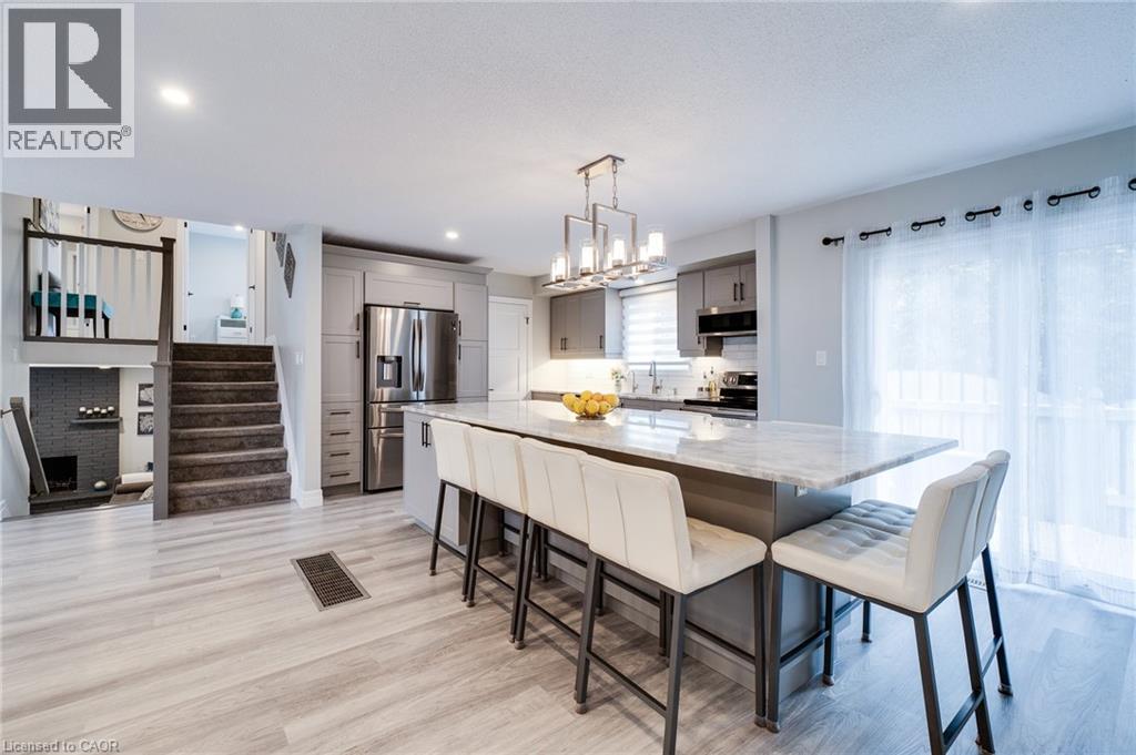 Attention empty nesters and first-time buyers! Ideally located just minutes from Hwy 401 and close to schools, shopping, library, parks, and places of worship, this property combines comfort with convenience. The main level has been renovated into a generous open-concept space that includes the foyer, dining room/living room, and kitchen. The kitchen is truly the centerpiece of the home, featuring an impressive island with seating for eight, elegant granite countertops, and stylish cabinetry. The second level features three generously sized bedrooms and a well-appointed 4-piece bathroom, providing comfortable accommodations for family members or guests. Each bedroom offers ample space and creates a bright and welcoming atmosphere throughout the level. The lower level features a comfortable living room with a fireplace feature wall, a fourth bedroom currently used as an office, a 2-piece bathroom, and a laundry area. Large windows provide plenty of natural light, keeping the space bright and inviting. The finished basement offers additional living space, including a recreation room, a 4-piece bathroom, a mechanical room, and a cold room. It also provides access to an oversized crawlspace for storage, approximately the same size as the lower level. The home features durable and stylish LVP flooring throughout. All windows, doors (including the front door), trim, and hardware throughout the home were replaced in 2021. Major electrical upgrades were completed in 2021, including copper wiring, a new breaker panel, and the installation of over 60 pot lights throughout the home. A full top-to-bottom renovation was completed in 2021, offering a fresh, modern feel throughout the entire home. The long driveway can accommodate three cars. This home showcases quality workmanship throughout. View the attached 3D virtual tour and explore the 50 photos. Don’t miss this fantastic opportunity. (id:64974)