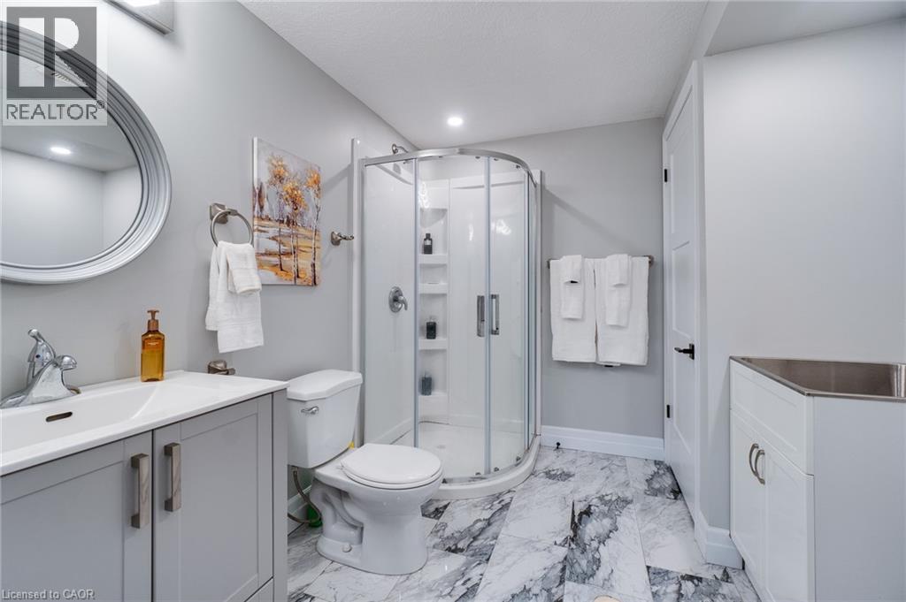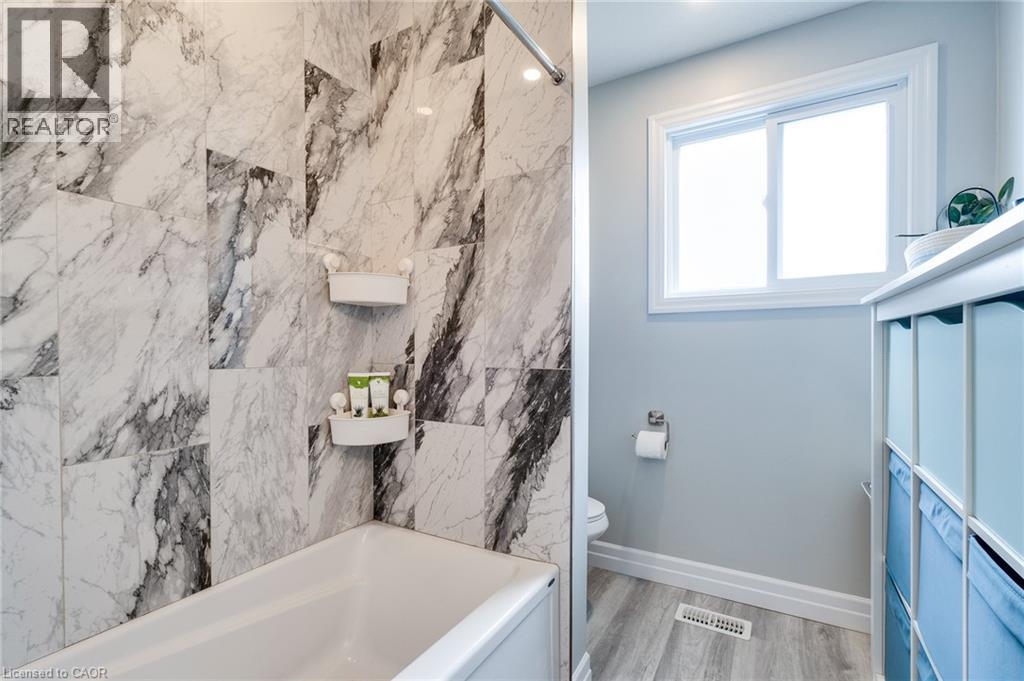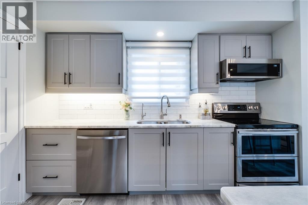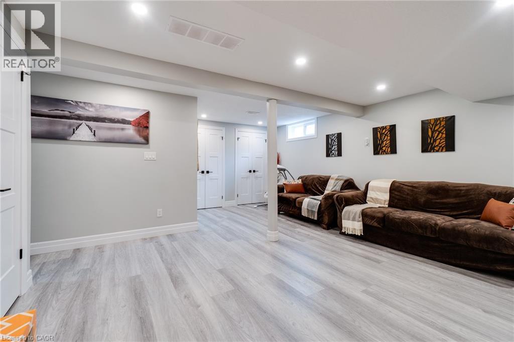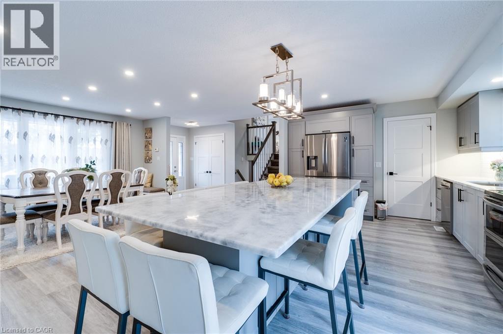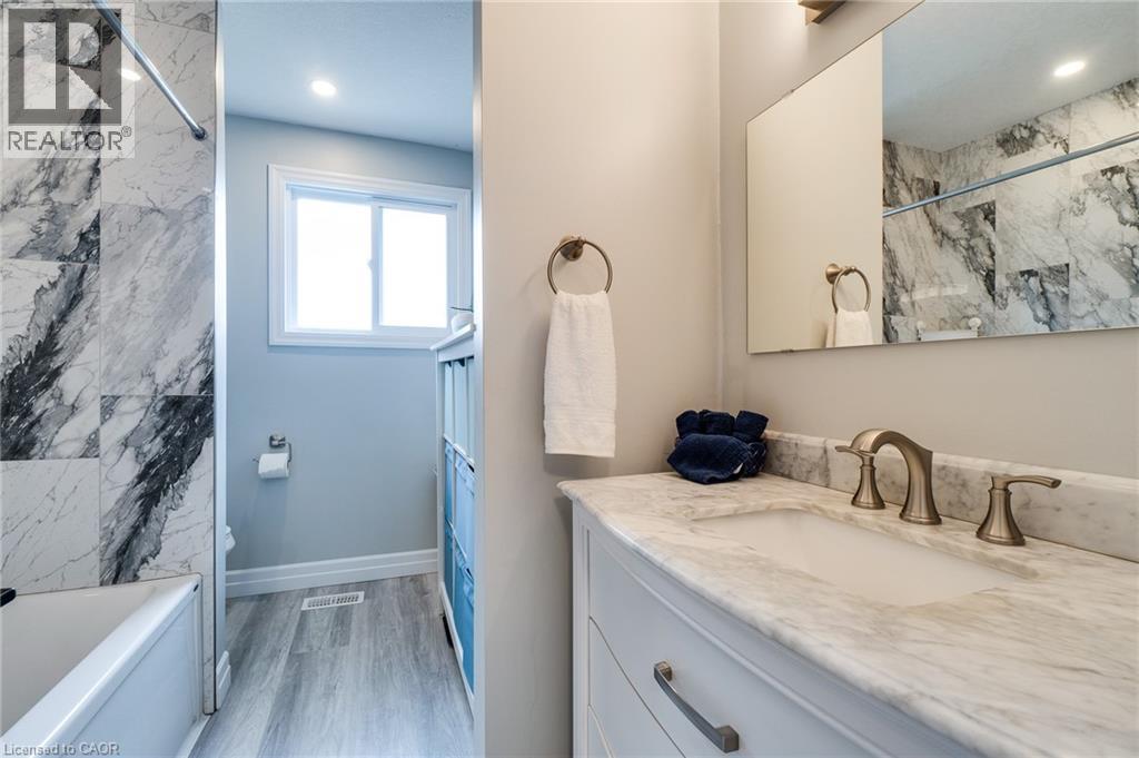 Attention empty nesters and first-time buyers! Ideally located just minutes from Hwy 401 and close to schools, shopping, library, parks, and places of worship, this property combines comfort with convenience. The main level has been renovated into a generous open-concept space that includes the foyer, dining room/living room, and kitchen. The kitchen is truly the centerpiece of the home, featuring an impressive island with seating for eight, elegant granite countertops, and stylish cabinetry. The second level features three generously sized bedrooms and a well-appointed 4-piece bathroom, providing comfortable accommodations for family members or guests. Each bedroom offers ample space and creates a bright and welcoming atmosphere throughout the level. The lower level features a comfortable living room with a fireplace feature wall, a fourth bedroom currently used as an office, a 2-piece bathroom, and a laundry area. Large windows provide plenty of natural light, keeping the space bright and inviting. The finished basement offers additional living space, including a recreation room, a 4-piece bathroom, a mechanical room, and a cold room. It also provides access to an oversized crawlspace for storage, approximately the same size as the lower level. The home features durable and stylish LVP flooring throughout. All windows, doors (including the front door), trim, and hardware throughout the home were replaced in 2021. Major electrical upgrades were completed in 2021, including copper wiring, a new breaker panel, and the installation of over 60 pot lights throughout the home. A full top-to-bottom renovation was completed in 2021, offering a fresh, modern feel throughout the entire home. The long driveway can accommodate three cars. This home showcases quality workmanship throughout. View the attached 3D virtual tour and explore the 50 photos. Don’t miss this fantastic opportunity. (id:64974)