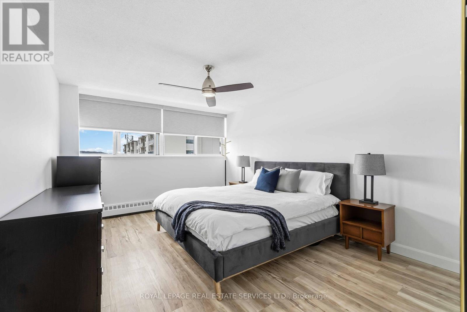 Whether you're entering the Niagara housing market, searching for a low-maintenance investment, or ready to simplify your lifestyle, this beautifully updated condominium is an opportunity you won't want to miss. Offering approximately 720 sq. ft. of bright, thoughtfully designed living space, this spacious one-bedroom, one-bathroom suite is located in the impeccably maintained Glencourt Place building, just minutes from schools, shopping, places of worship, highways, public transit, and Niagara's vibrant downtown core. Move-in ready and tastefully refreshed, the entire unit has been freshly painted in Chantilly Lace, including the ceilings, creating a clean, modern aesthetic throughout. In 2025, brand new interior and closet doors were installed, complemented by new baseboards and professionally installed commercial-grade vinyl flooring. The kitchen was fully renovated in 2023 with stainless steel appliances (only a few years old), while the bathroom was completely redesigned in 2025, offering stylish, contemporary finishes. The bedroom features a custom closet organization system (2025), along with blackout rolling shades installed in 2024. Matching rolling shades were also added to the main living area in 2024 for a cohesive look and enhanced comfort. Additional highlights include exclusive use of a lower-level storage locker-perfect for seasonal items-and access to the building's spacious, meticulously maintained laundry facilities. Parking is available at a low monthly cost: $20 for outdoor parking and $25 for underground parking (the unit is currently renting two underground spots). Residents also enjoy access to a refreshing outdoor in-ground pool, ideal for relaxing on warm summer days. An exceptional blend of value, location, and turnkey convenience, this is easy condo living at its best. (id:64974)