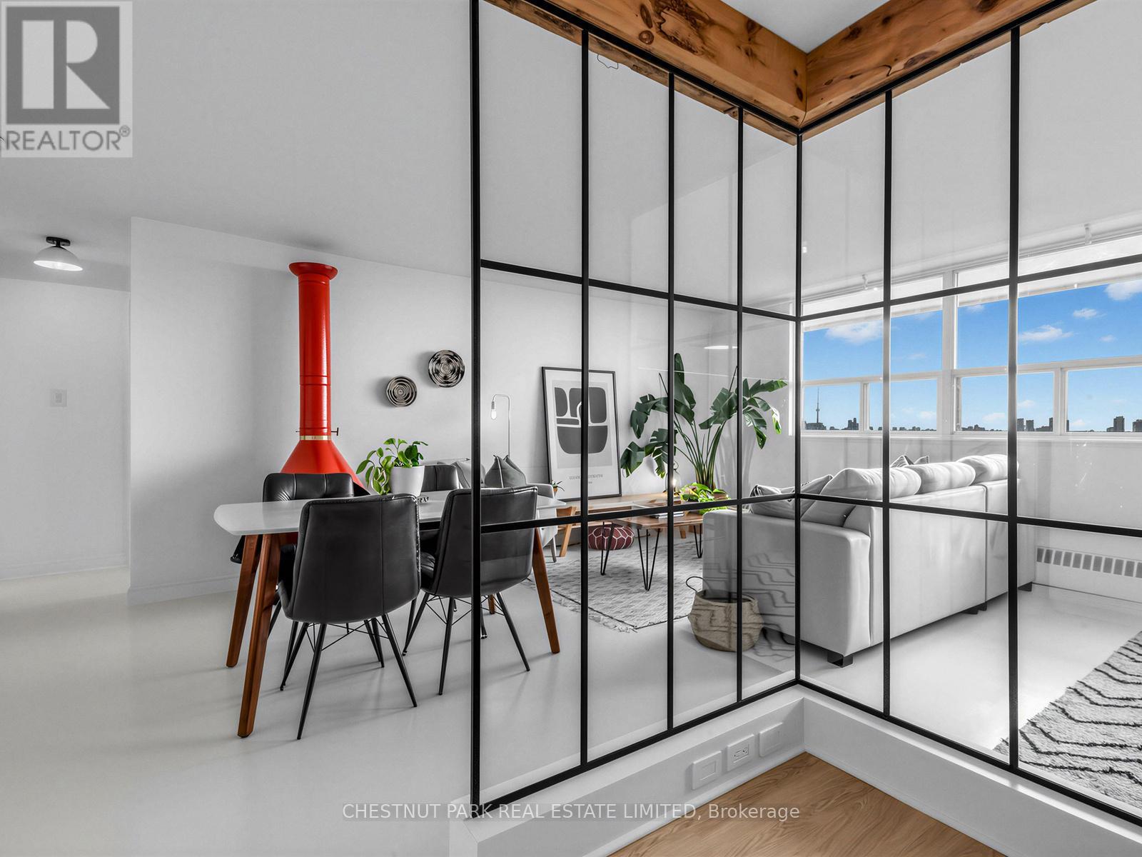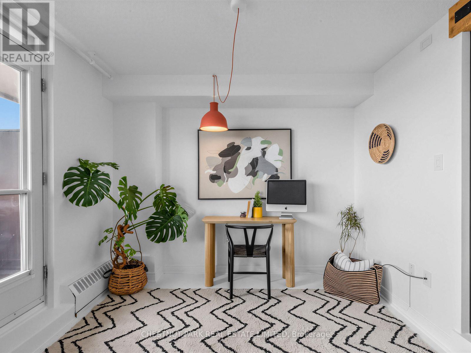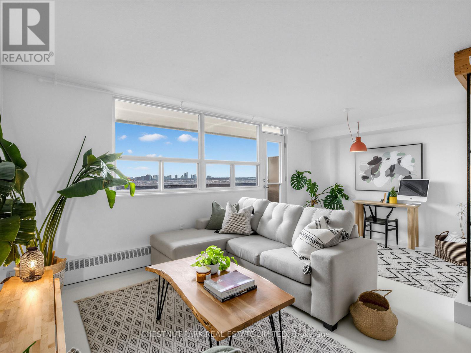 A compelling opportunity to secure real value in a rapidly improving pocket - ideal for first-time buyers or downsizers ready for a turnkey move without compromise. Priced just over $660 per square foot and paired with all-inclusive maintenance fees (including cable & internet), ownership here feels approachable and easy to manage with no added monthly costs to consider. Located less than a 2-min walk to the new Caledonia station on the Eglinton LRT, this suite offers seamless access across the city and a significantly improved commute into the downtown core. A Scandinavian-inspired interior sets the tone for this bright, south-facing suite, with unobstructed views over Haverson Park and the city skyline. A large balcony extends the living space outdoors - an inviting place to start the day with coffee or unwind in the evening as the light shifts over the park. Inside, the layout moves seamlessly between living, dining and kitchen - comfortable for daily life, yet equally suited to entertaining. The kitchen, framed by leaded glass, has been updated with new flooring (2025) and a new oven (2026). The bedroom is expansive in size with a double closet, and the bathroom has been completely re-imagined in 2025 with a refined, upscale finish. There is ample storage throughout the unit, further complemented by an additional storage locker. A thoughtful, tastefully finished space in a location on the rise - offering lasting value with room to settle in and grow into. (id:64974)