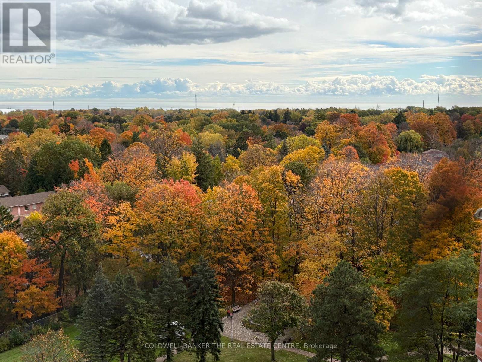 This is an exceptionally well-managed Condo. Come and see this spectacular southeast-facing condo featuring a tree-lined view with a distant view of Lake Ontario. This spacious 965 sq. ft. open-concept unit offers 2 bedrooms and 2 bathrooms, including one designed for accessibility with a jetted walk-in tub, handheld spray, and built-in seat, ideal for those with mobility needs. The primary bedroom features a 4-piece en suite bathroom and generous closet space. Enjoy the recently updated kitchen with ample cabinetry, tile and hardwood floors throughout this bright and open unit. The unit also includes a spacious en suite laundry area with additional storage. Walk out to a large balcony overlooking the green space and tennis courts, take in the peaceful surroundings and distant lake view! Ideal location for senior living! Building amenities include 24-hour concierge, a summertime outdoor swimming pool, communal BBQ area, his and hers fitness centres, sauna and shower, party room, library, scenic walking trails, and multiple outdoor spaces perfect for those who enjoy nature. Conveniently located to TTC, groceries, banks, restaurants and more. (id:64974)