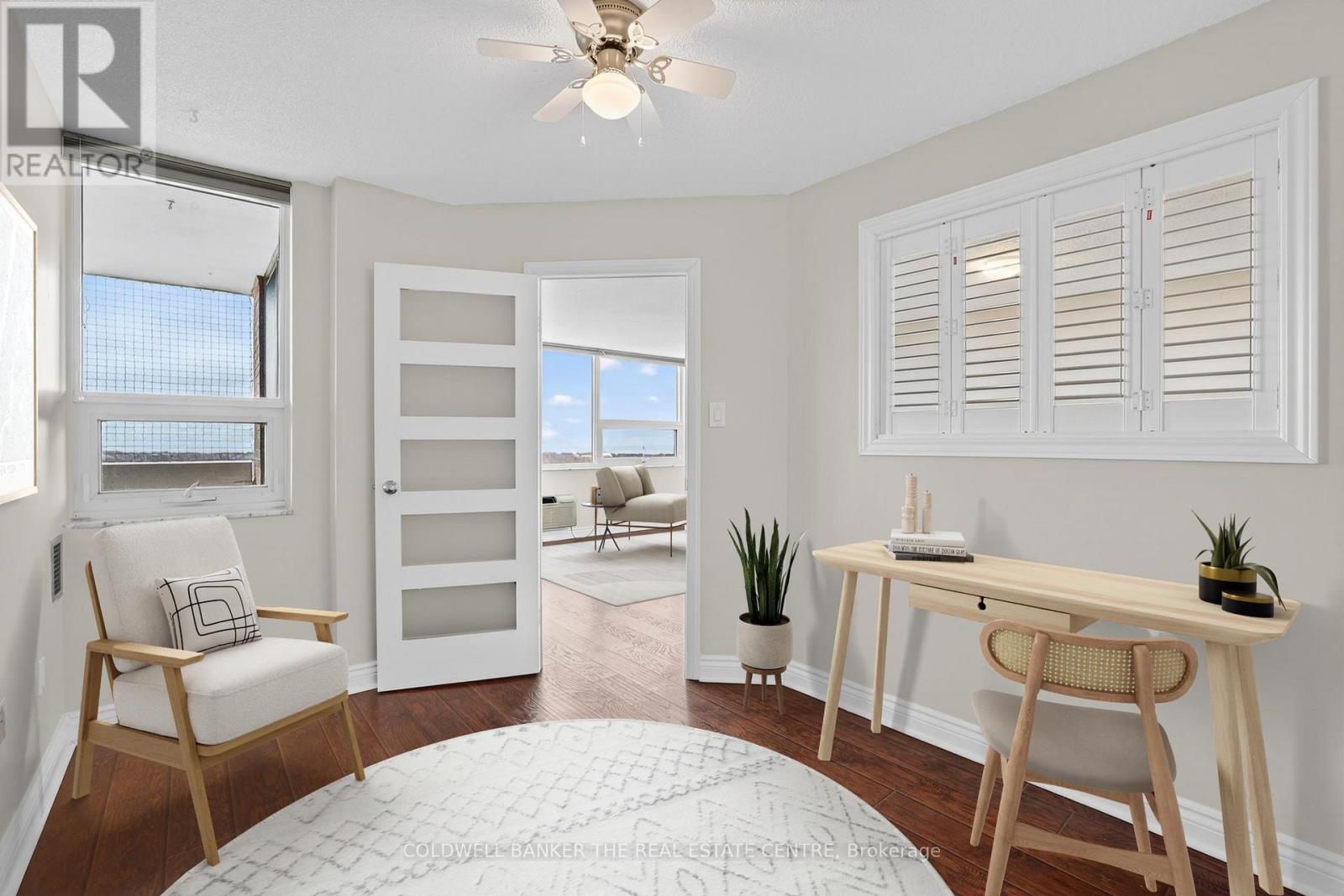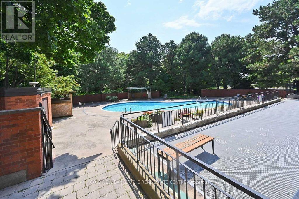 Welcome to this beautifully maintained 1+1 bedroom, 2-bathroom condo. Its eastern-facing views fill the unit with bright morning sunlight, creating a warm and inviting atmosphere to start your day. The spacious living and dining area features an open-concept layout, providing a bright and airy space ideal for both relaxation and entertaining. Hardwood flooring throughout the unit offers durability, easy maintenance, and a clean, modern aesthetic. The updated, stylish and practical kitchen offers ample cabinetry and storage space, making it a perfect area for meal prep and cooking. The spacious primary bedroom includes a convenient ensuite bathroom for added privacy, while the den offers a flexible space that can be used as a home office, guest room, or cozy retreat. Step outside onto the large balcony to unwind and take in the serene views of the surrounding greenspace and tennis courts; it's a peaceful spot to enjoy nature. Building amenities include a summertime outdoor swimming pool, communal BBQ area, scenic walking trails, and multiple outdoor spaces, perfect for nature enthusiasts. With its perfect blend of comfort, natural light, and convenience, this condo is truly a place you can call home. This building is well managed and well maintained. Extras: Conveniently located near TTC, grocery stores, restaurants, and cafes, this condo is also close to the Toronto Public Library and Heron Park Community Centre, offering year-round recreational activities such as skating and swimming. (id:64974)