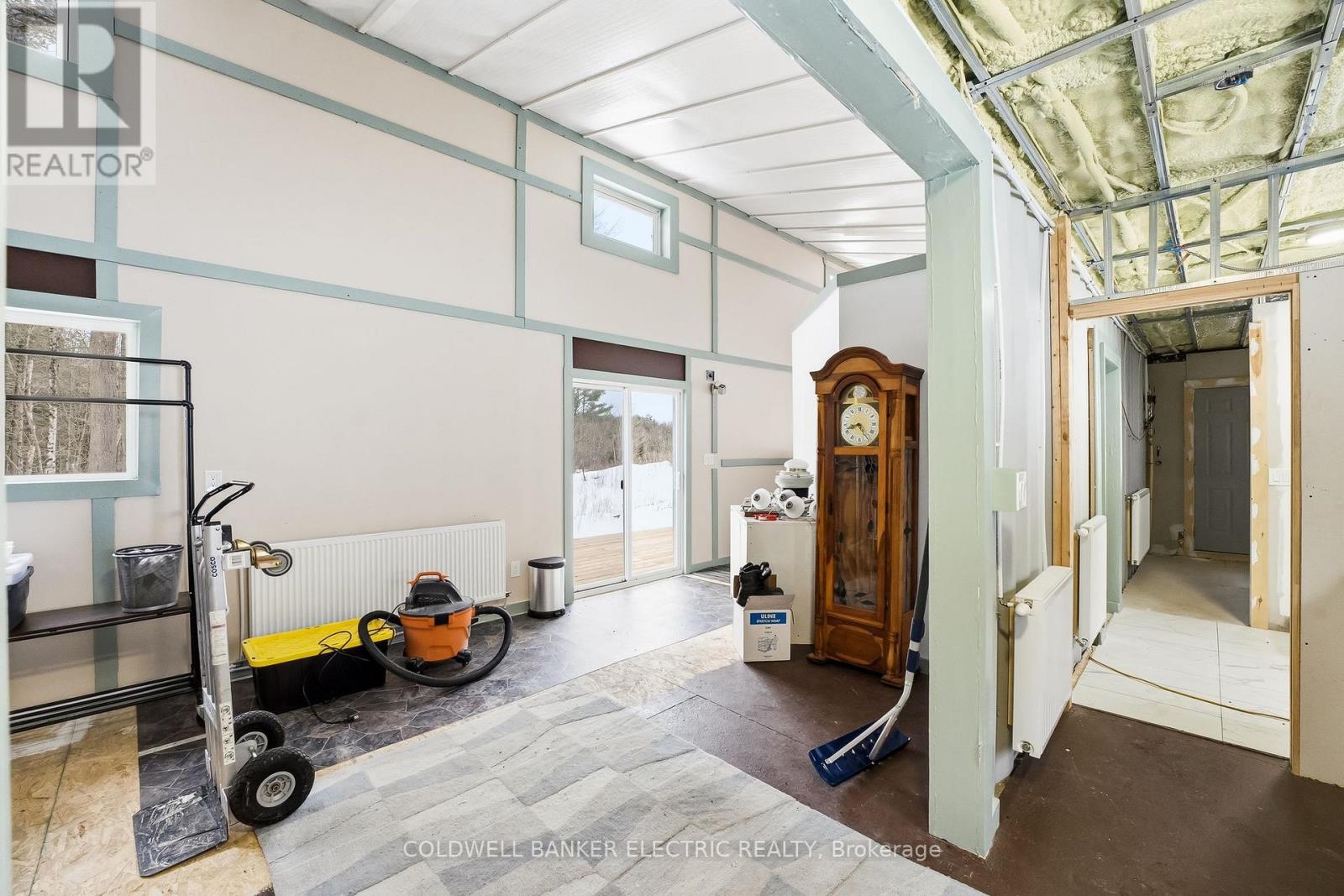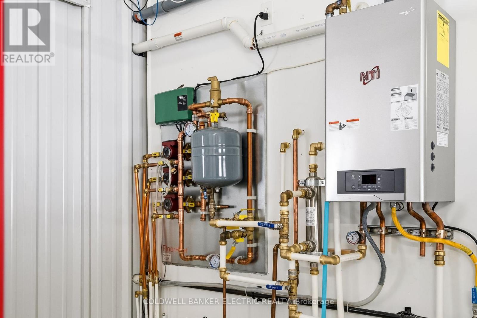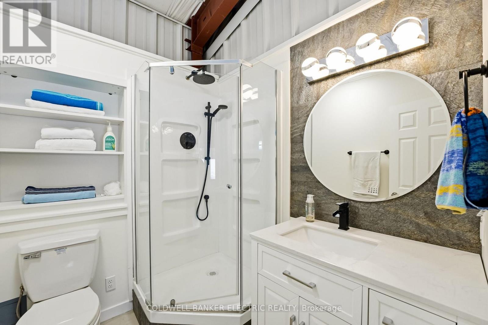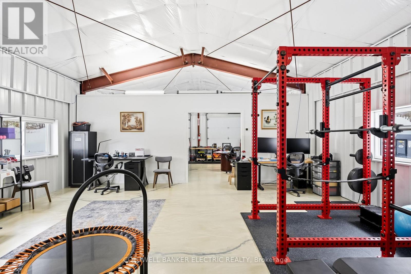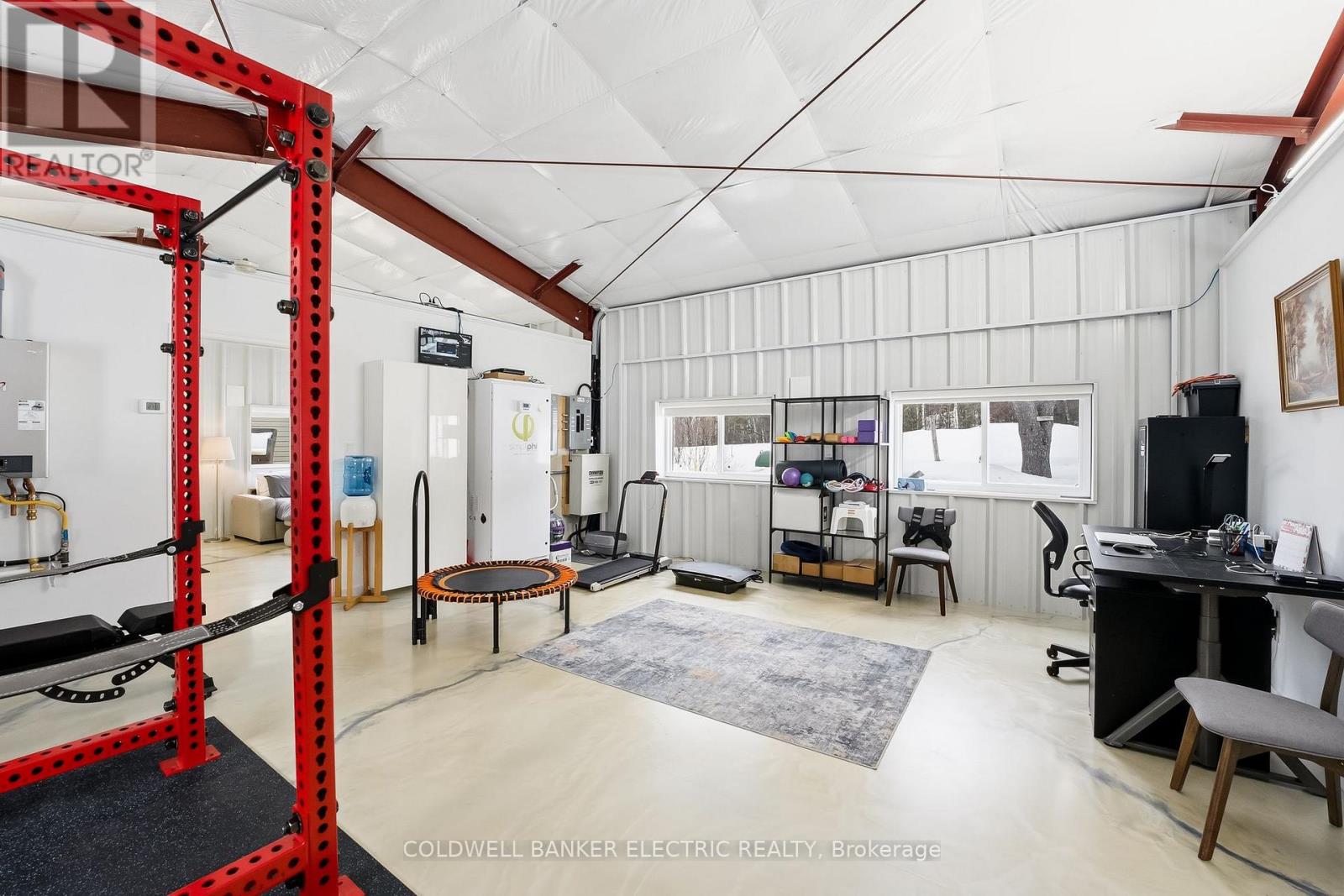 5 THINGS YOU'LL LOVE ABOUT THIS PROPERTY - 1) The 49+ ACRE NATURAL LANDSCAPE - Discover over 49 acres of breathtaking natural beauty featuring lush forest, a winding creek, and peaceful trails throughout the property. Whether you enjoy exploring the outdoors, creating your own paths, or taking in the quiet surroundings, this remarkable landscape offers privacy and adventure. 2) The BRIGHT & MODERN LIVING SPACE - Step into a warm and welcoming living room designed for comfort and connection. Pot lights illuminate the open layout while warm flooring adds a cozy touch underfoot. Large sliding doors framed by windows flood the space with natural light and lead directly to a wraparound deck-perfect for relaxing or entertaining. 3) The FULLY EQUIPPED WORKSHOP - Ideal for hobbyists or entrepreneurs, the impressive 55' x 24' steel workshop is fully insulated and features heated epoxy floors for year-round comfort. Double roll-up garage doors and multiple entry doors provide excellent access, while a three-piece washroom and guest area make the space versatile for projects, workouts, or gatherings. 4) The CUSTOM SEA-CAN MEGA SHED - This custom-built mega shed constructed from reinforced sea containers is insulated with spray foam for year-round use. Equipped with radiant water heating and a three-piece bathroom, it's only a few finishing touches away from becoming the perfect retreat for projects or hobbies. 5) The ROBUST SYSTEMS & INFRASTRUCTURE - This property is thoughtfully equipped with robust systems that support comfort and functionality. A wood-fired hot water boiler supplies heat to the workshop, greenhouse, and sea-can unit, while the main home is serviced by a propane furnace. The property also features a drilled well with a 1,000-gallon water holding tank that provides backup water storage, a 12kW Champion backup generator with battery system, security camera system, and advanced water treatment including a softener, triple filtration system, and water distiller. (id:64974)